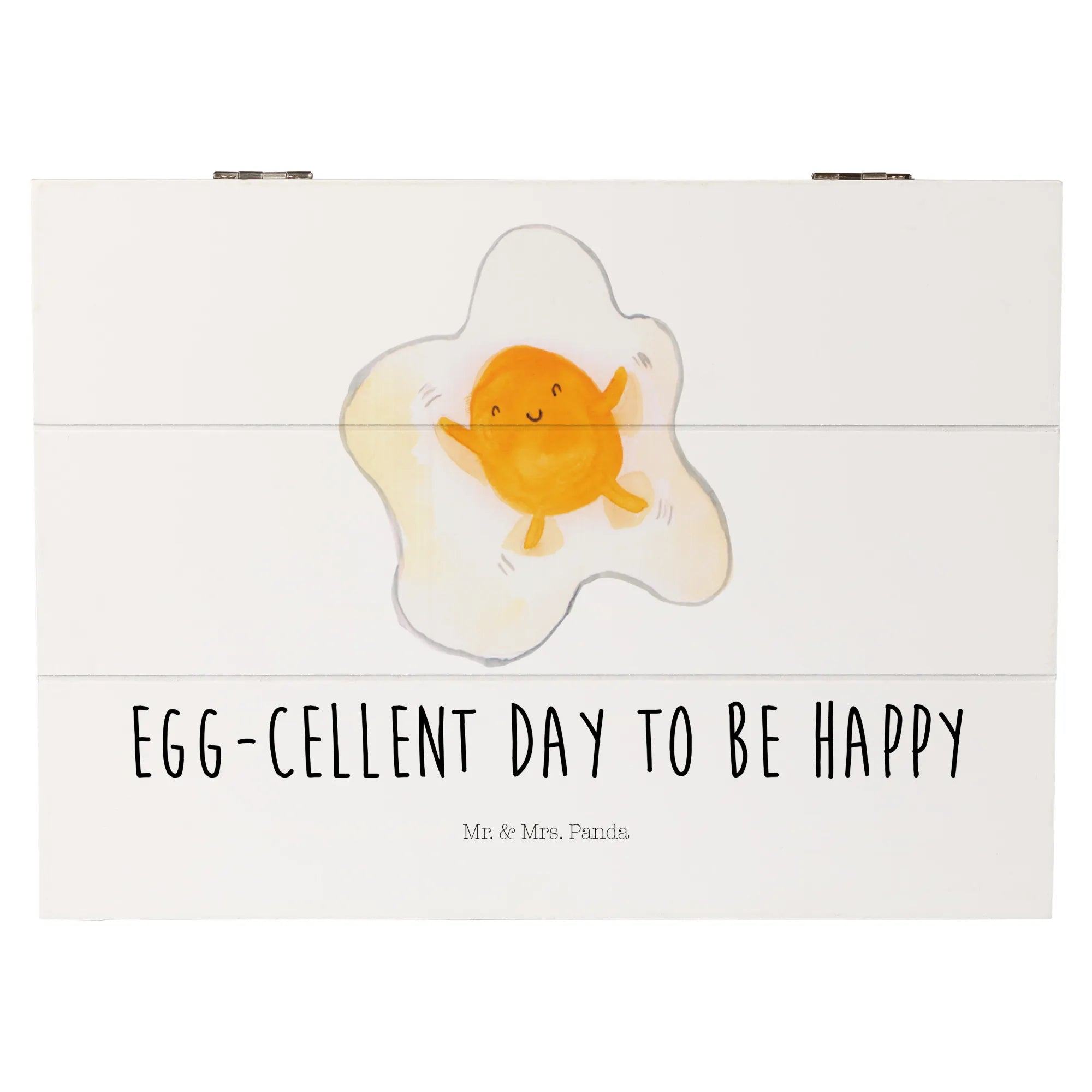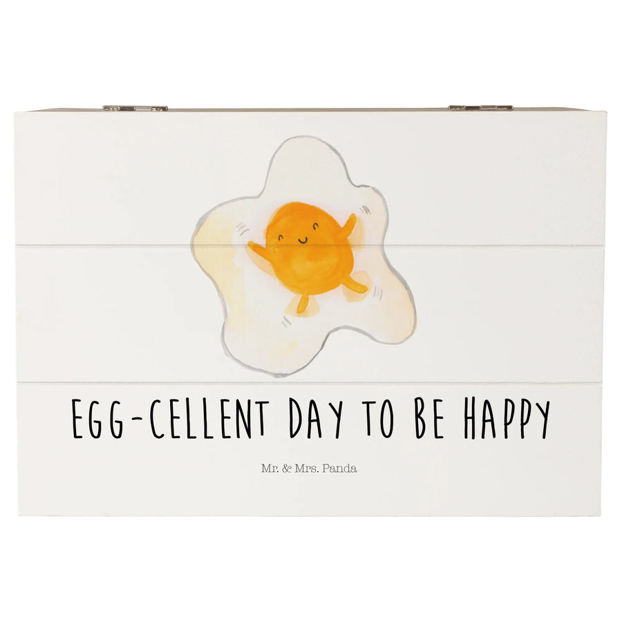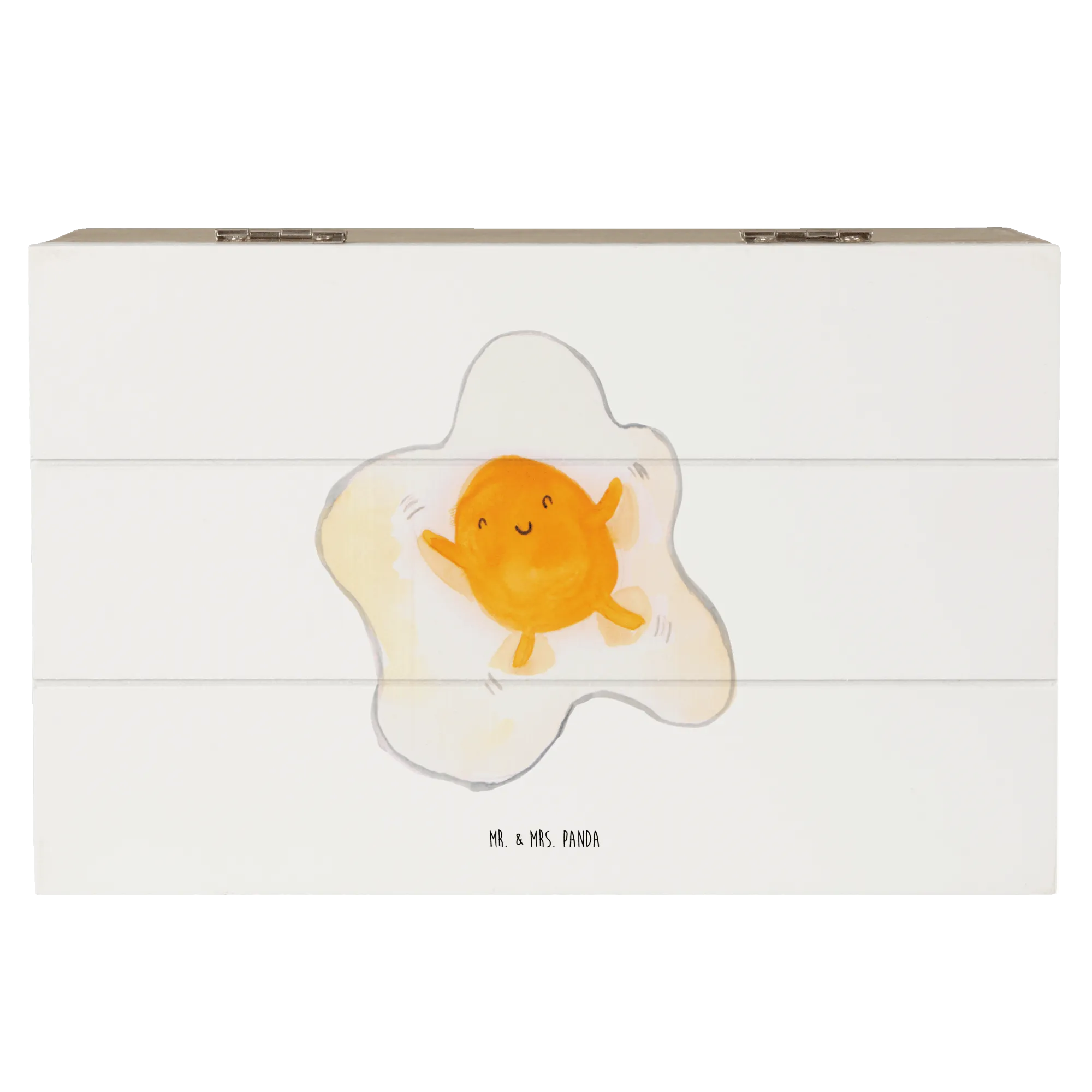 Wooden chest Fried egg egg - 22 x 15 cm - with a saying - White