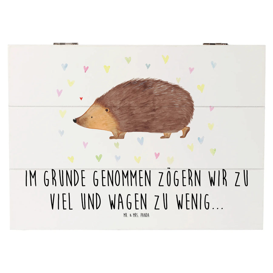 Wooden chest Hedgehog hearts - 25 x 18 cm - with saying - White