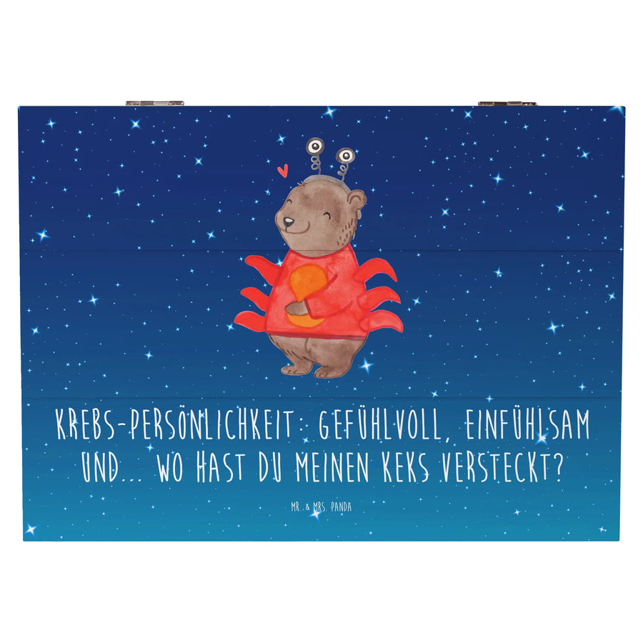 Wooden chest Krebs-Persönlichkeit: Gefühlvoll, einfühlsam und... wo hast du meinen Keks versteckt? - 25 x 18 cm - Starry sky blue
