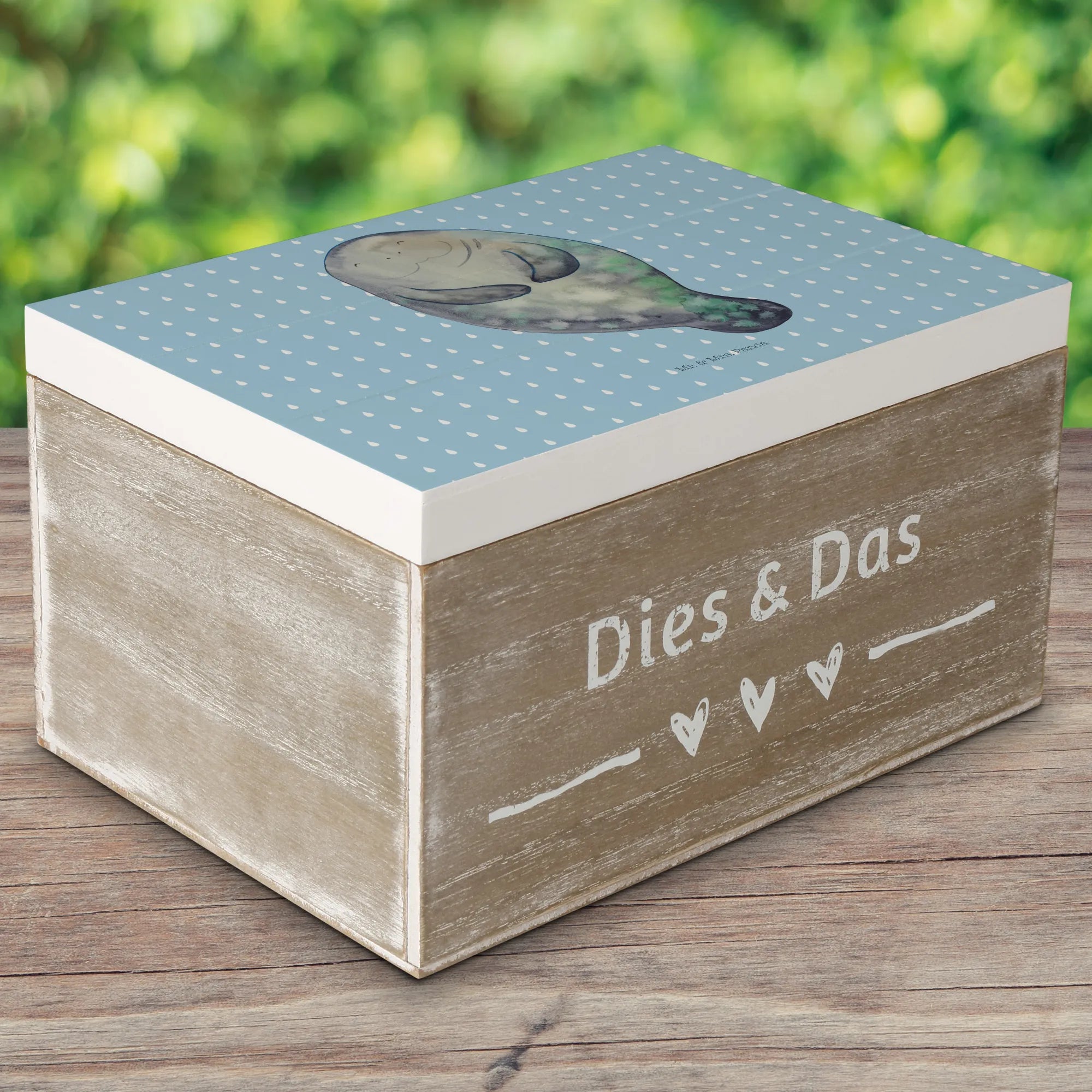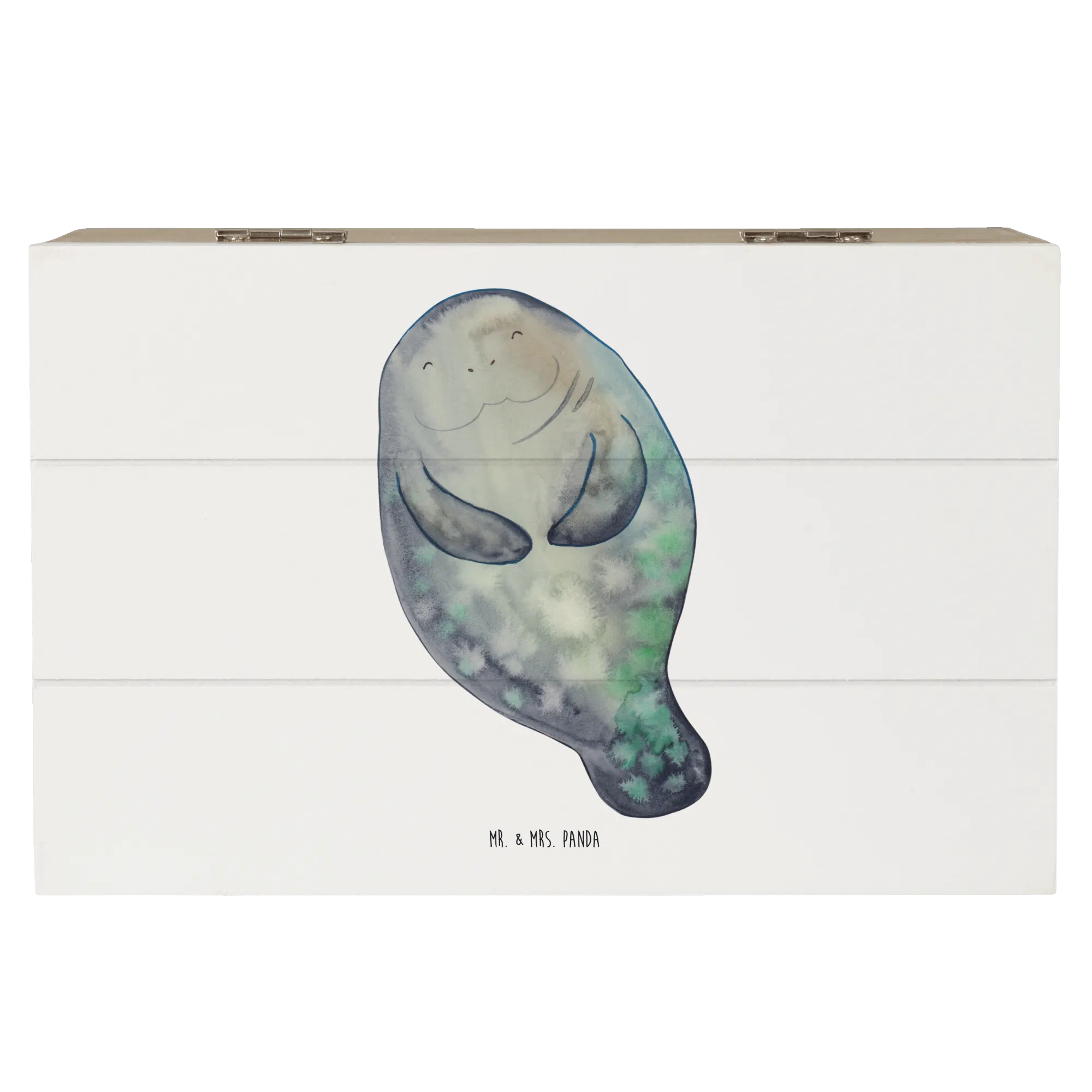 Introducing the charming and delightful Wooden Box - Manatee Happy from Mr. & Mrs. Panda! This beautiful chest is not just a storage solution but a treasure trove of love and memories, perfect for those who appreciate the gentle nature of manatees and the serene beauty of aquatic life.