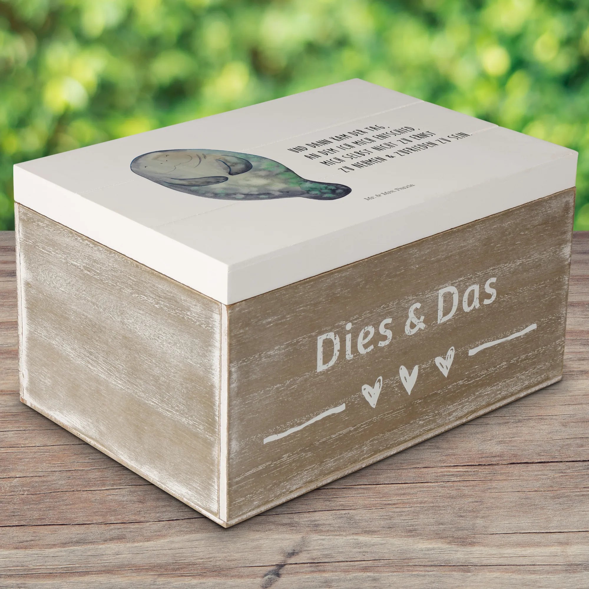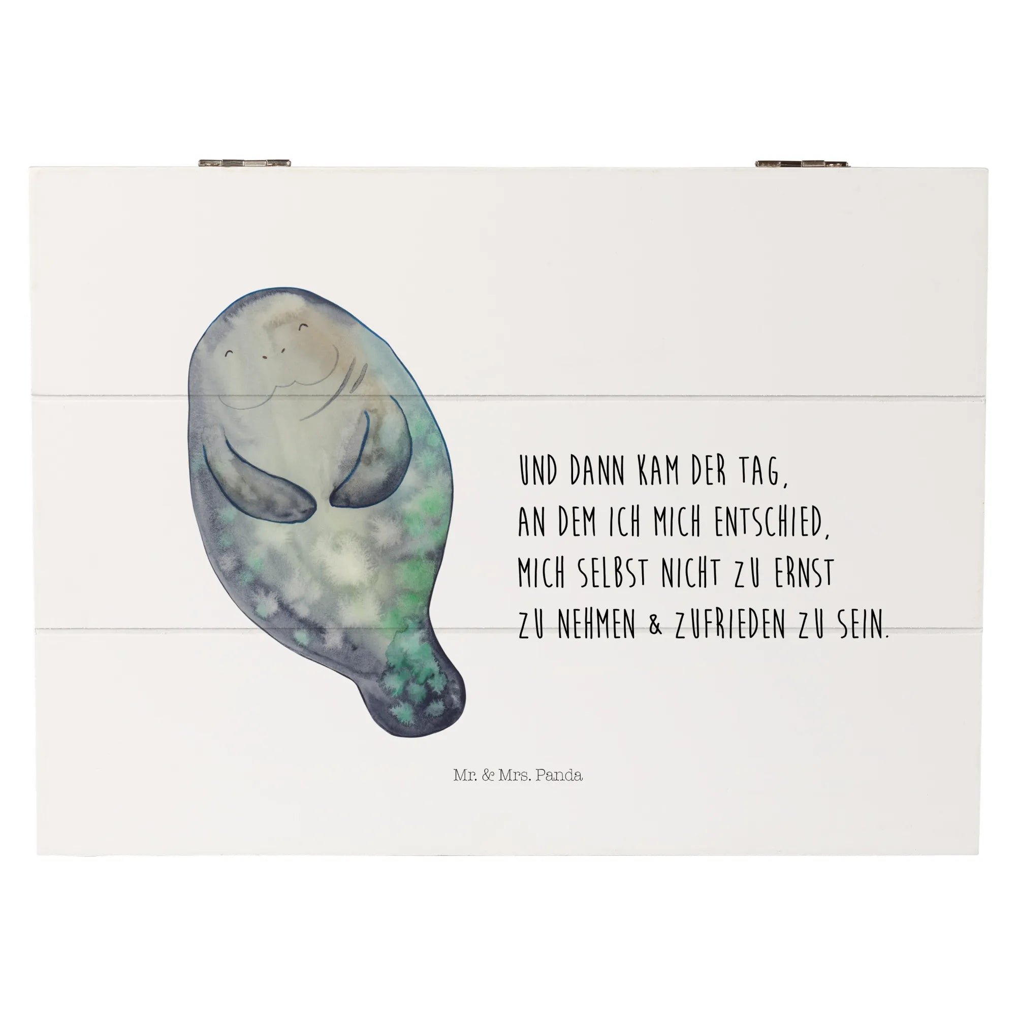 Wooden chest manatee happy - 22 x 15 cm - with saying - White