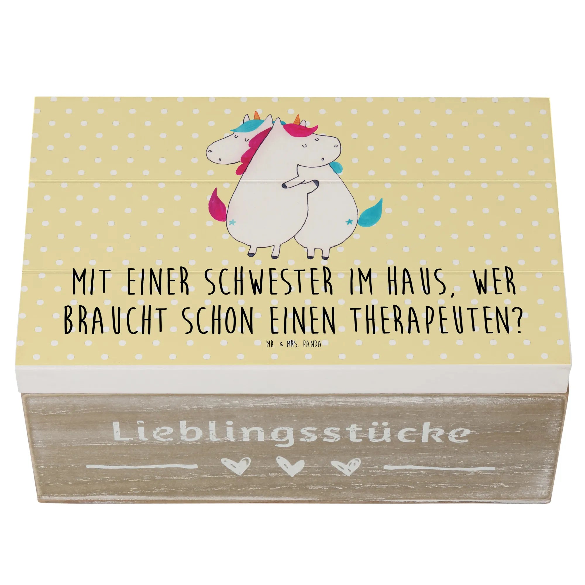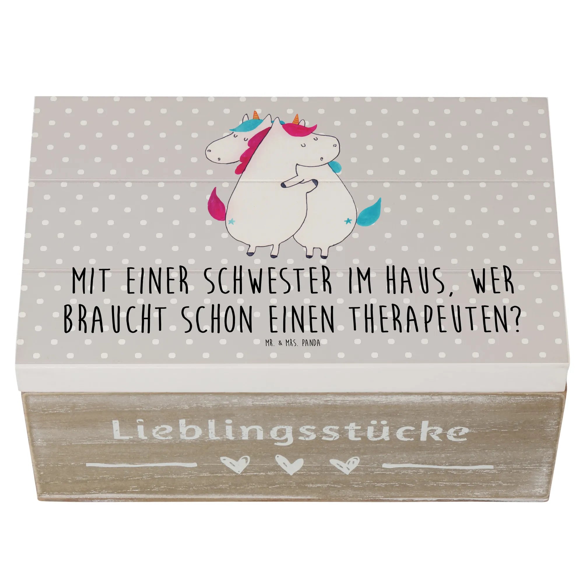 Wooden chest Mit einer Schwester im Haus, wer braucht schon einen Therapeuten? - 22 x 15 cm - Pastel Blue
