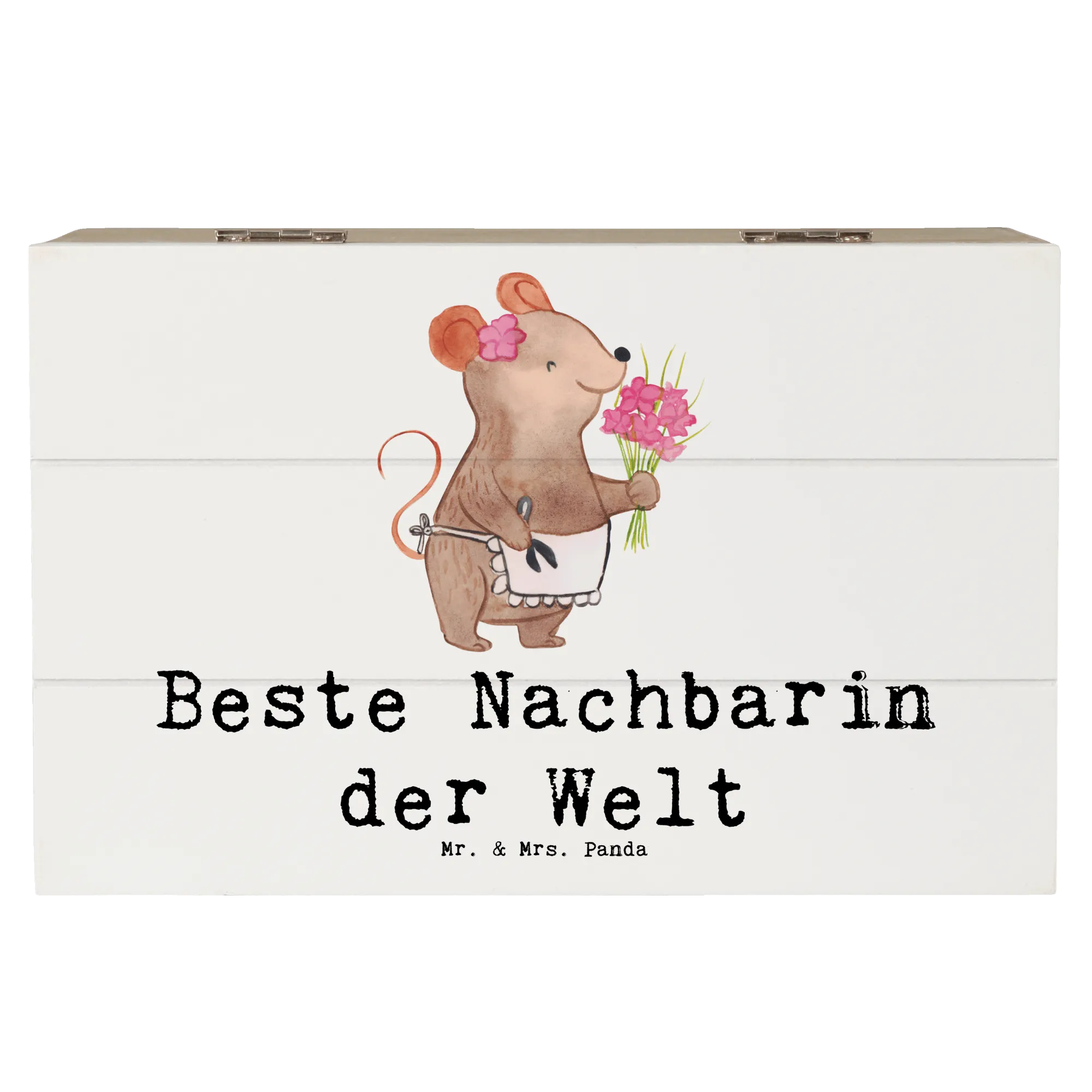 Wooden chest Mouse Best neighbor in the world - 22 x 15 cm - White