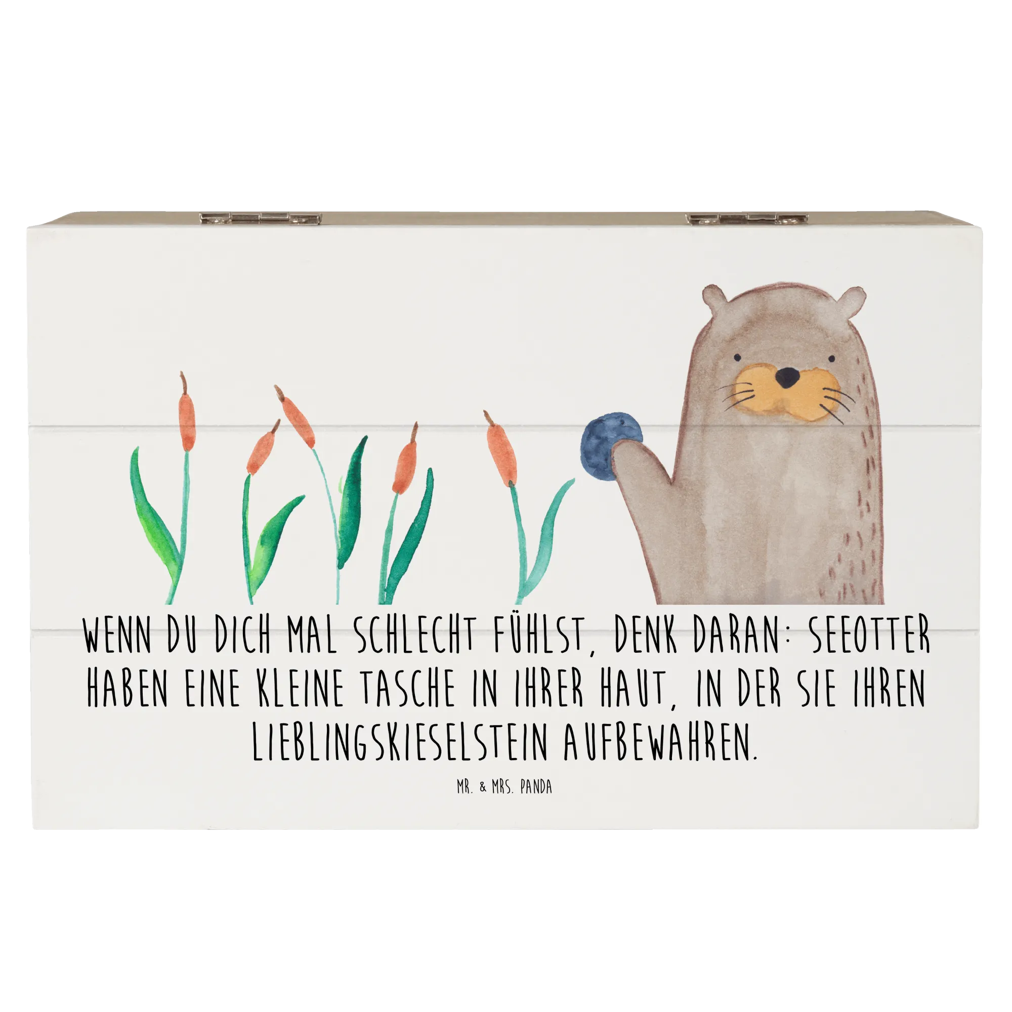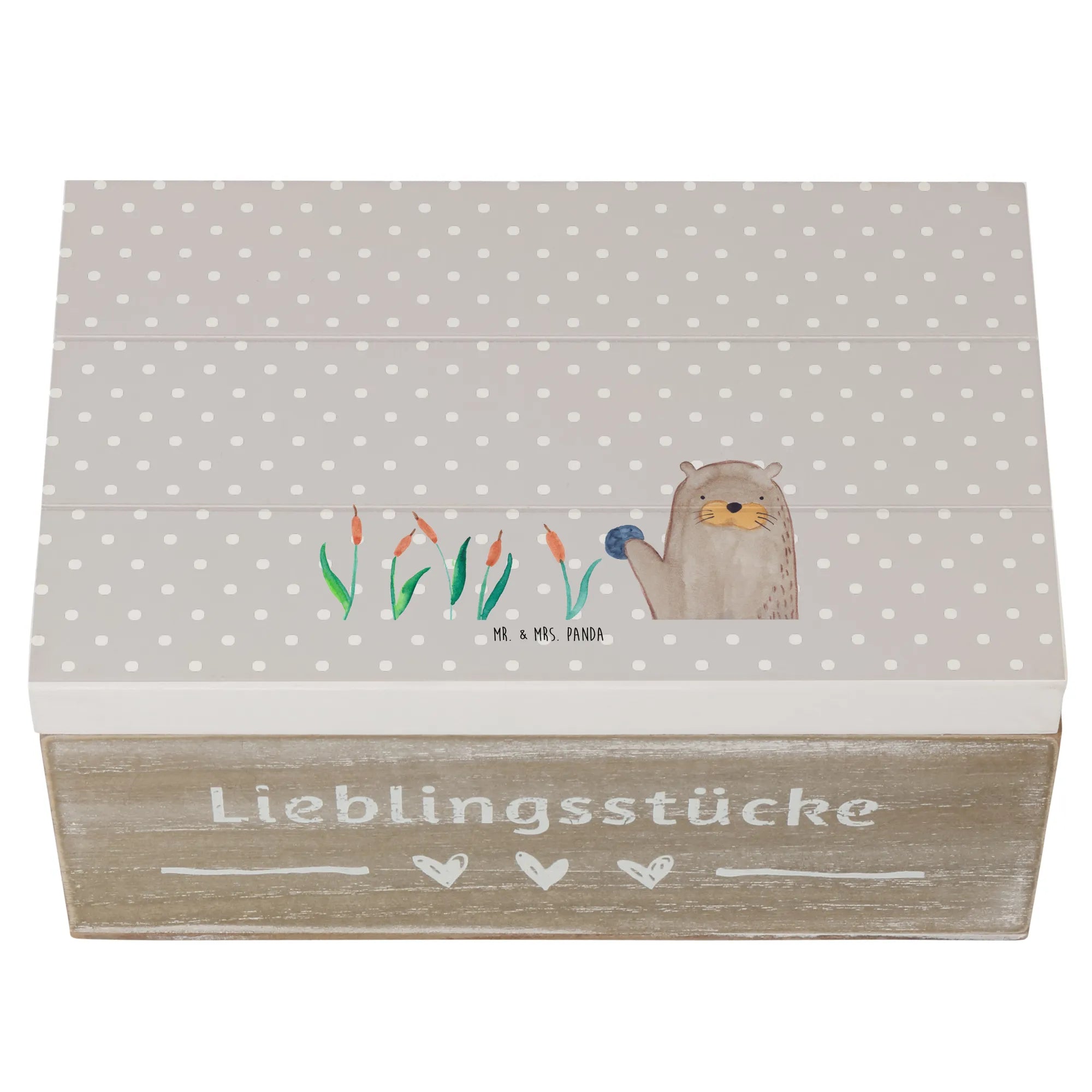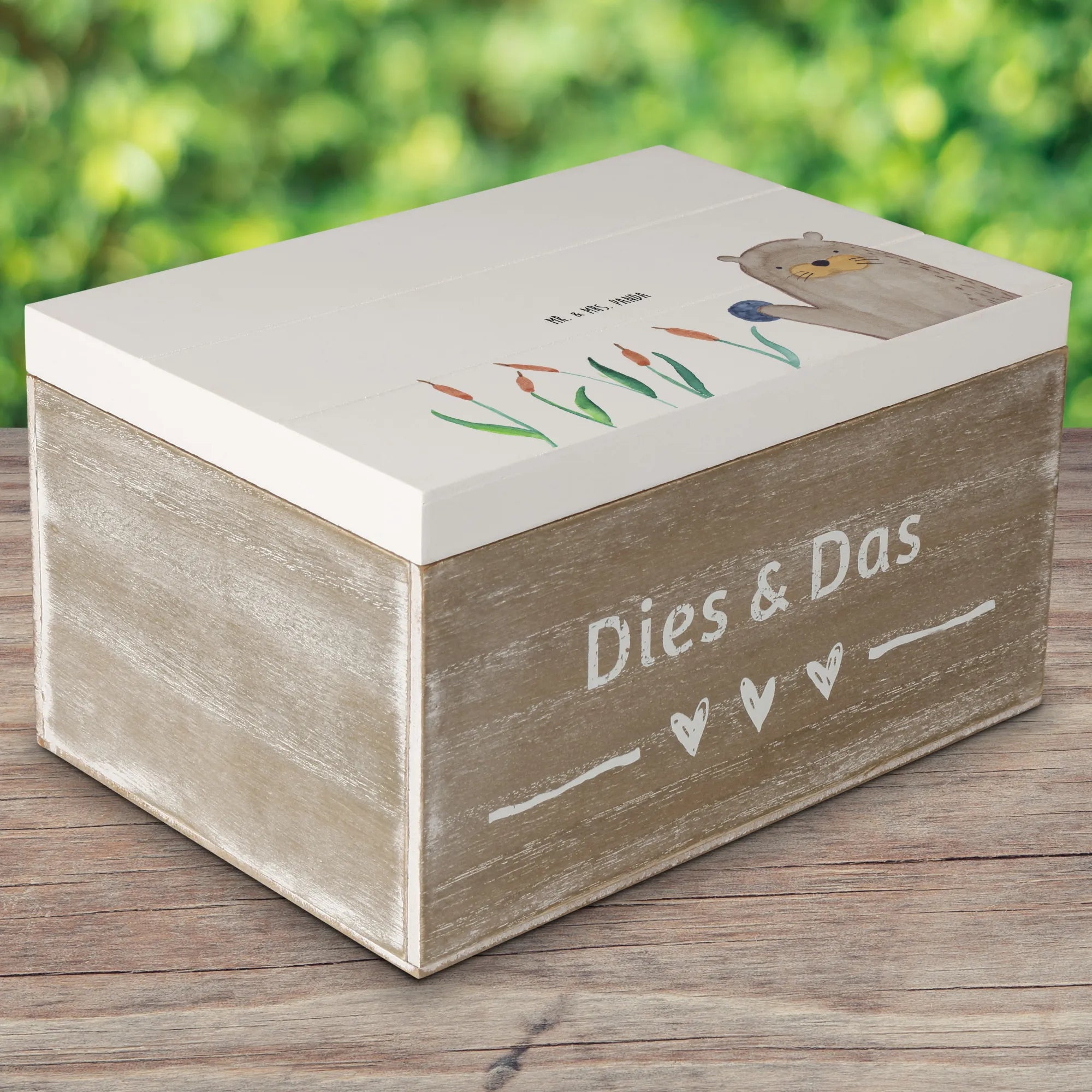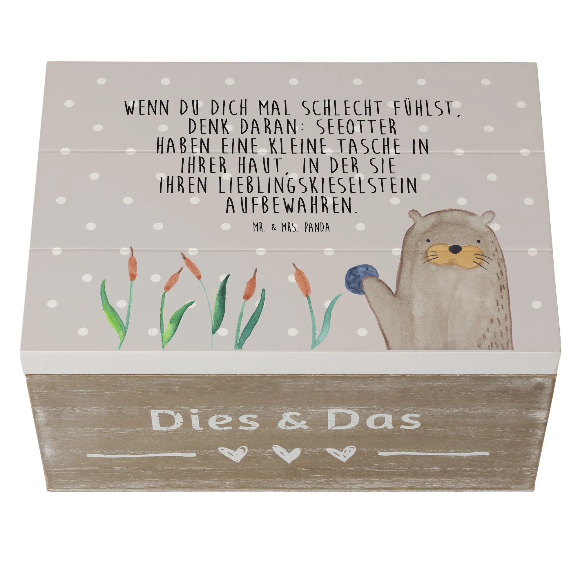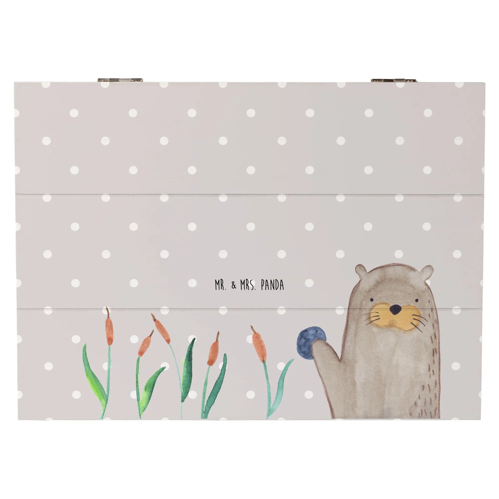Wooden chest otter Stone - 22 x 15 cm - with saying - Pastel Gray