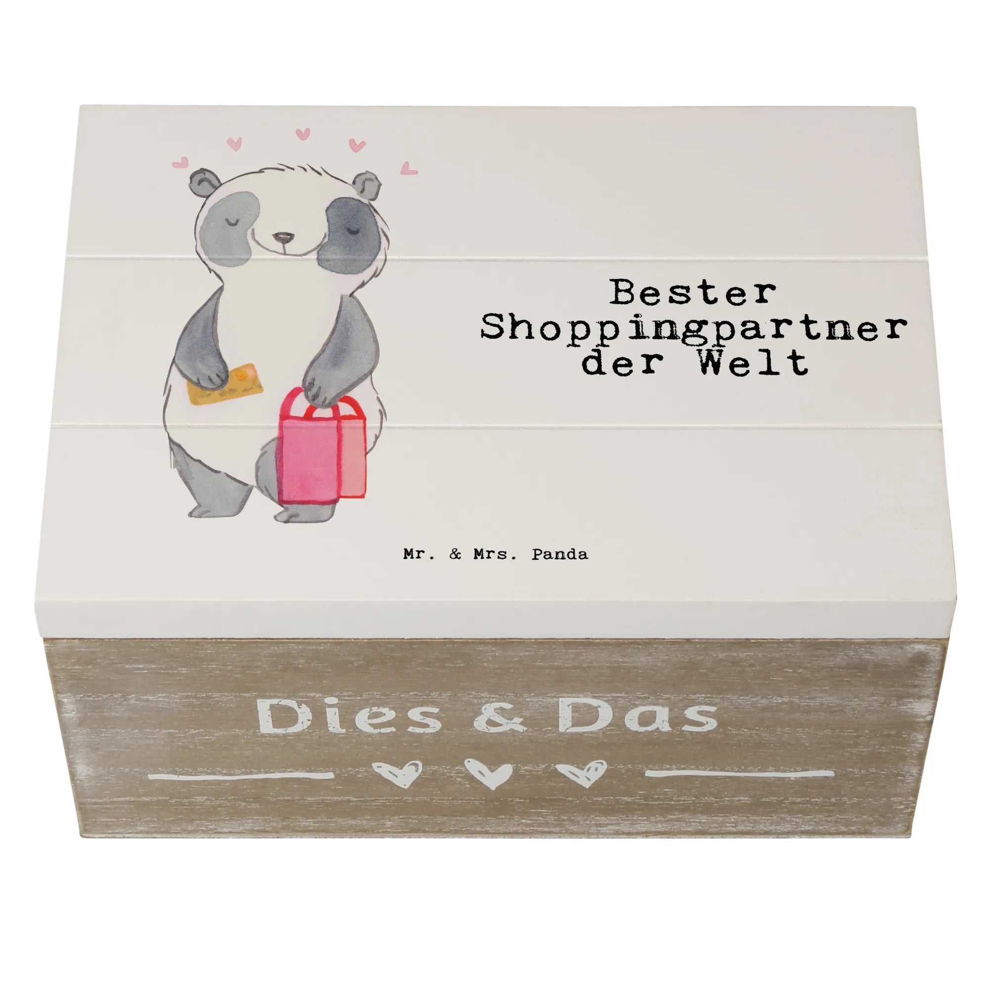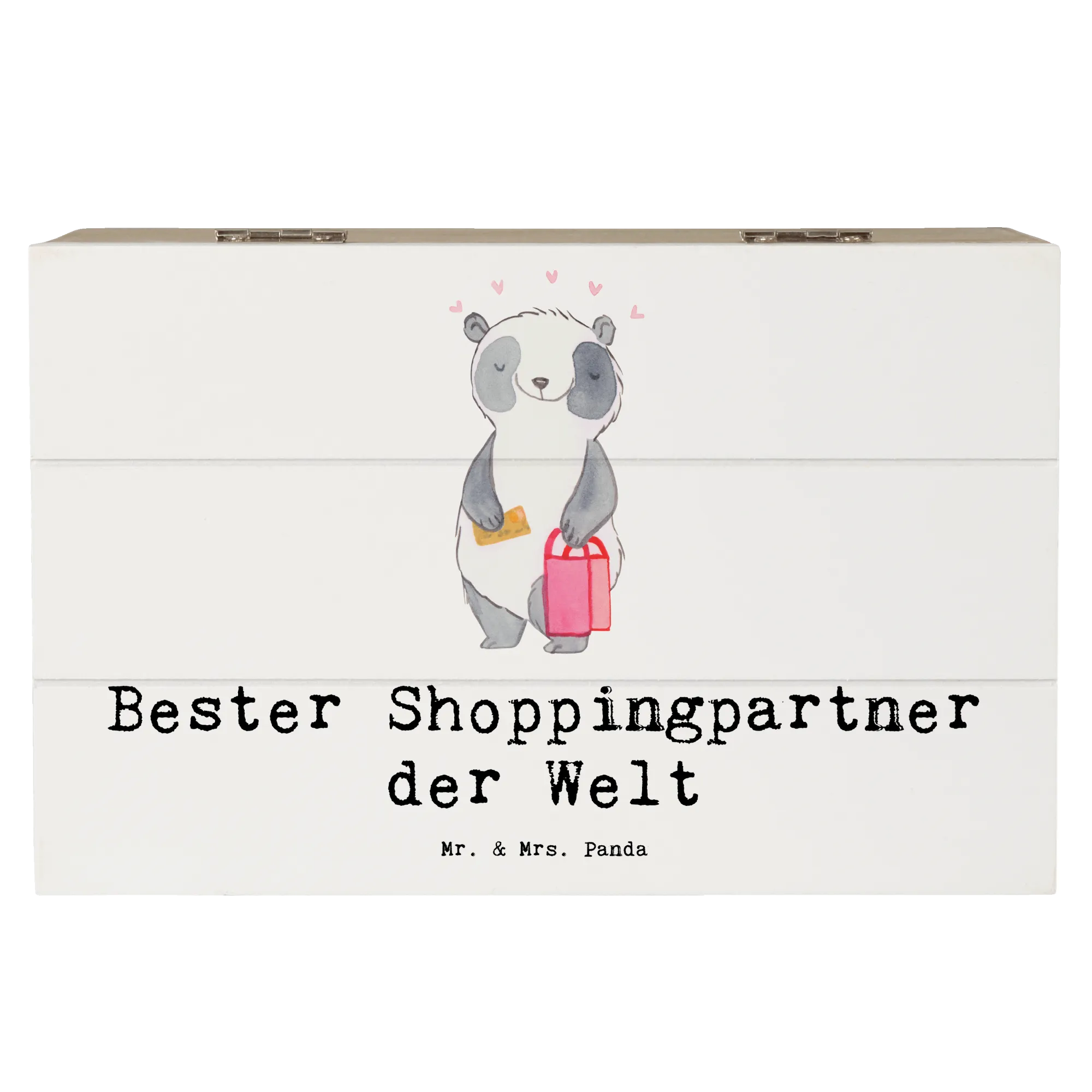 Wooden chest panda Best shopping partner in the world - 22 x 15 cm - White