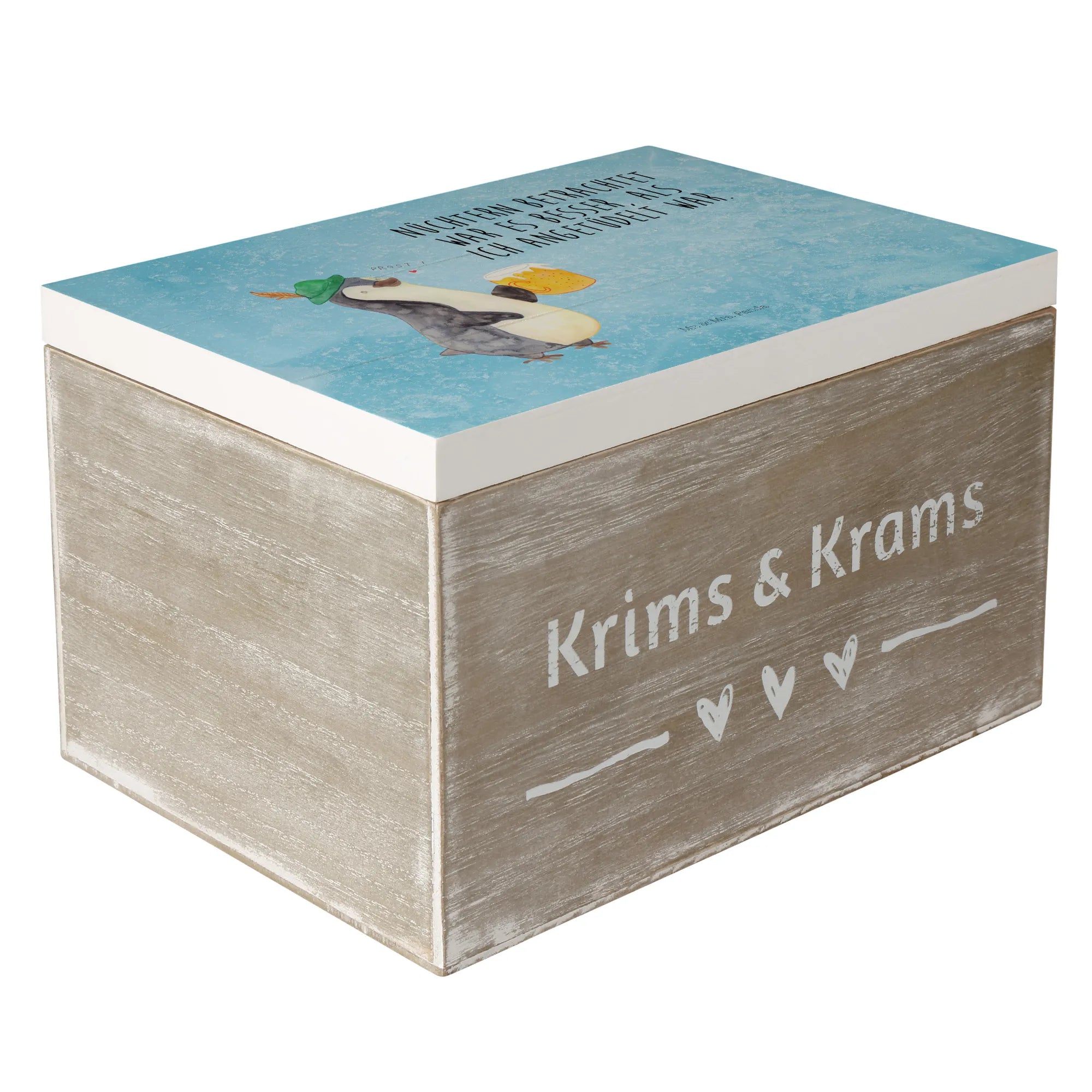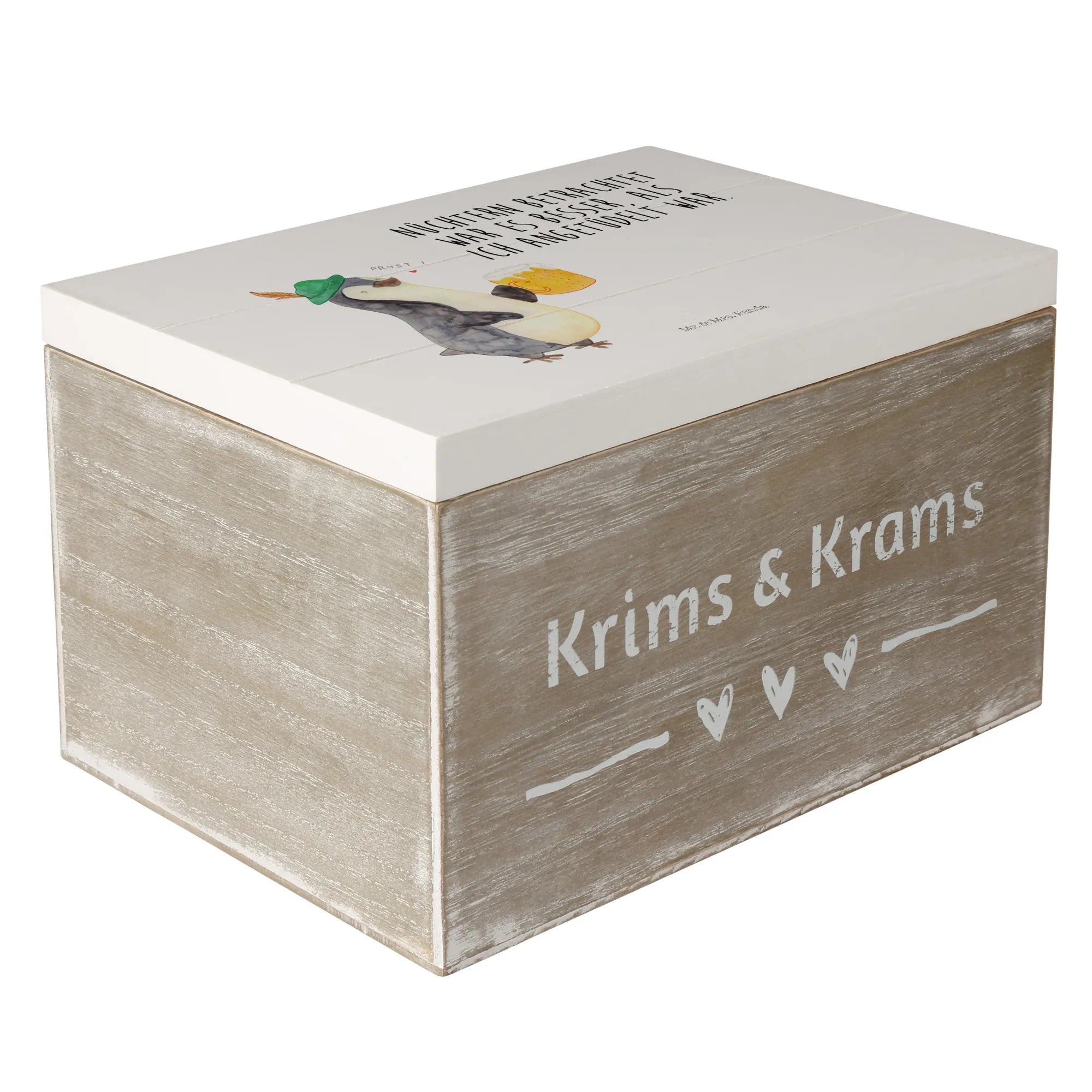 Wooden chest Penguin Beer - 19 x 12 cm - with saying - White