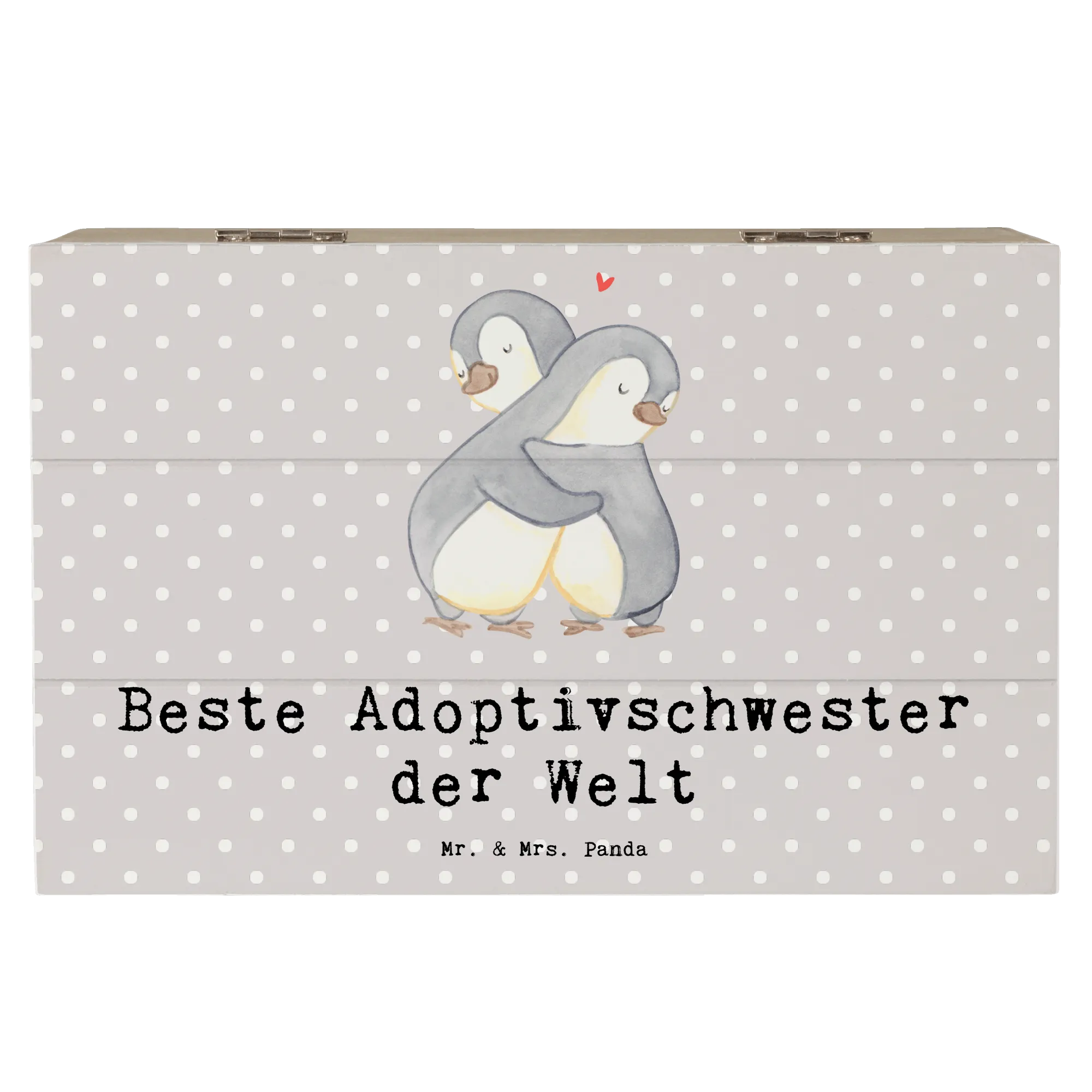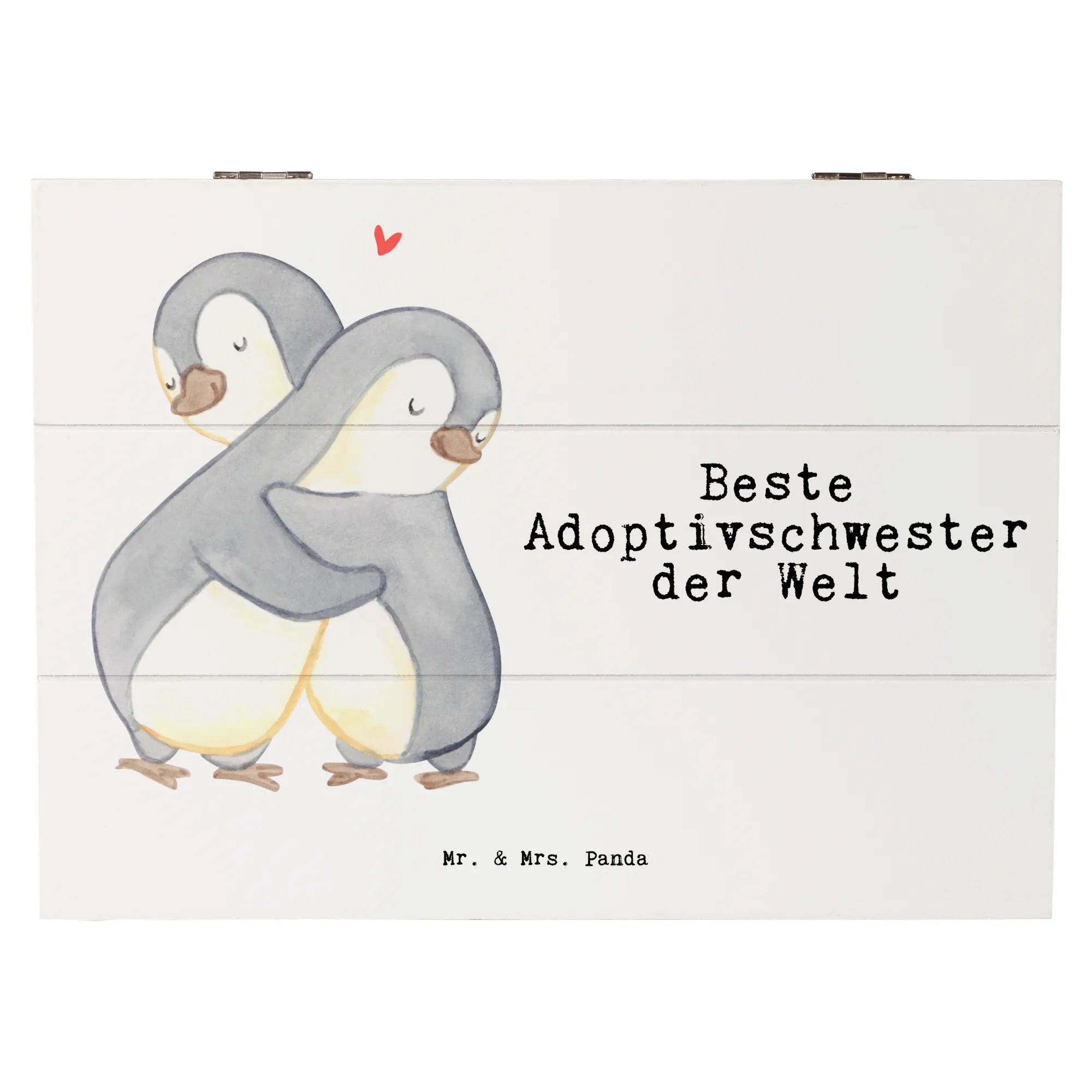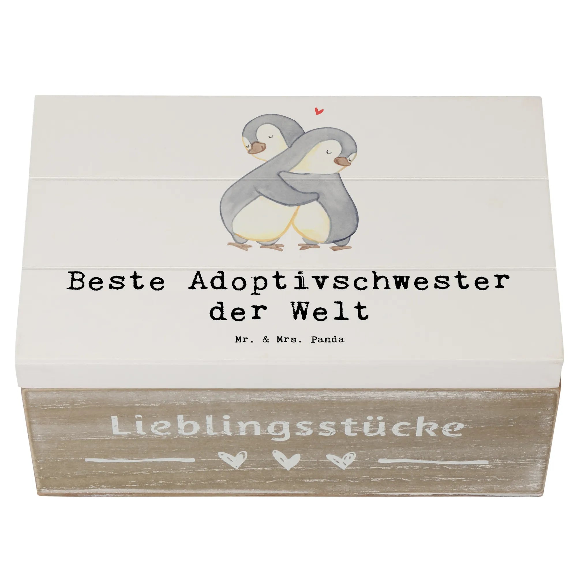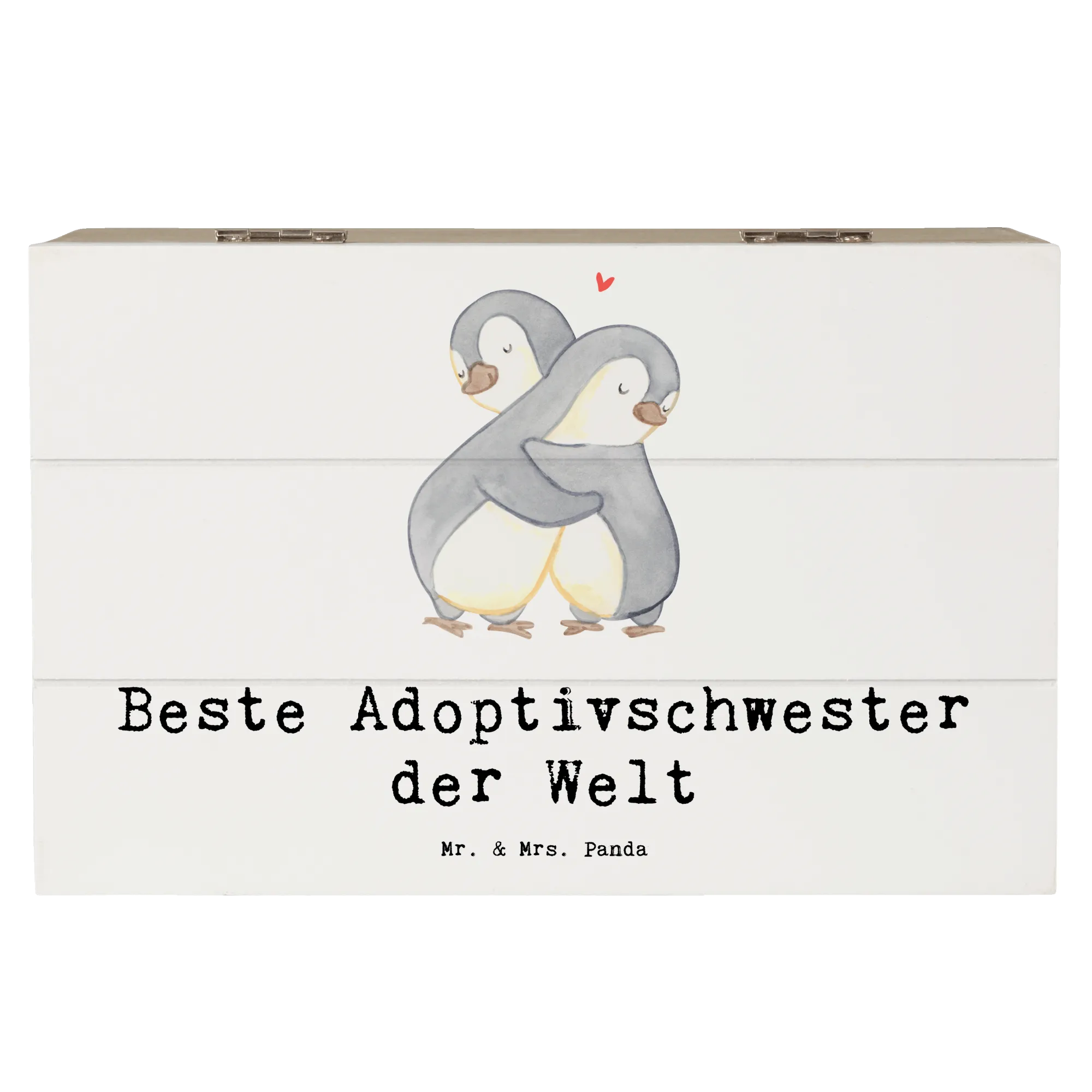 Wooden chest penguin Best adoptive sister in the world - 22 x 15 cm - White
