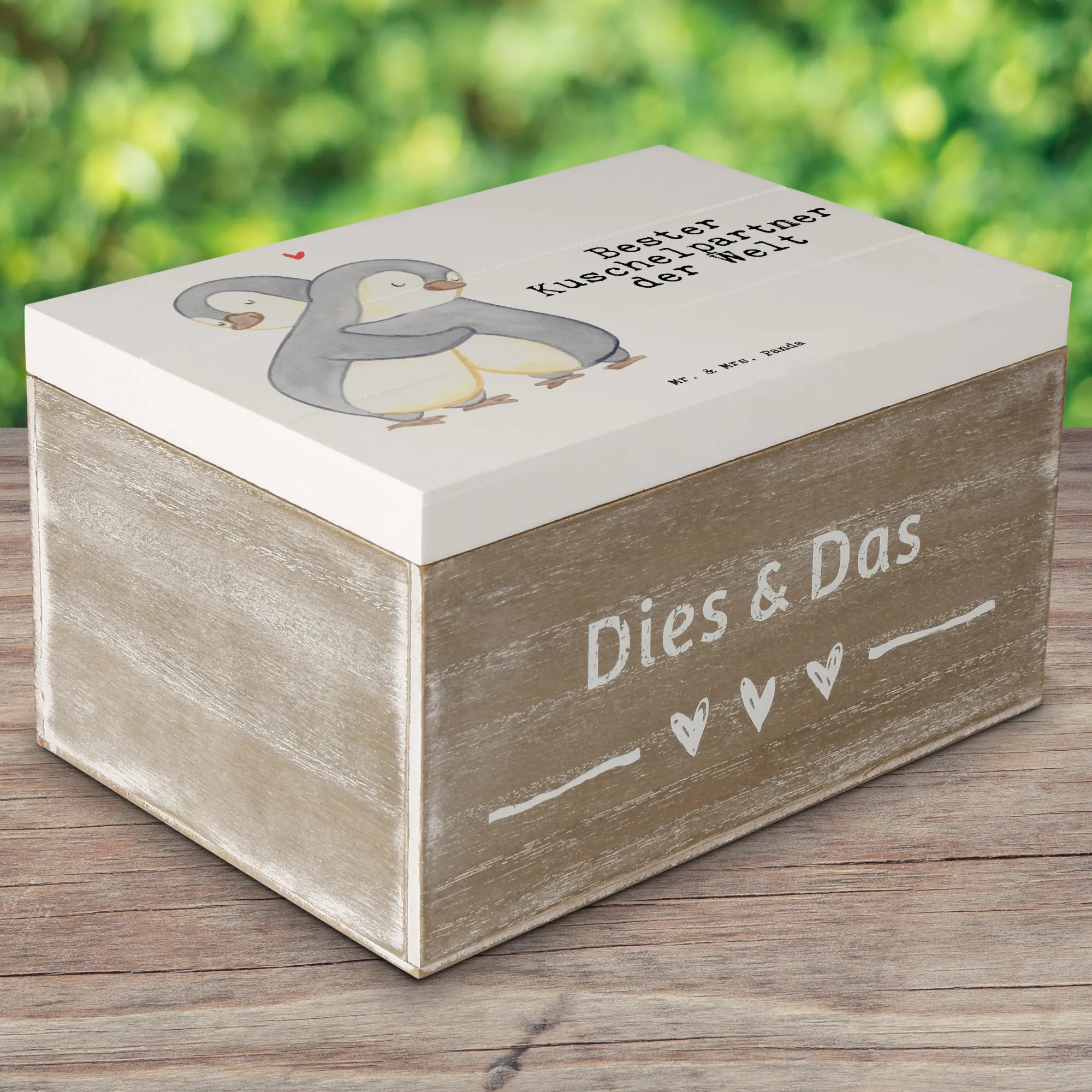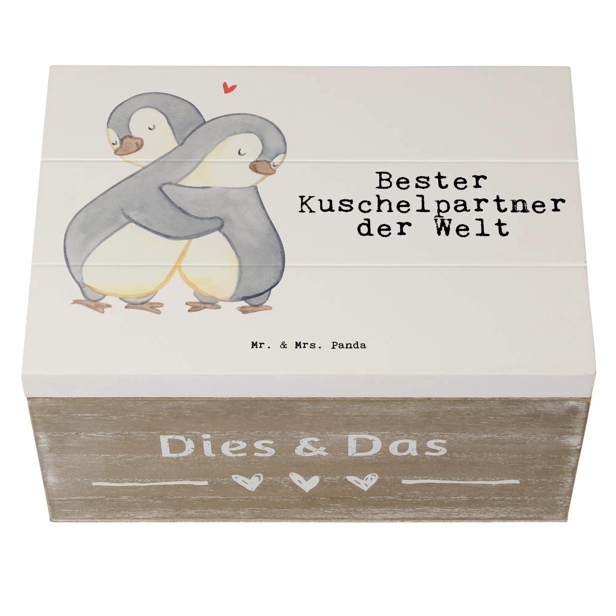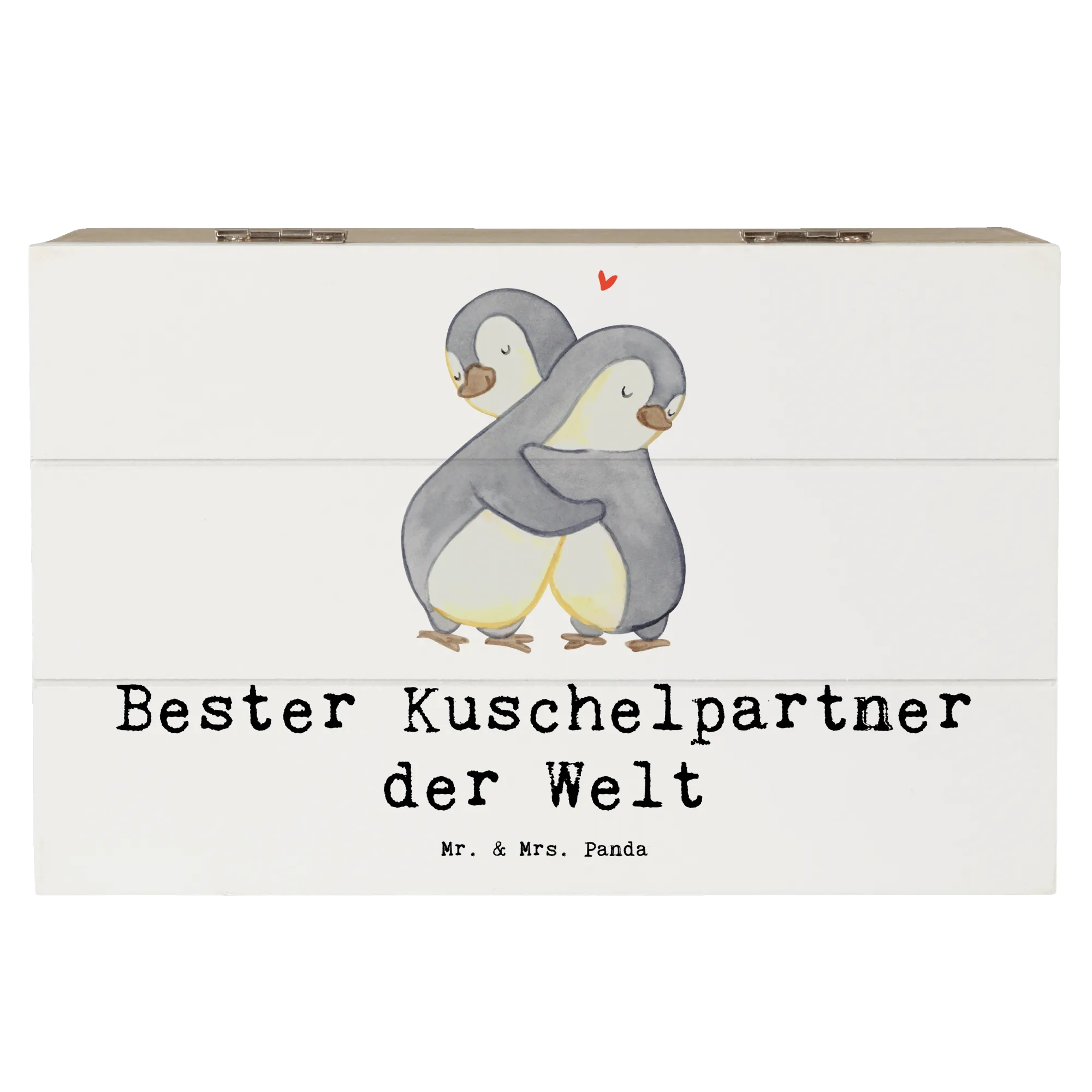 Wooden chest penguin Best cuddle partner in the world - 22 x 15 cm - White