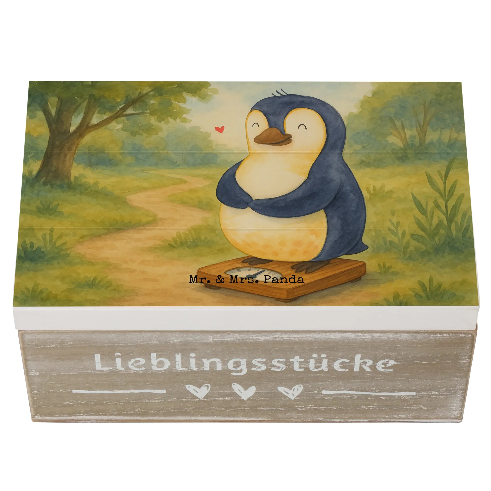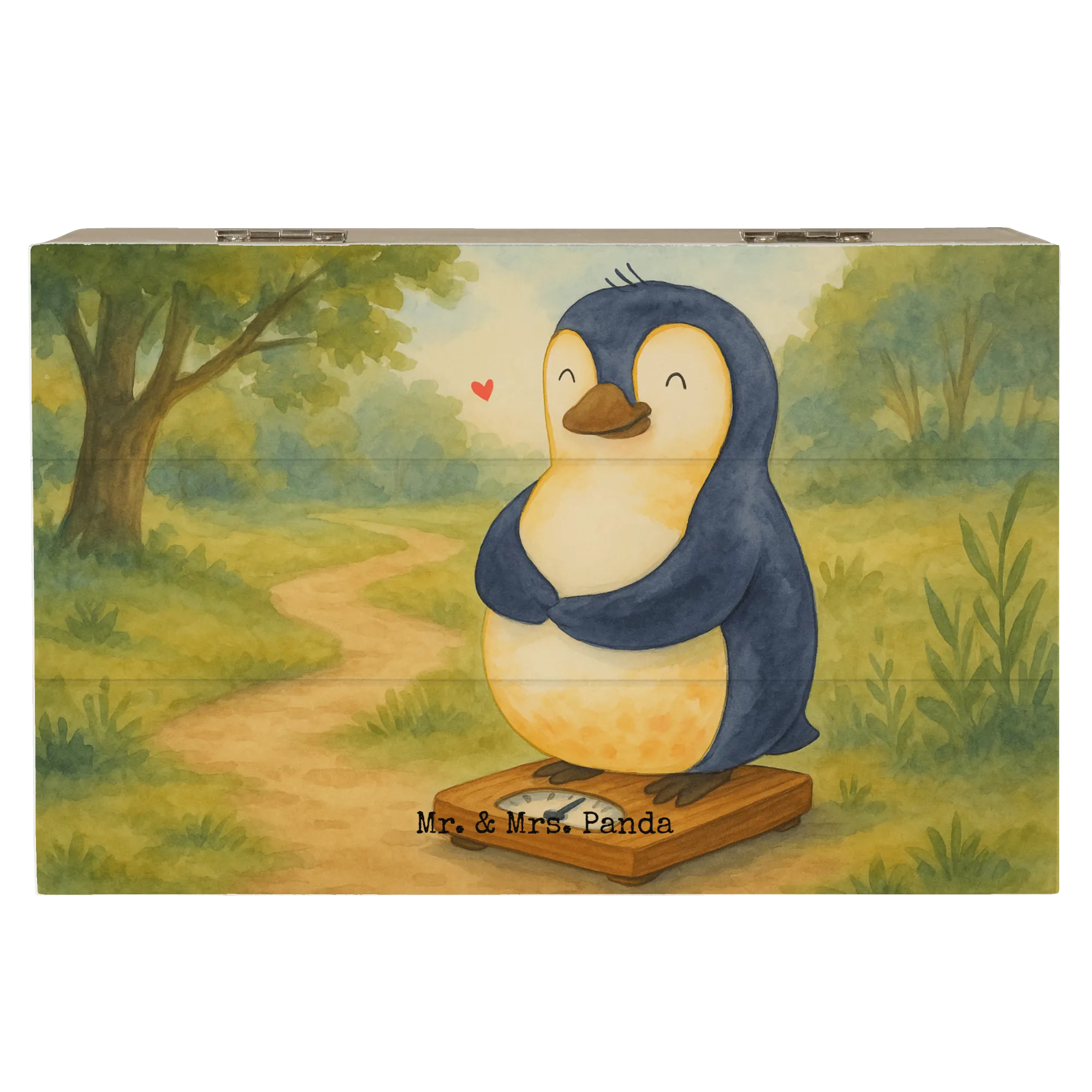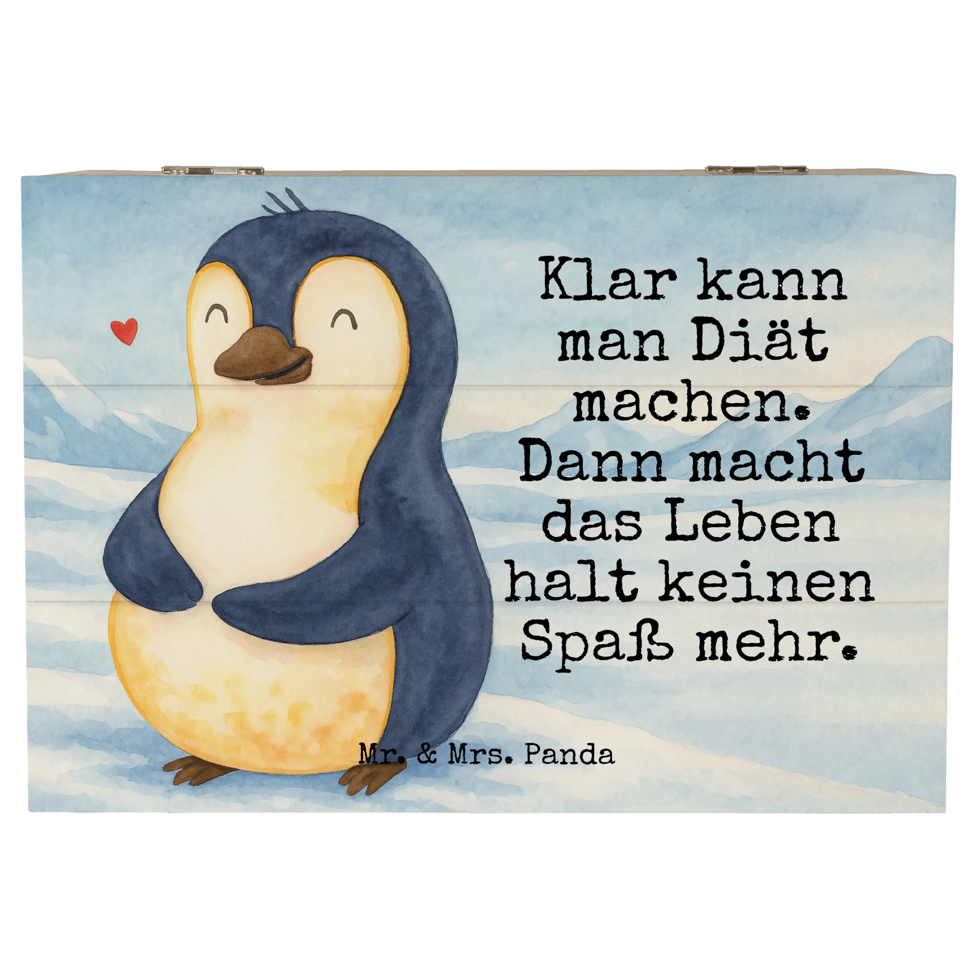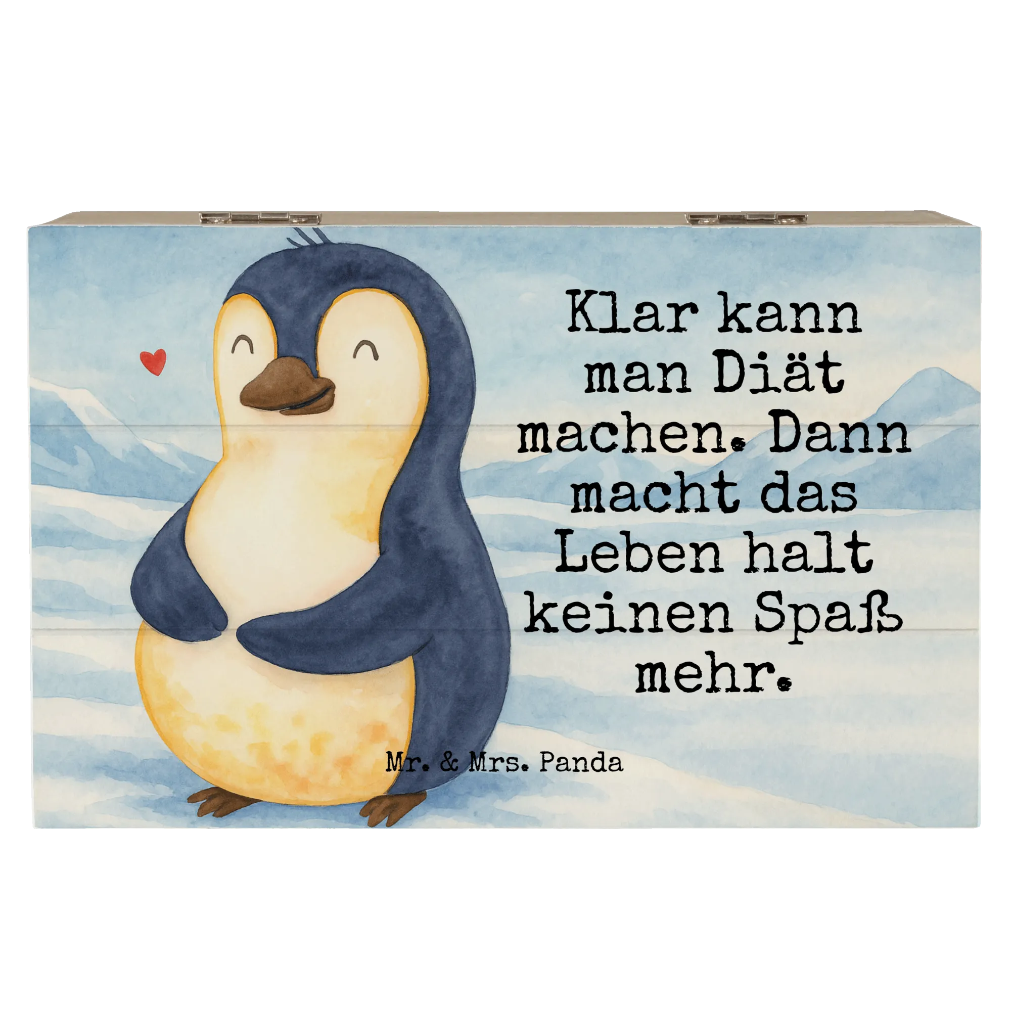 Wooden chest Penguin diet Design - 22 x 15 cm - with a saying