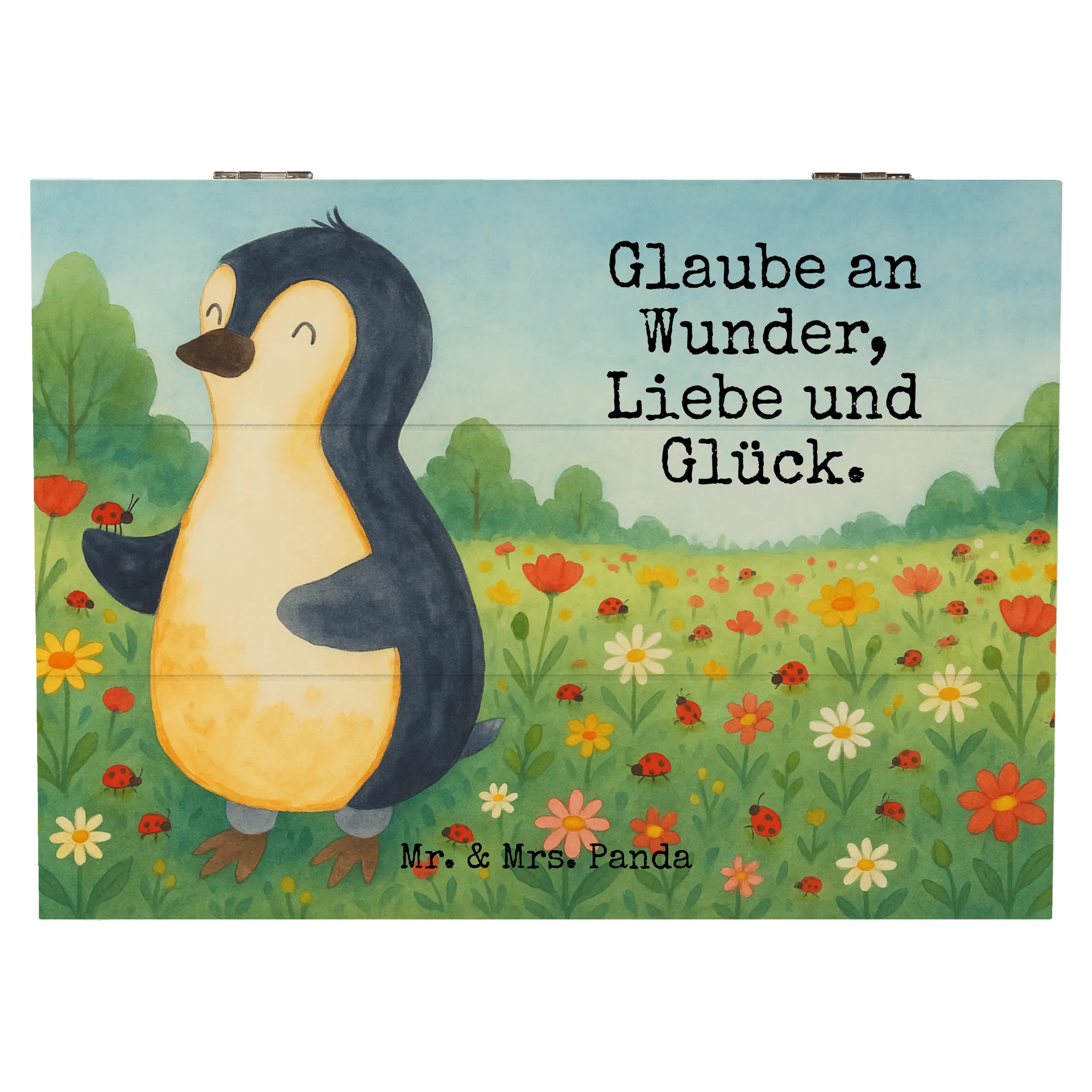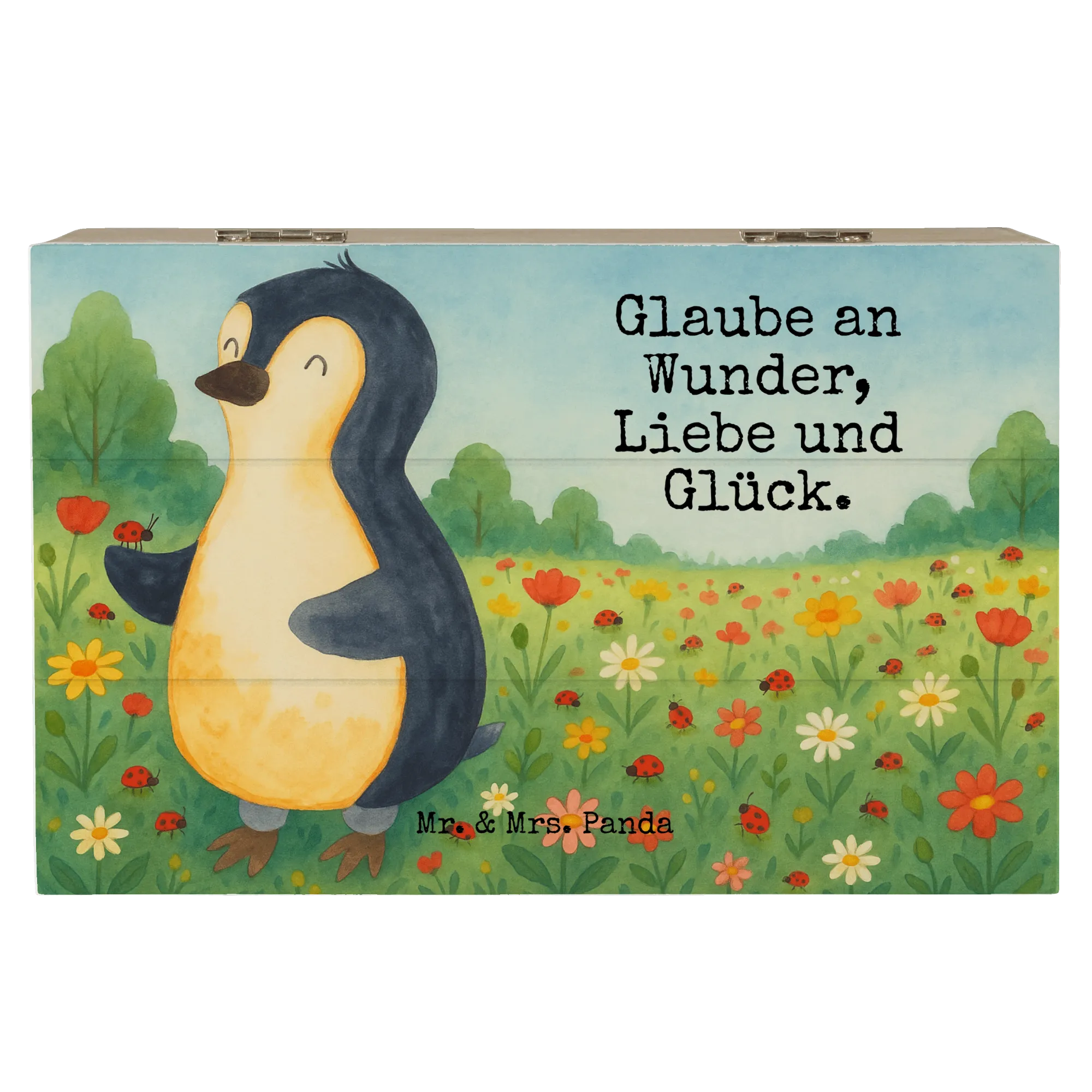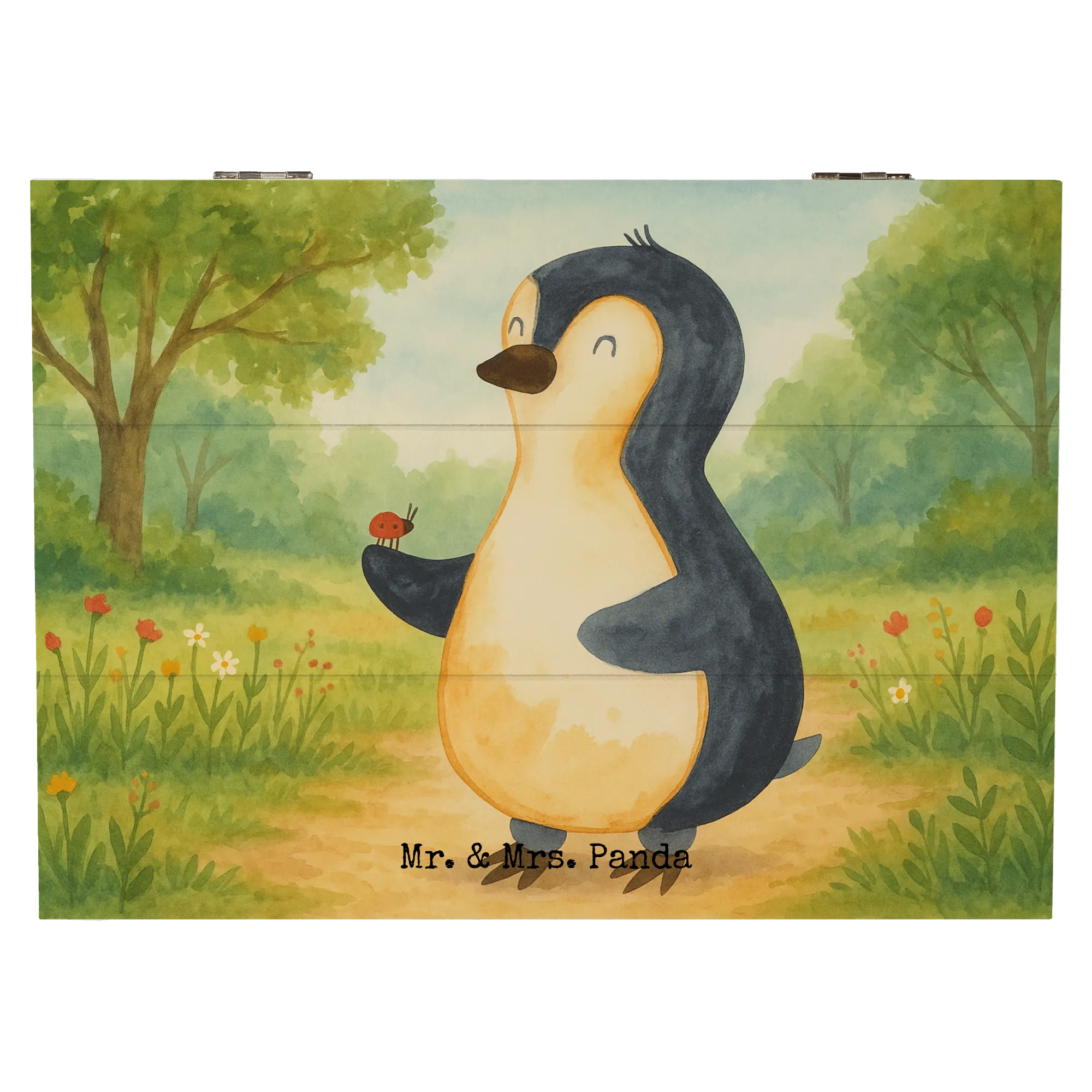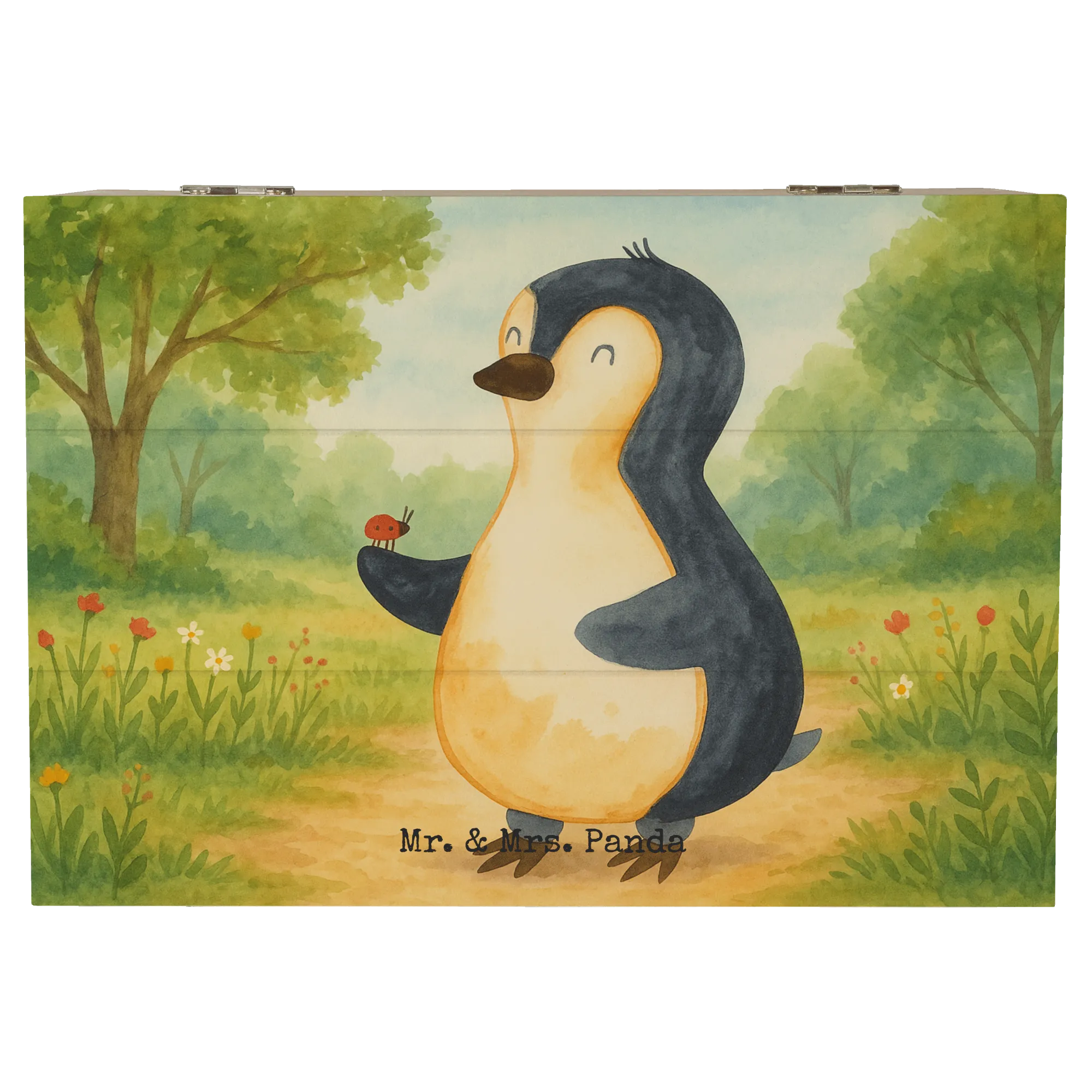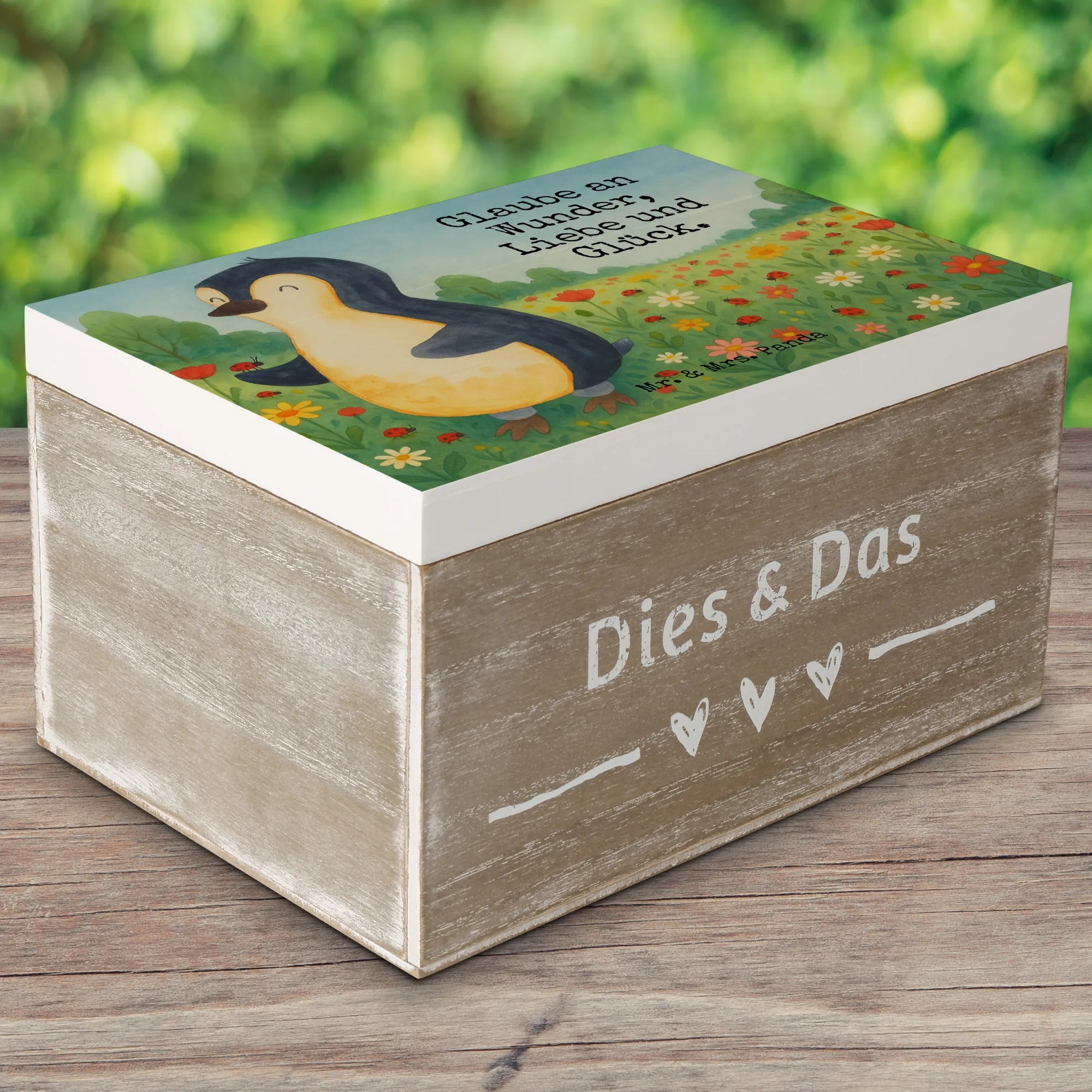 Wooden chest Penguin ladybug Design - 22 x 15 cm - with a saying