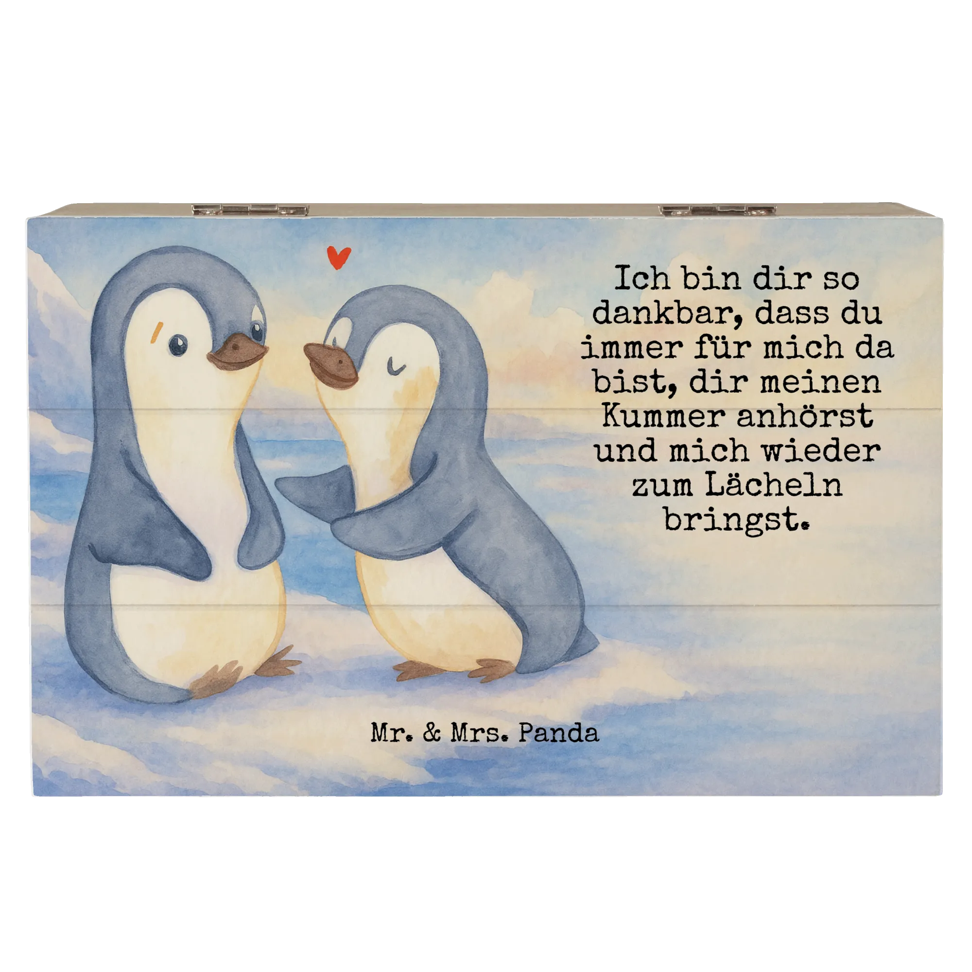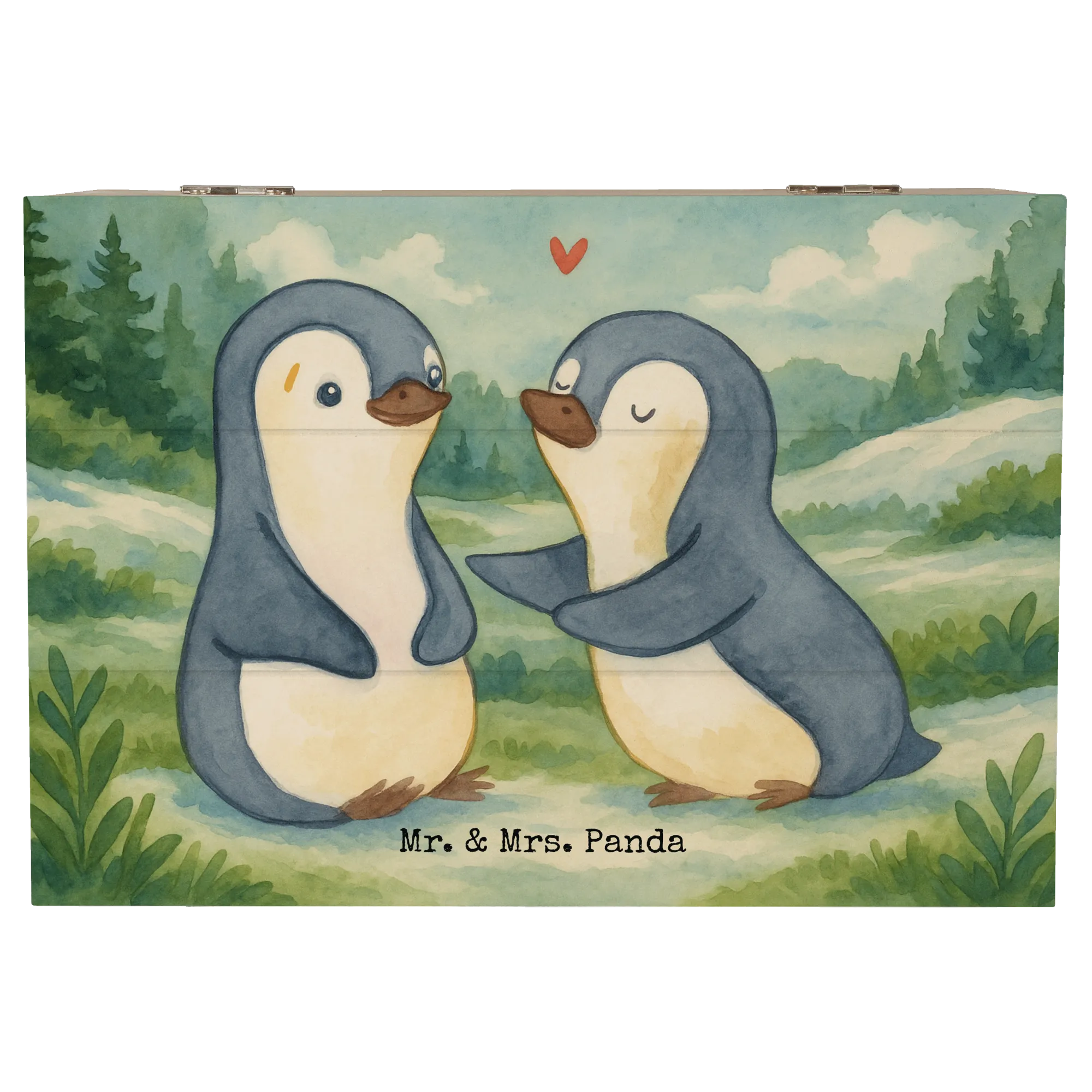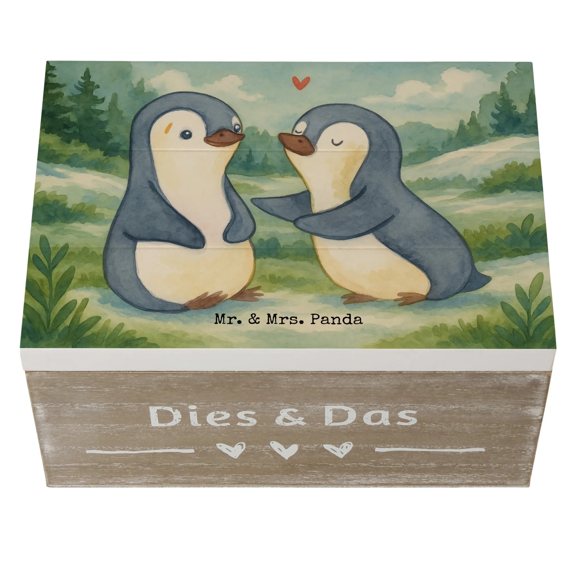 Wooden chest penguins console Design - 22 x 15 cm - with saying
