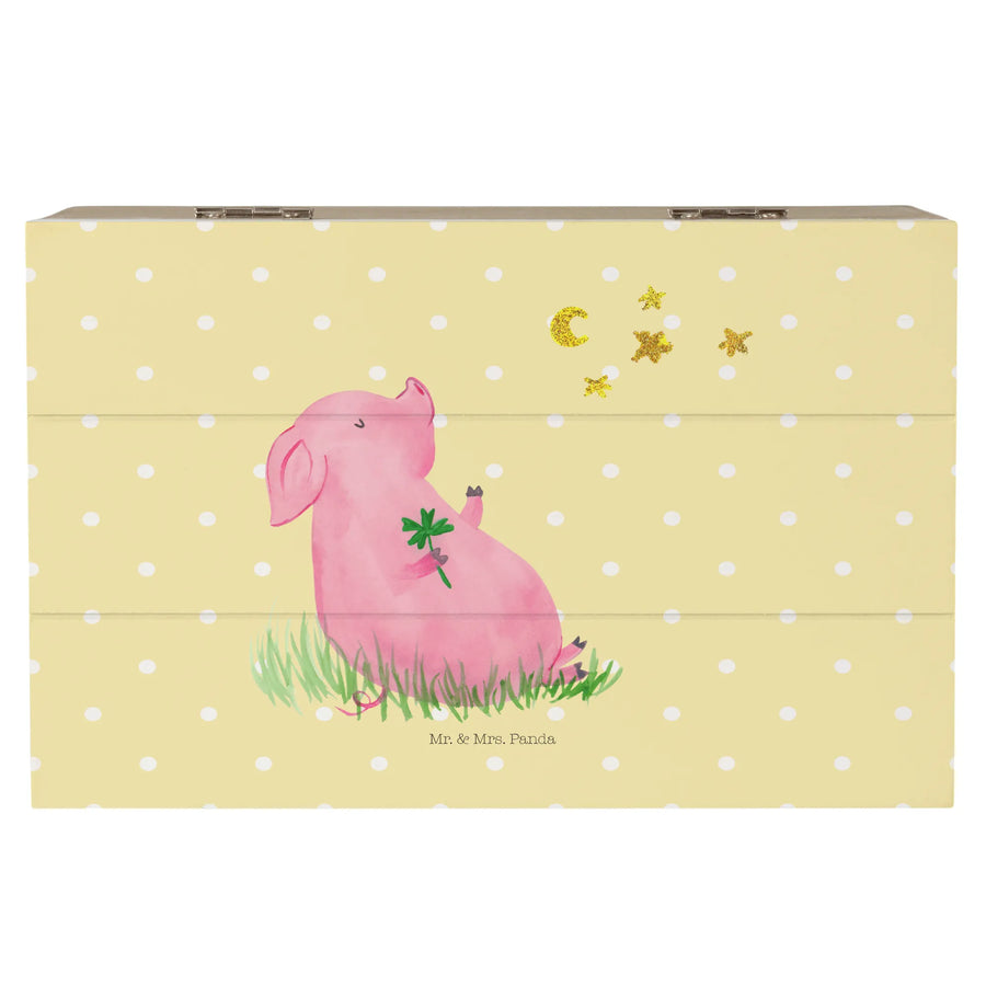Wooden chest Pig Luck - 19 x 12 cm - without saying - Pastel Yellow