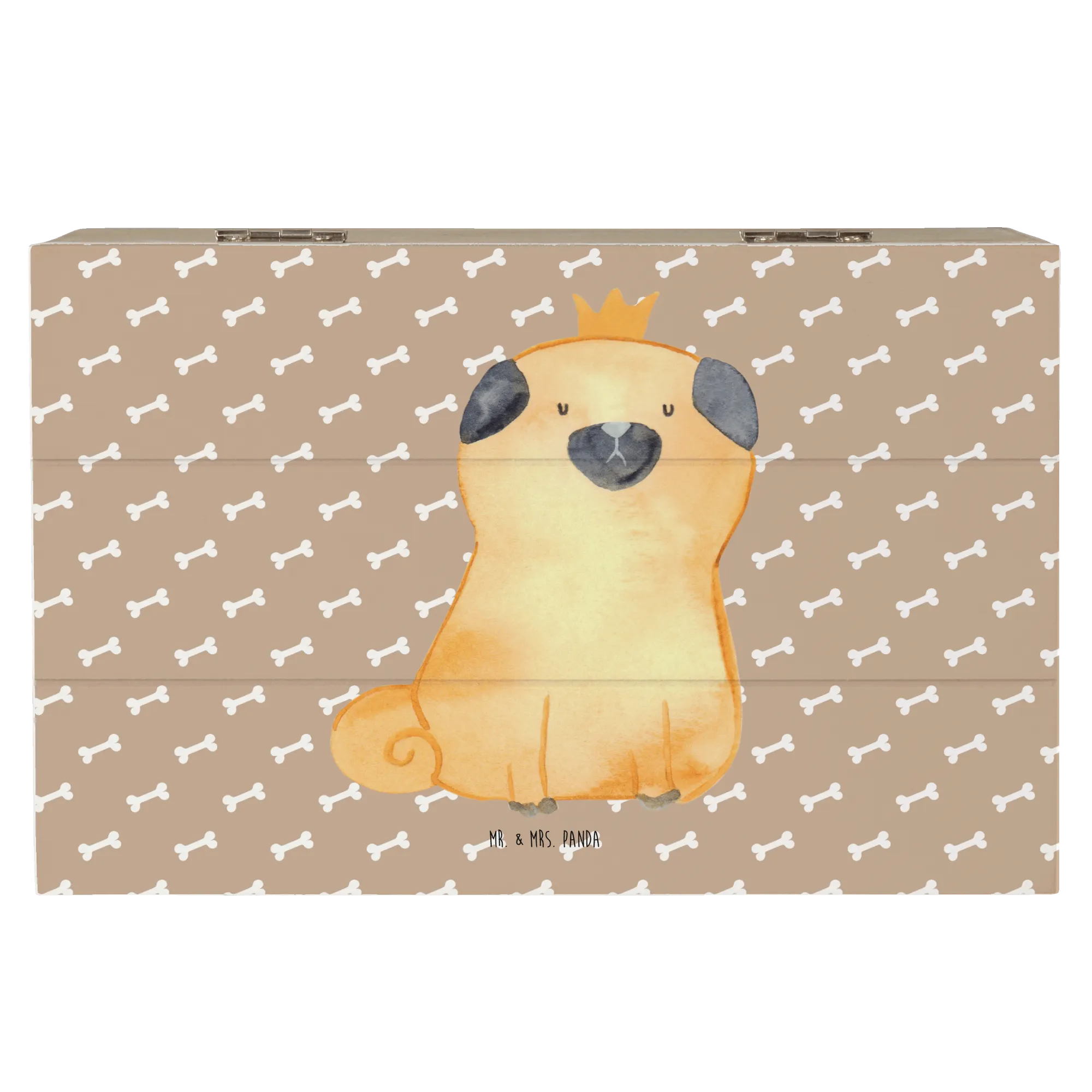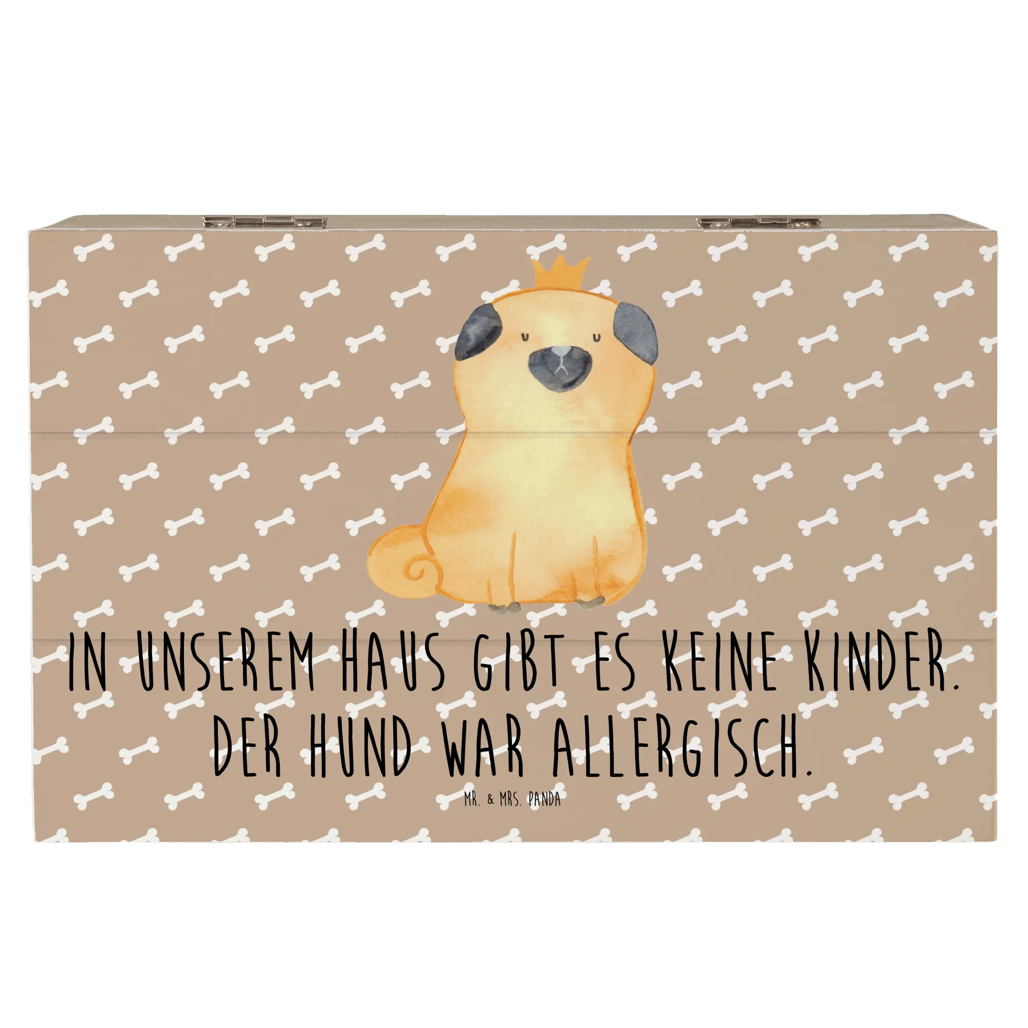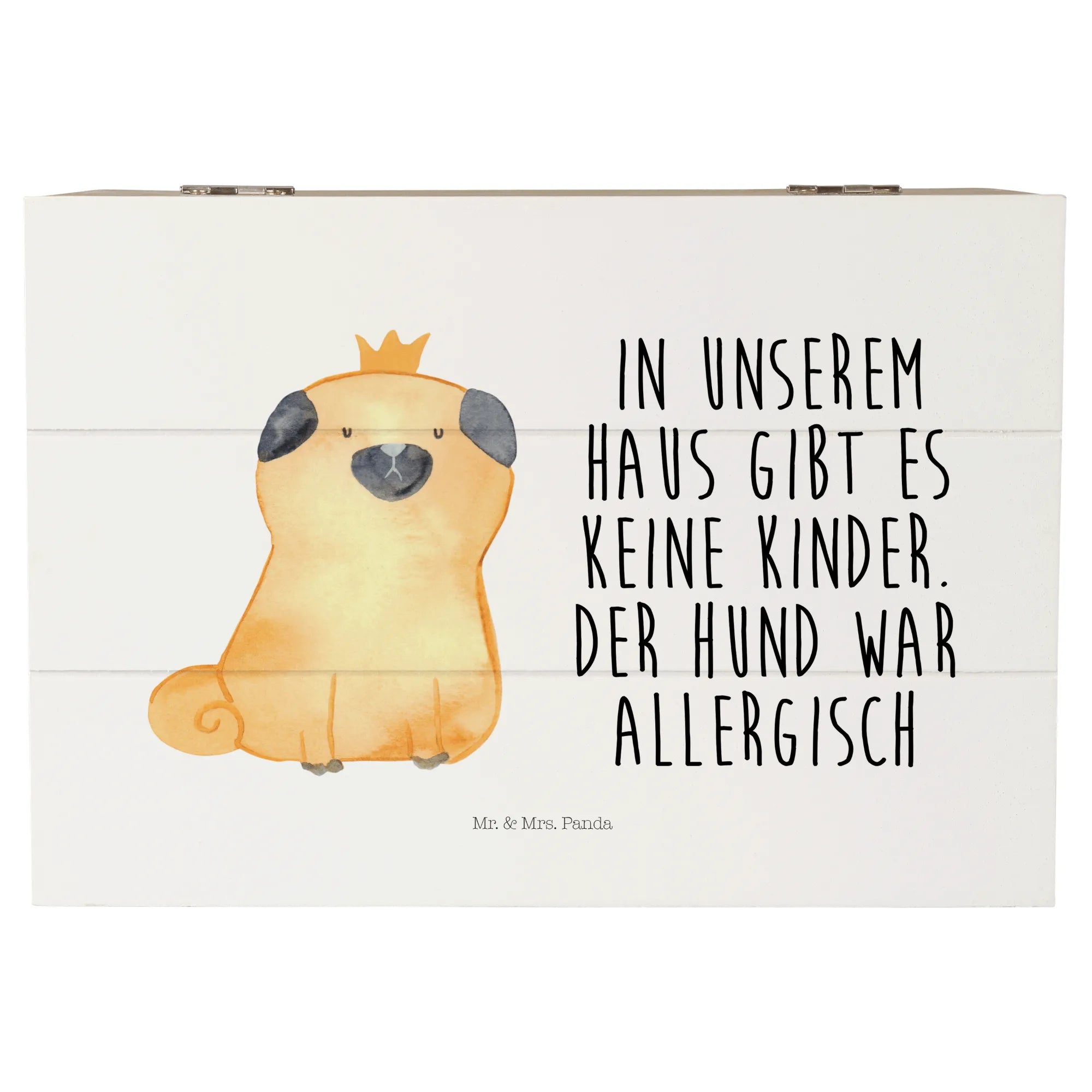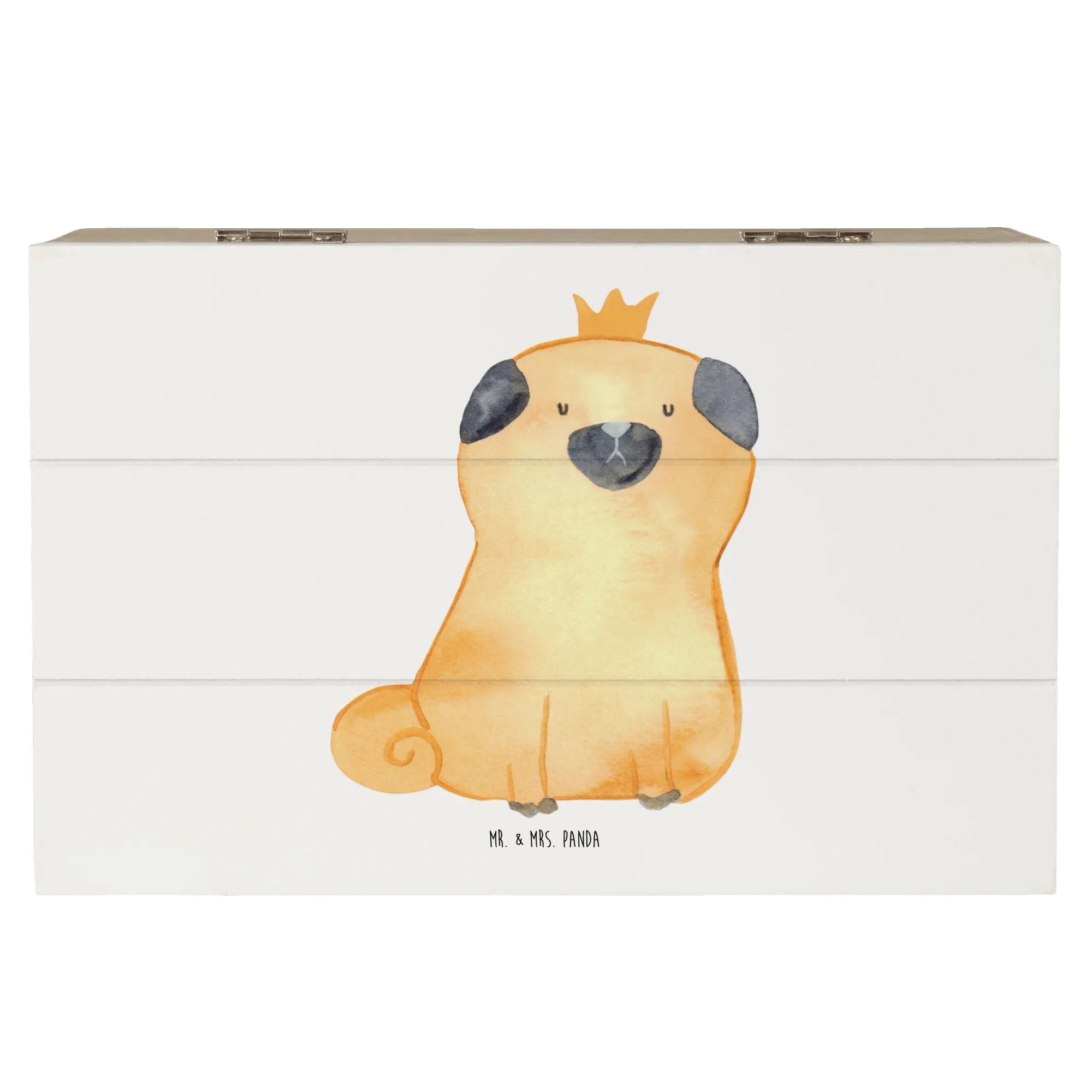 Wooden chest pug Crown - 22 x 15 cm - with a saying - White