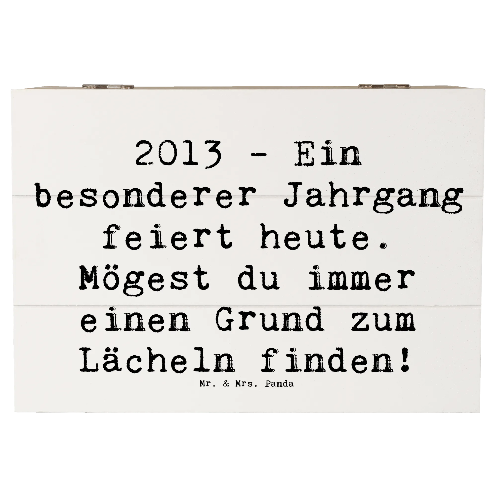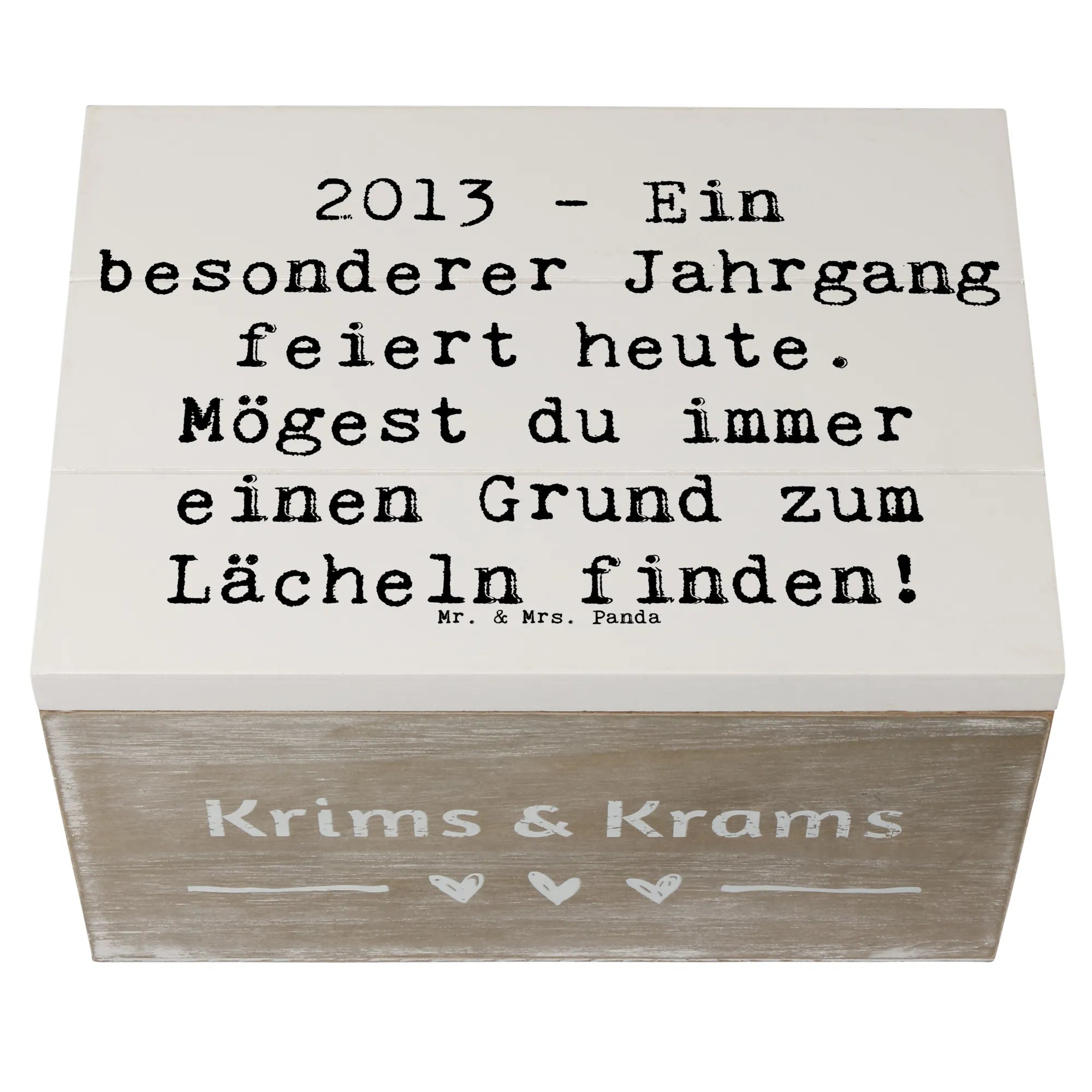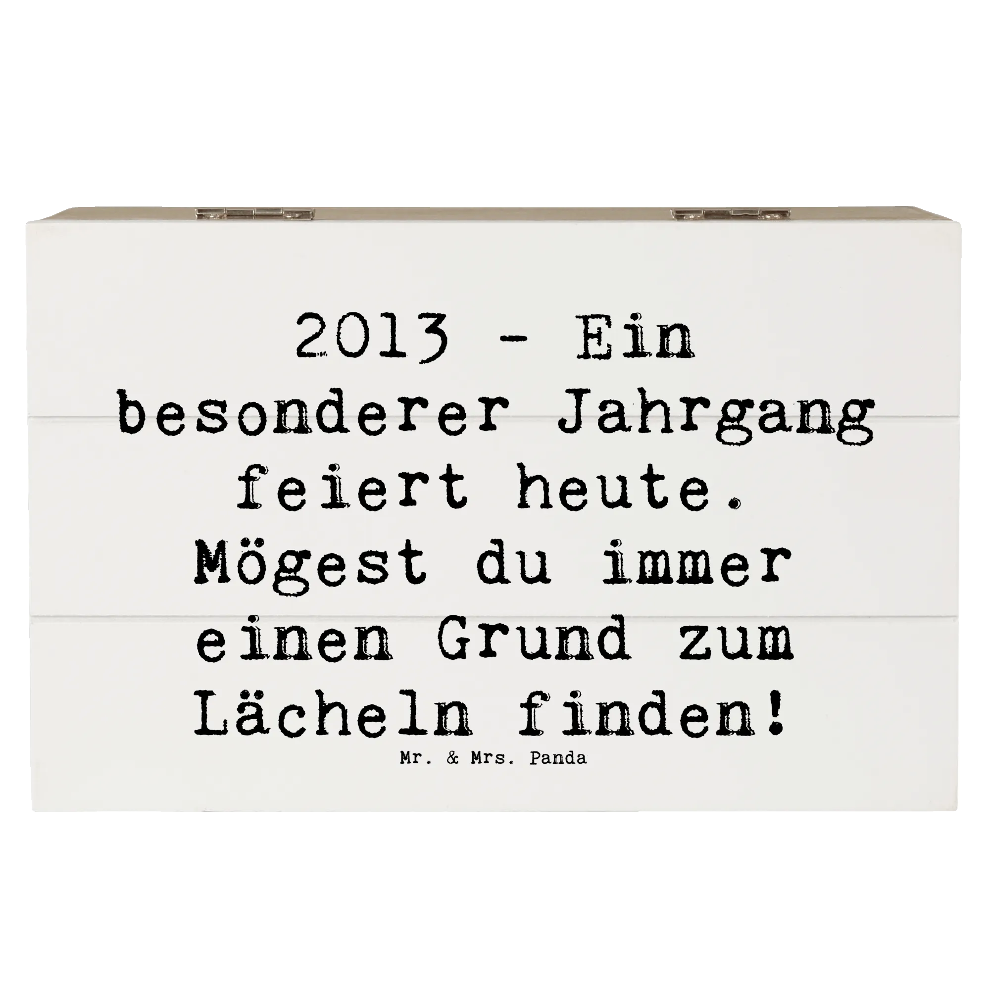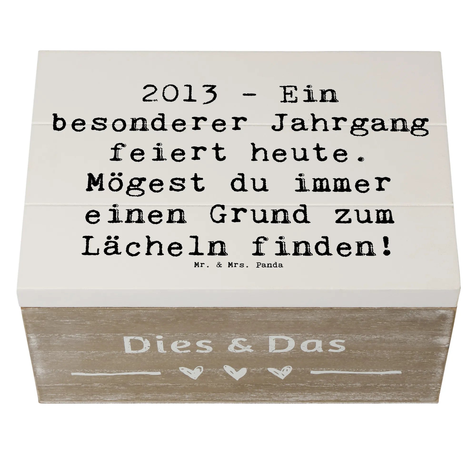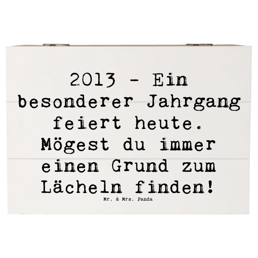 Wooden chest Saying 2013 - Ein besonderer Jahrgang feiert heute. Mögest du immer einen Grund zum Lächeln finden! - 22 x 15 cm - White