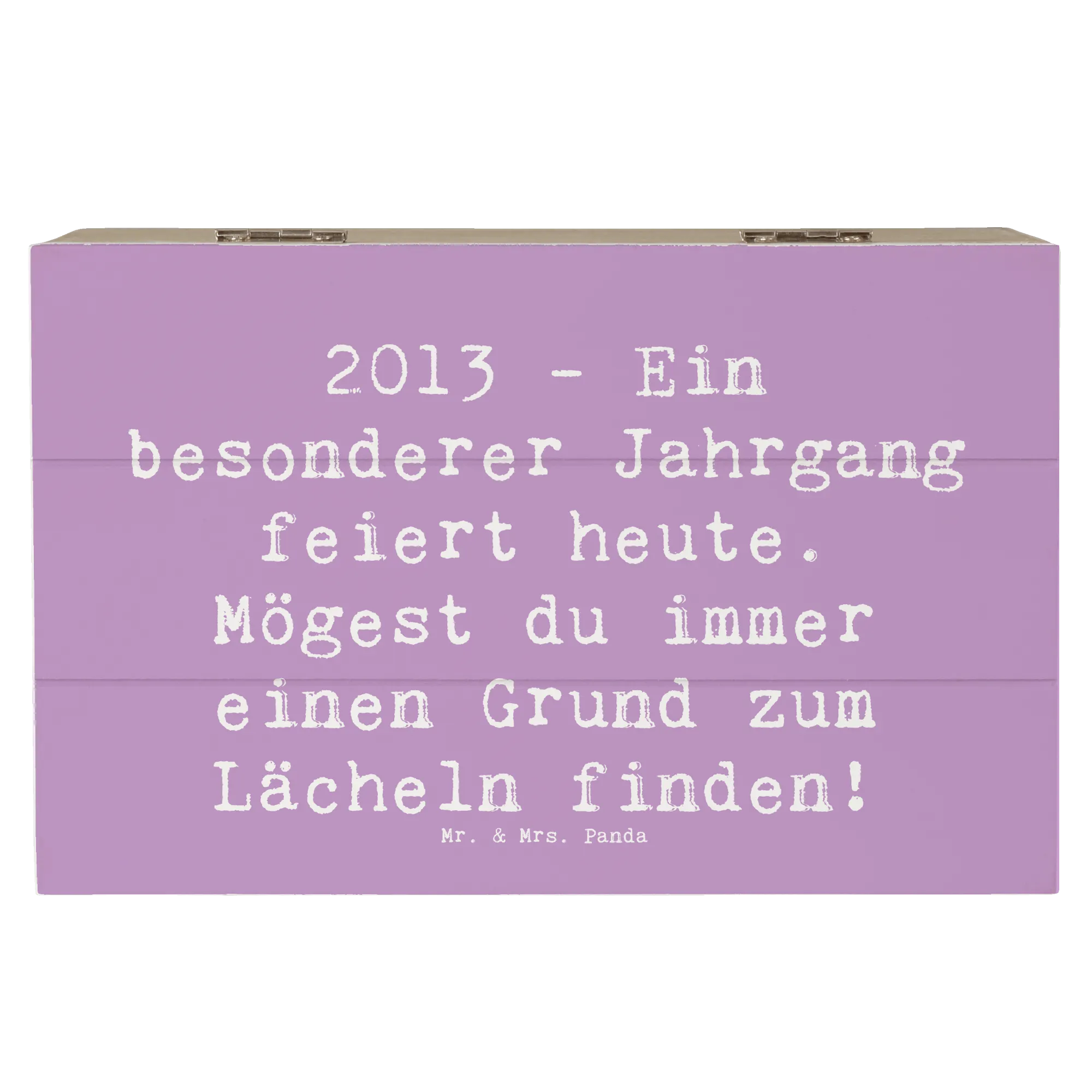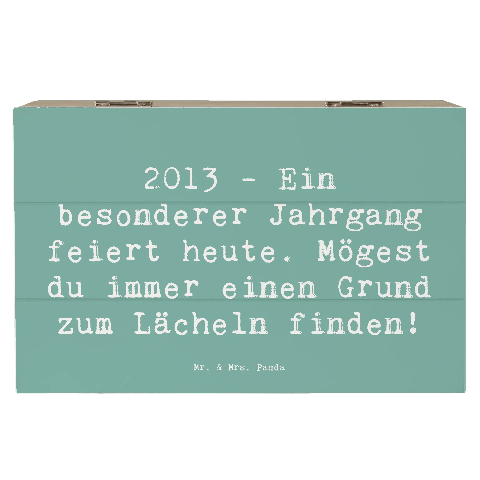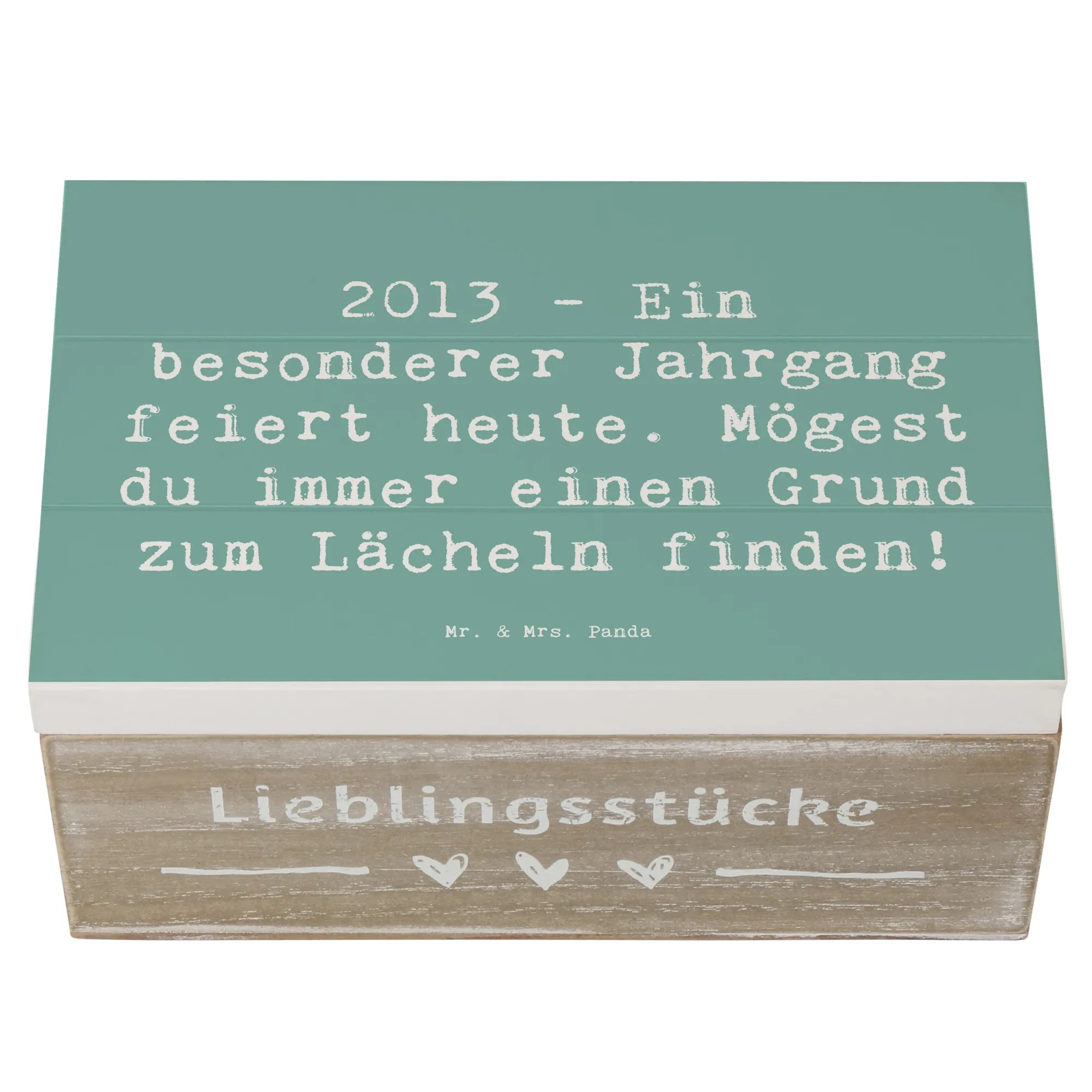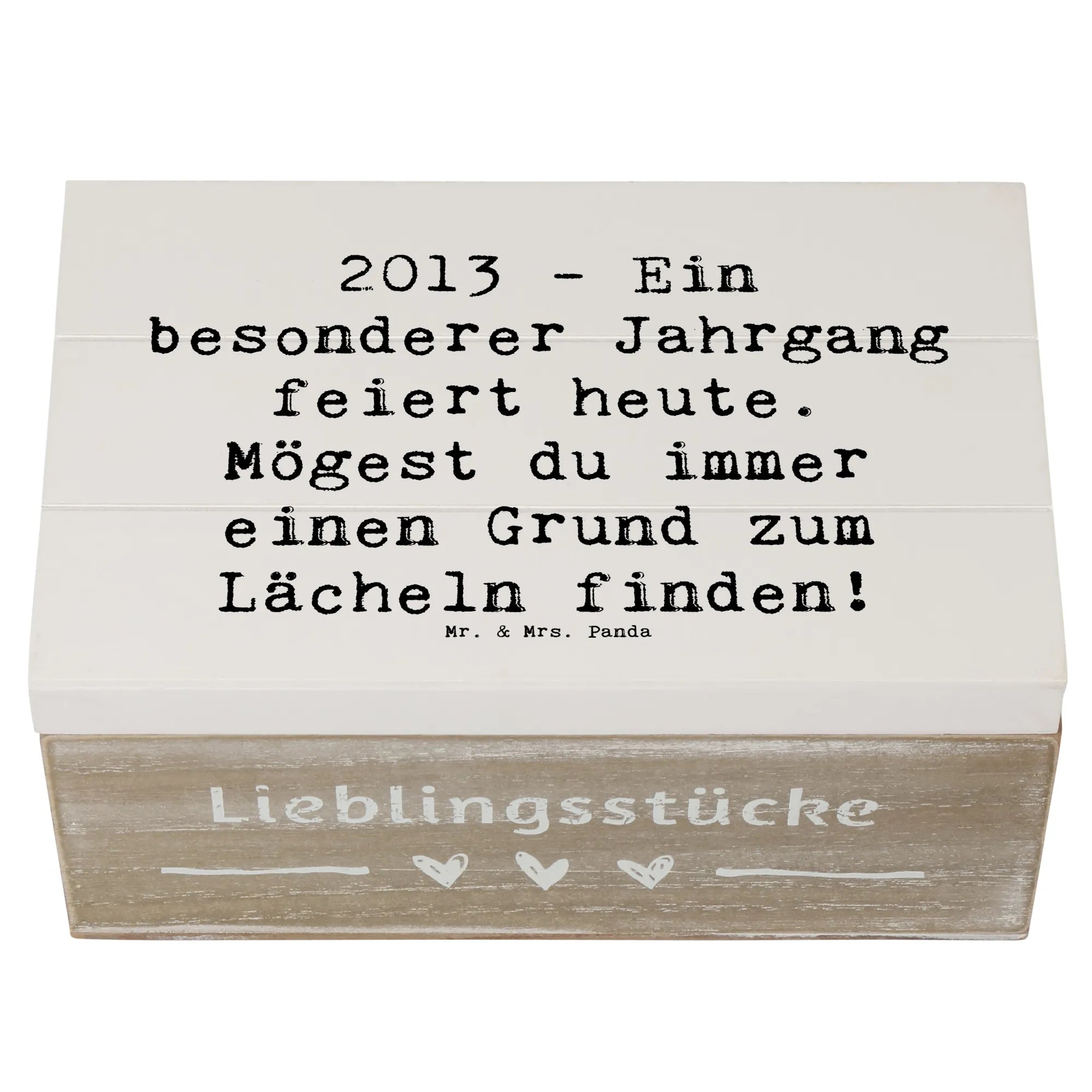 Wooden chest Saying 2013 - Ein besonderer Jahrgang feiert heute. Mögest du immer einen Grund zum Lächeln finden! - 22 x 15 cm - White