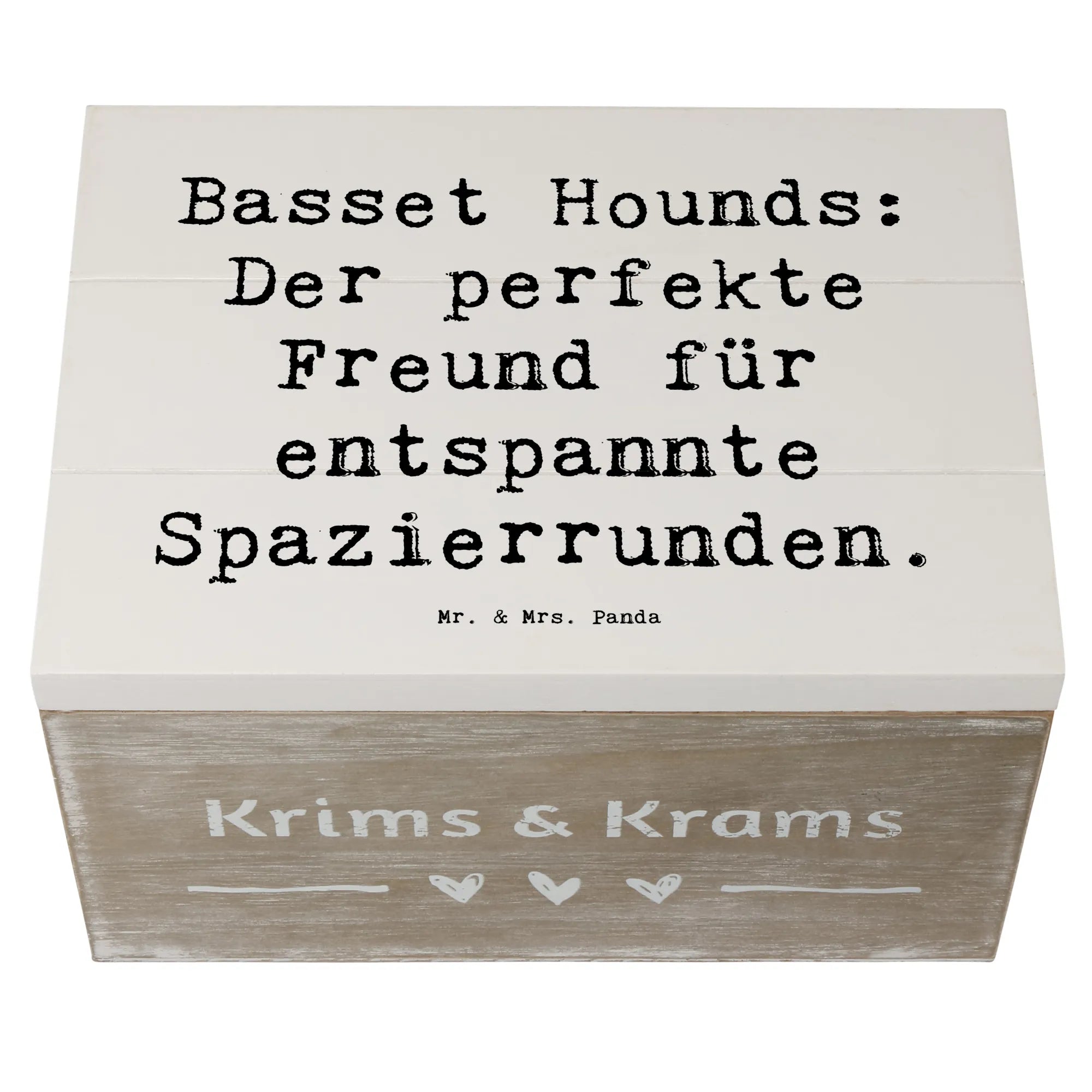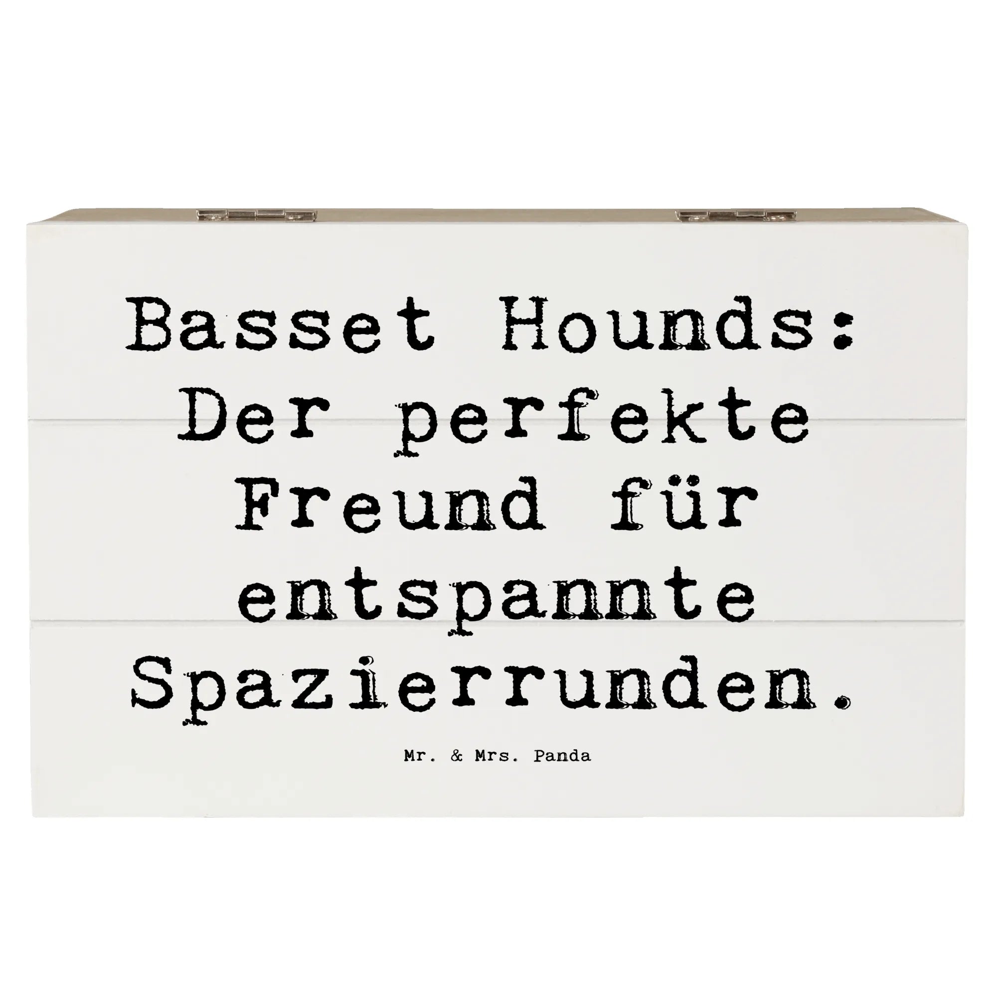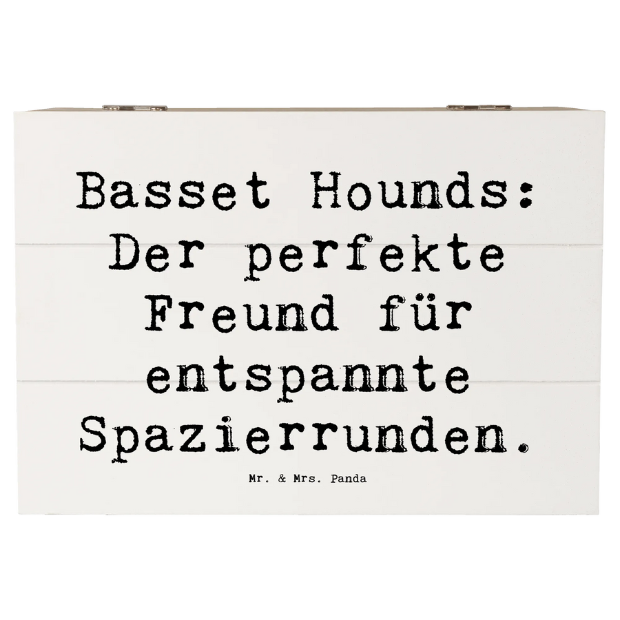 Wooden chest Saying Basset Hounds: Der perfekte Freund für entspannte Spazierrunden. - 22 x 15 cm - White