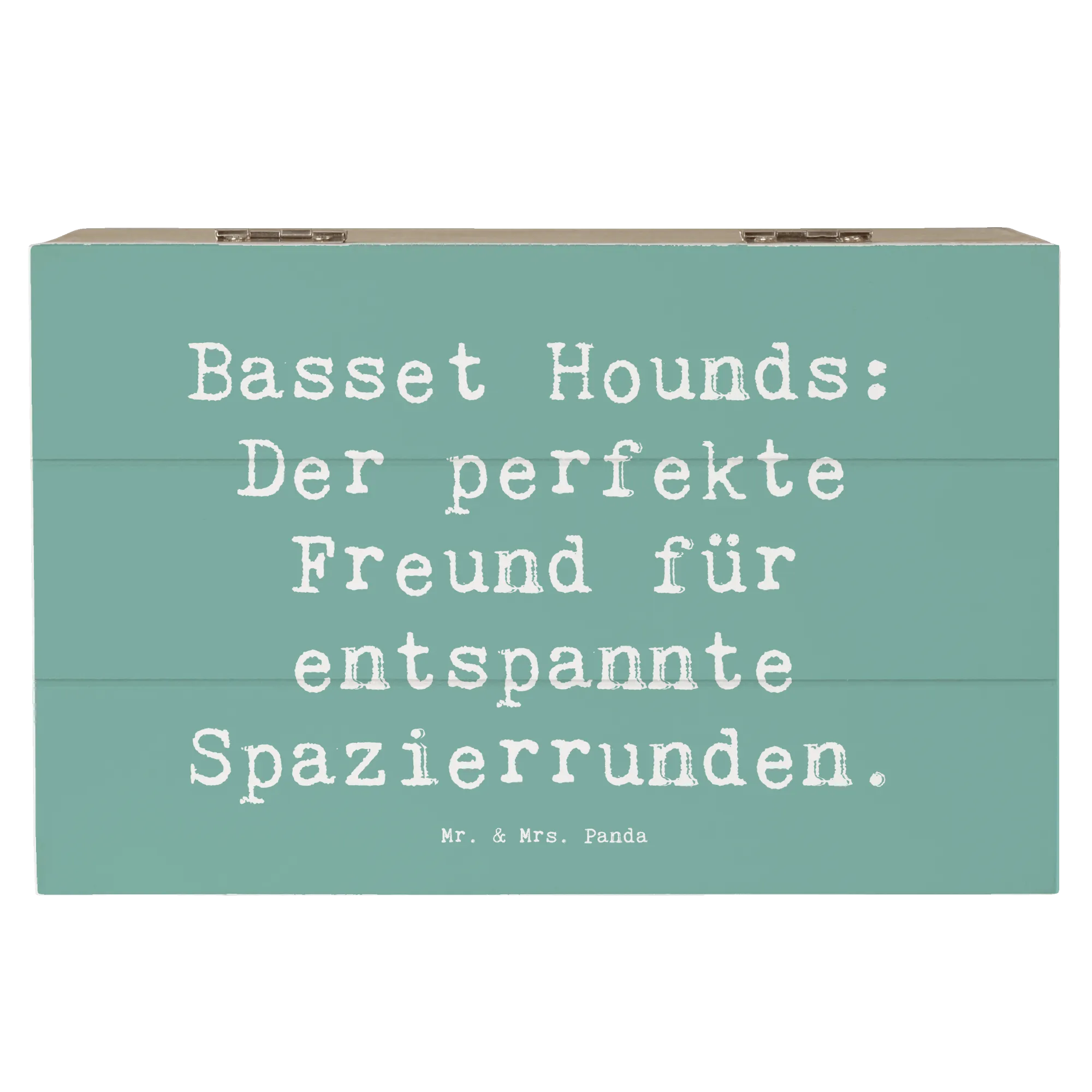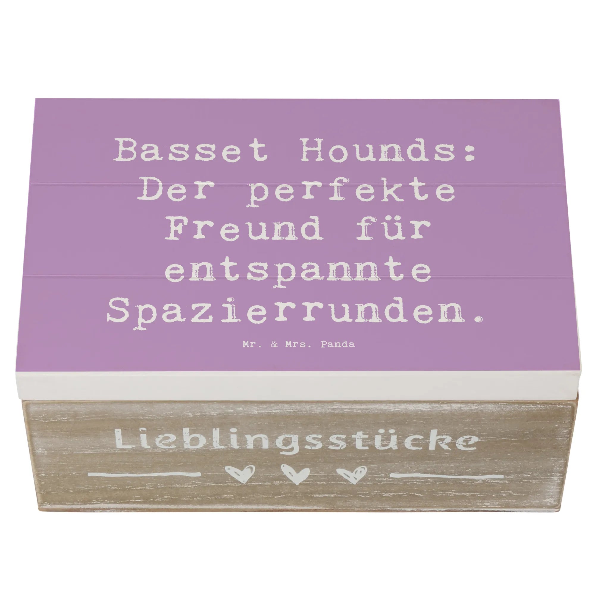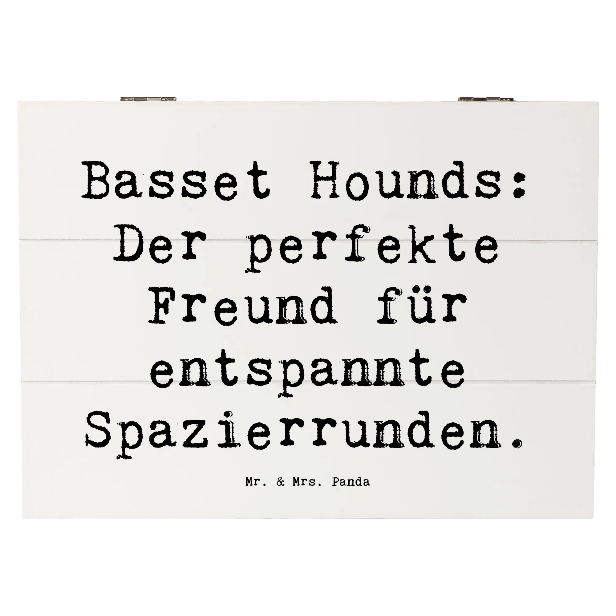 Wooden chest Saying Basset Hounds: Der perfekte Freund für entspannte Spazierrunden. - 22 x 15 cm - White