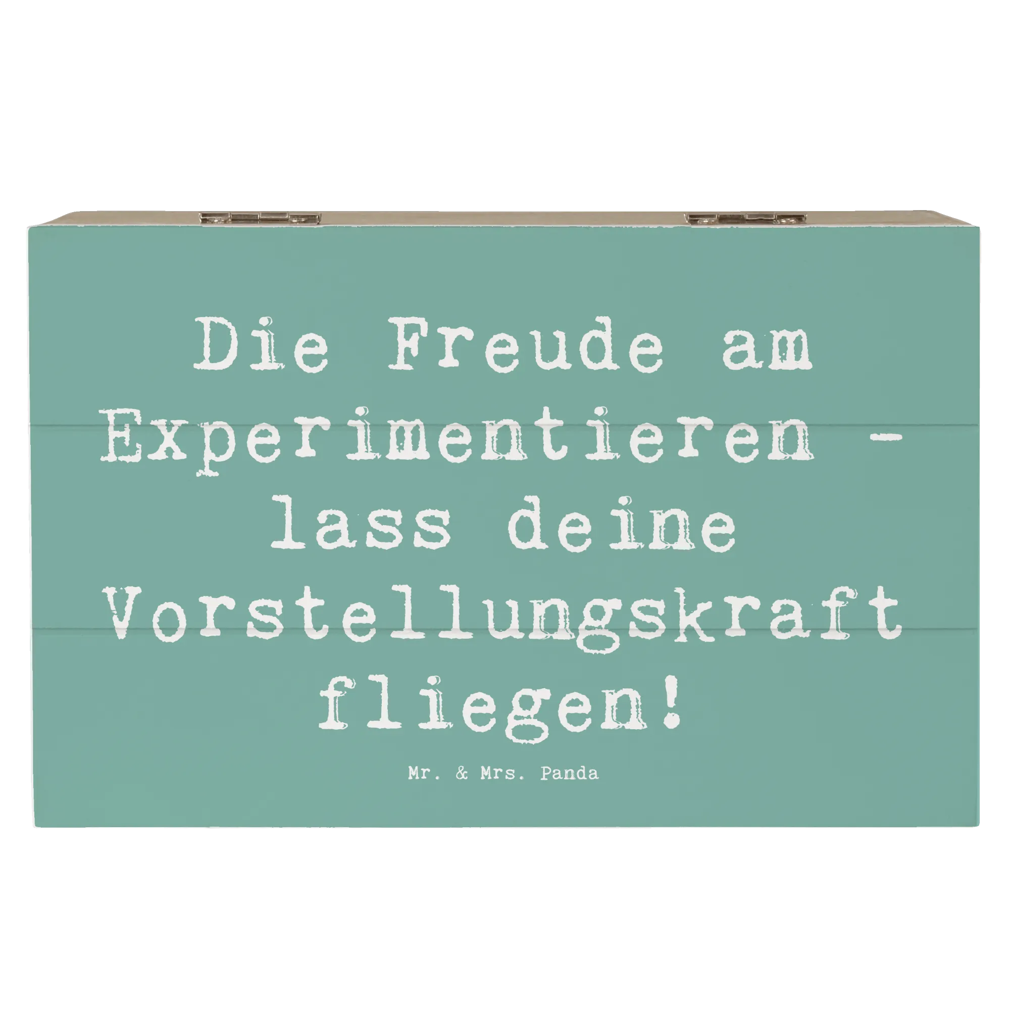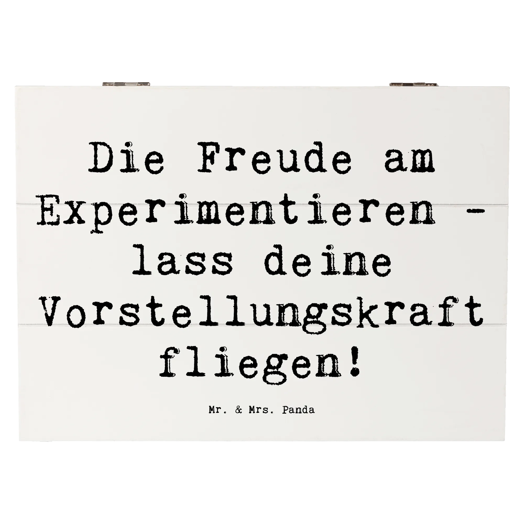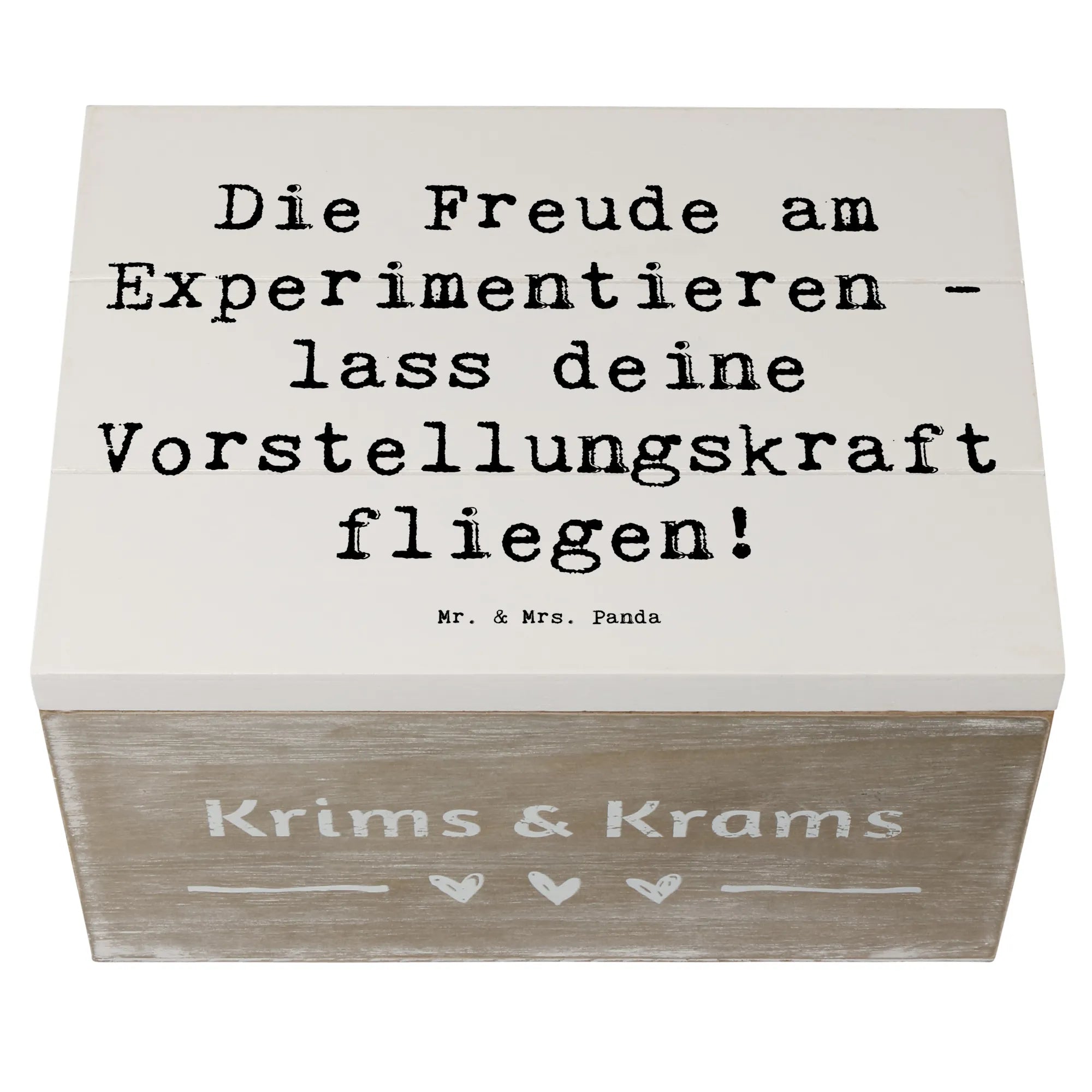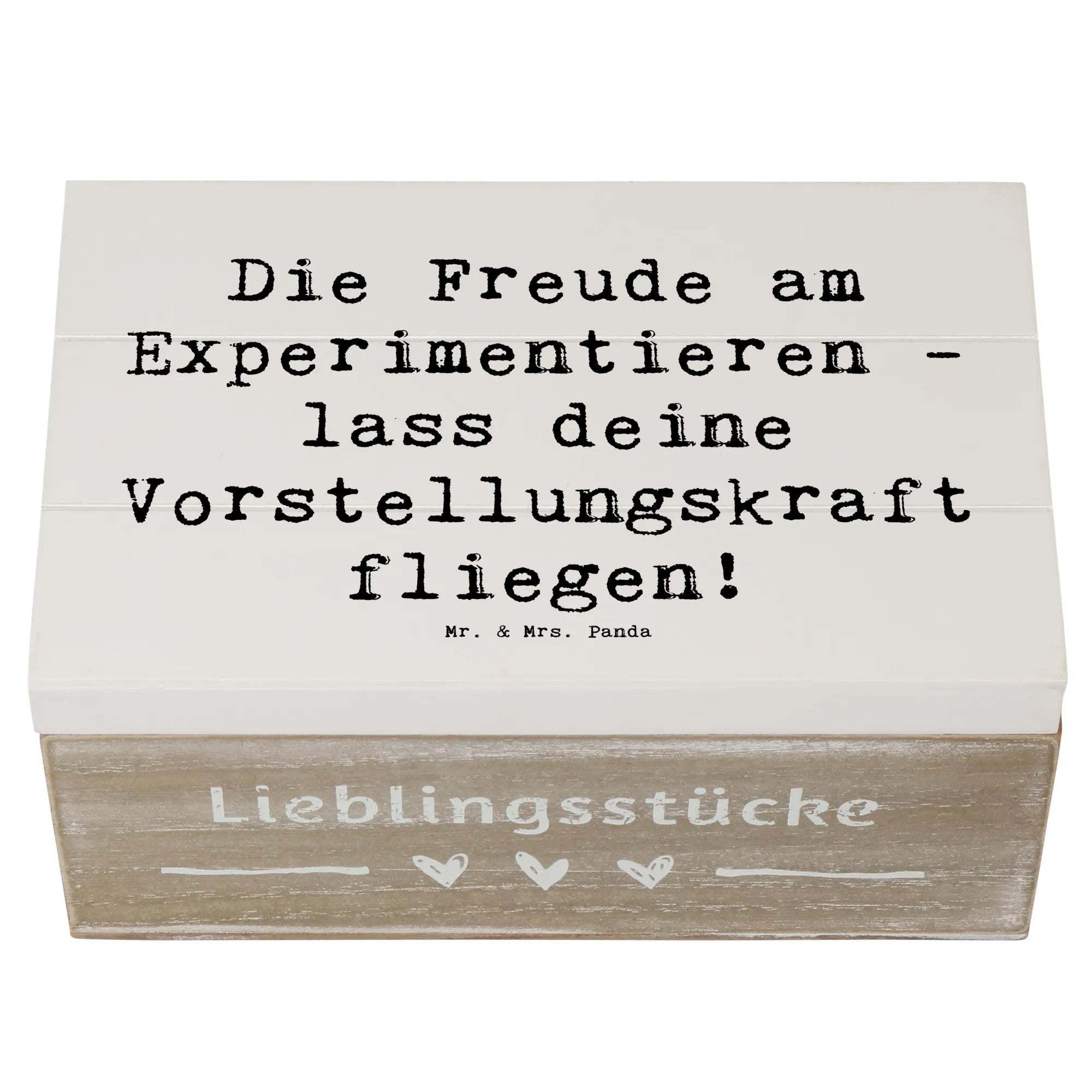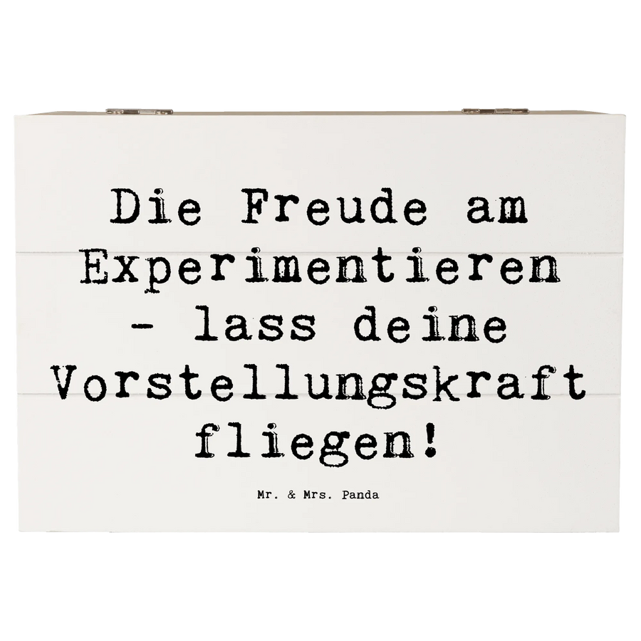 Wooden chest Saying Die Freude am Experimentieren - lass deine Vorstellungskraft fliegen! - 22 x 15 cm - White