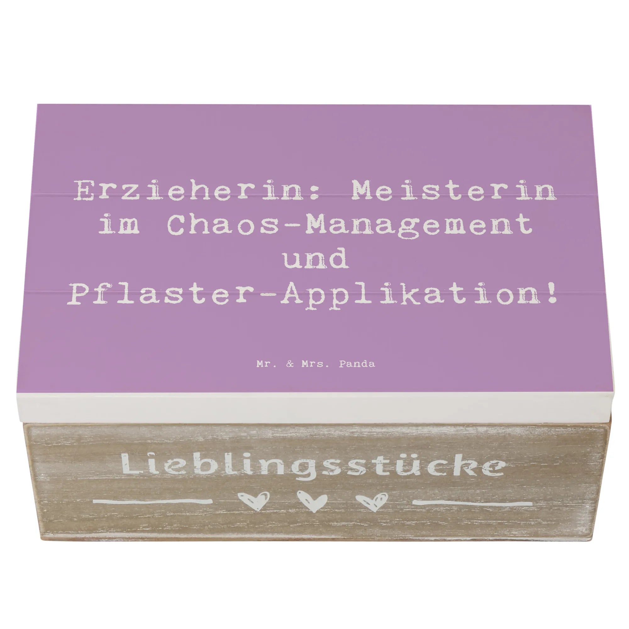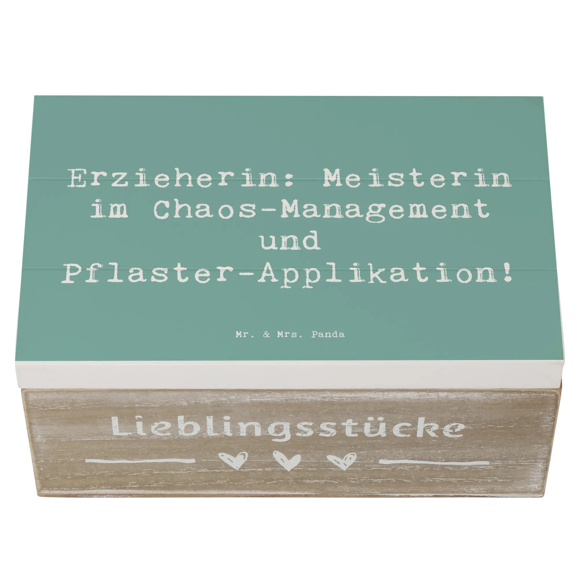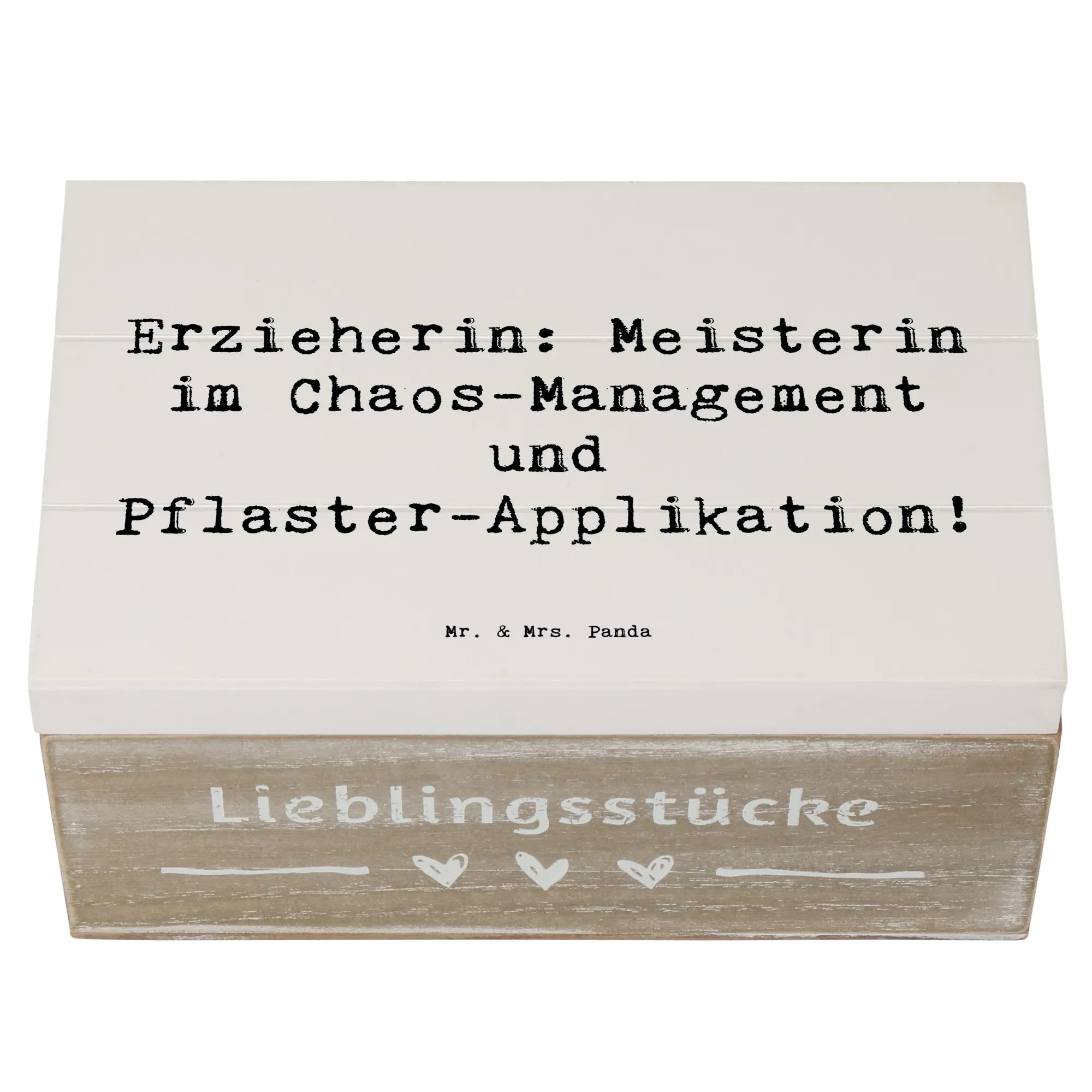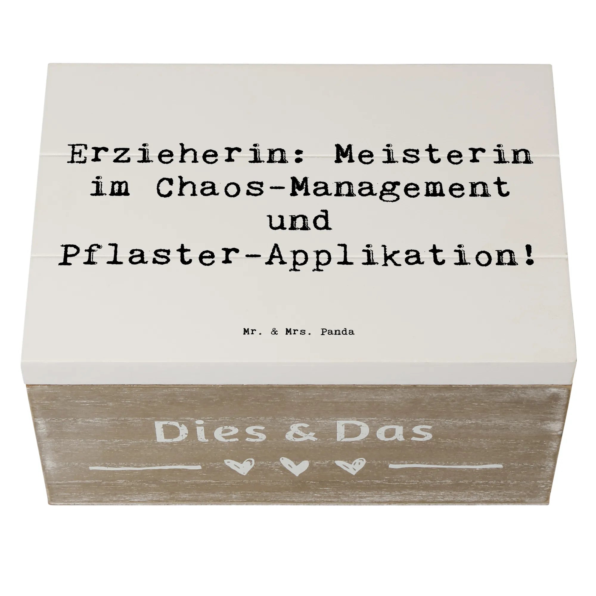 Wooden chest Saying Erzieherin: Meisterin im Chaos-Management und Pflaster-Applikation! - 22 x 15 cm - White