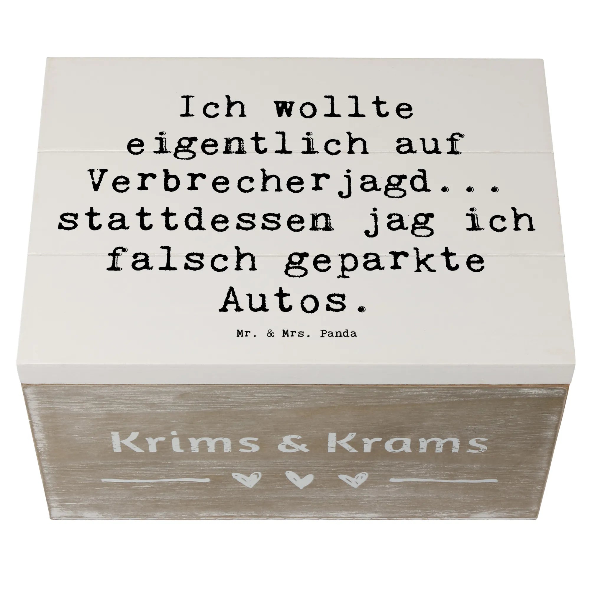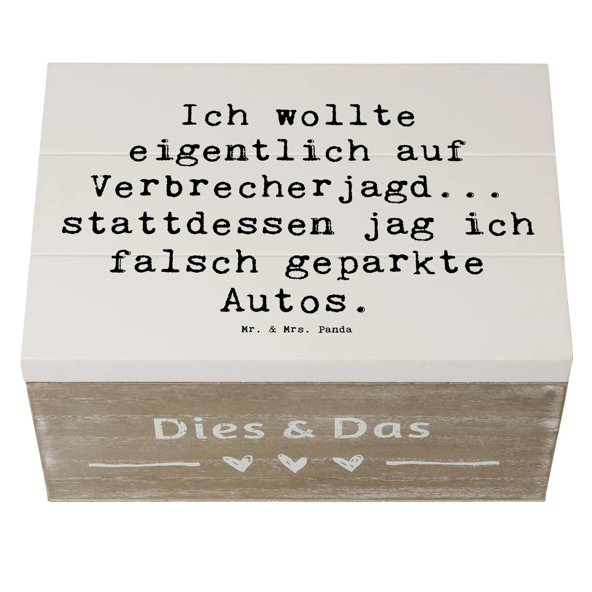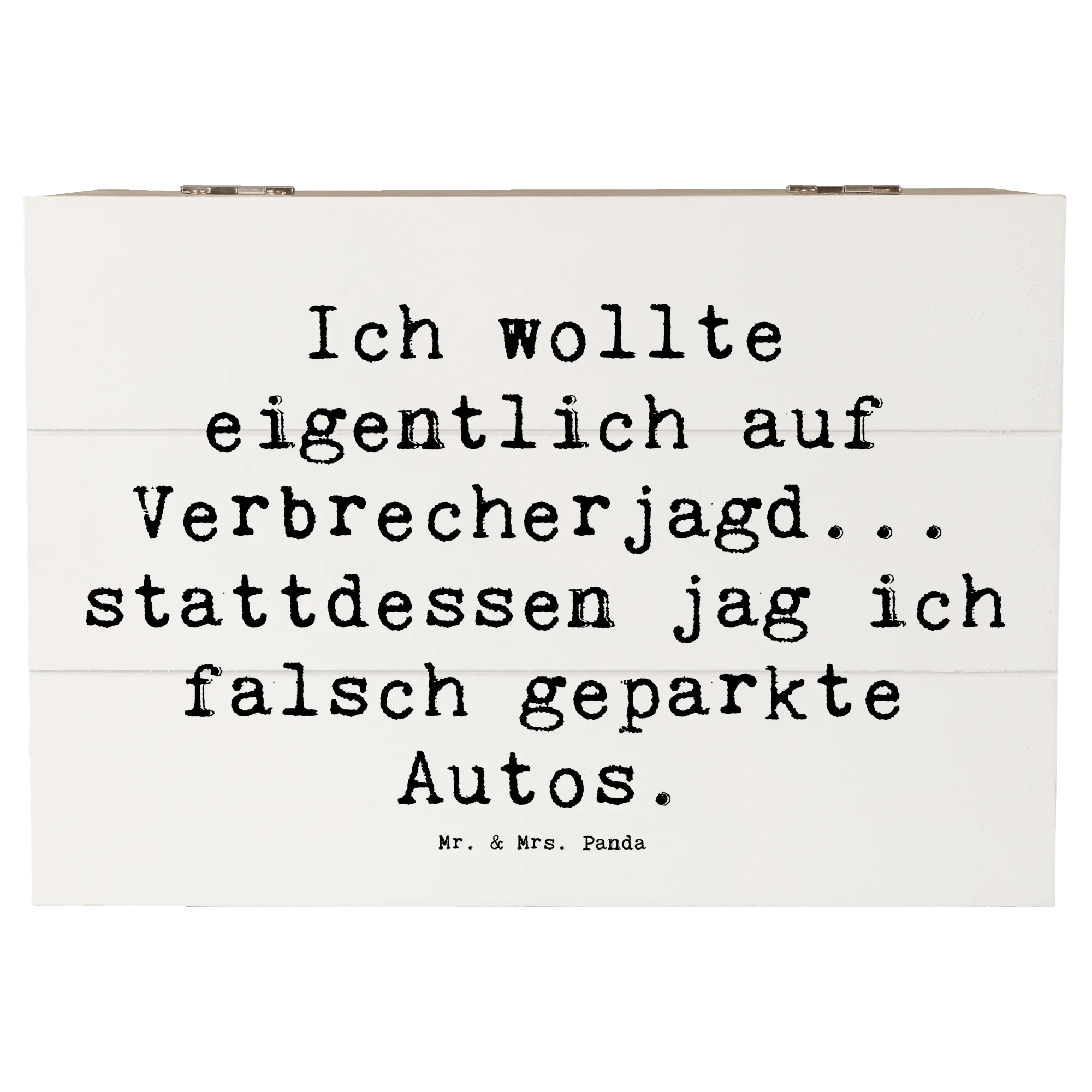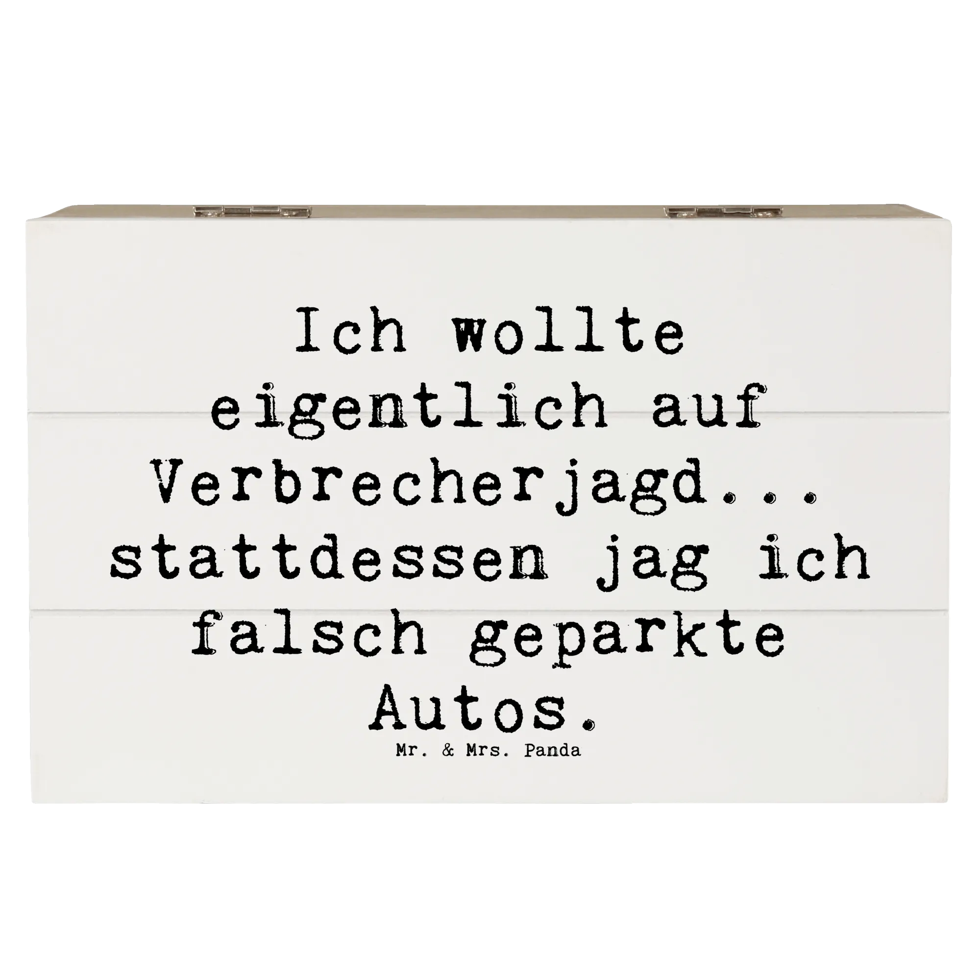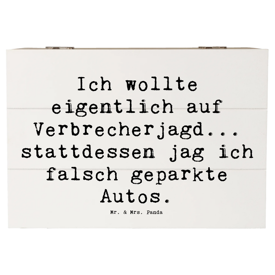 Wooden chest Saying Ich wollte eigentlich auf Verbrecherjagd... stattdessen jag ich falsch geparkte Autos. - 22 x 15 cm - White