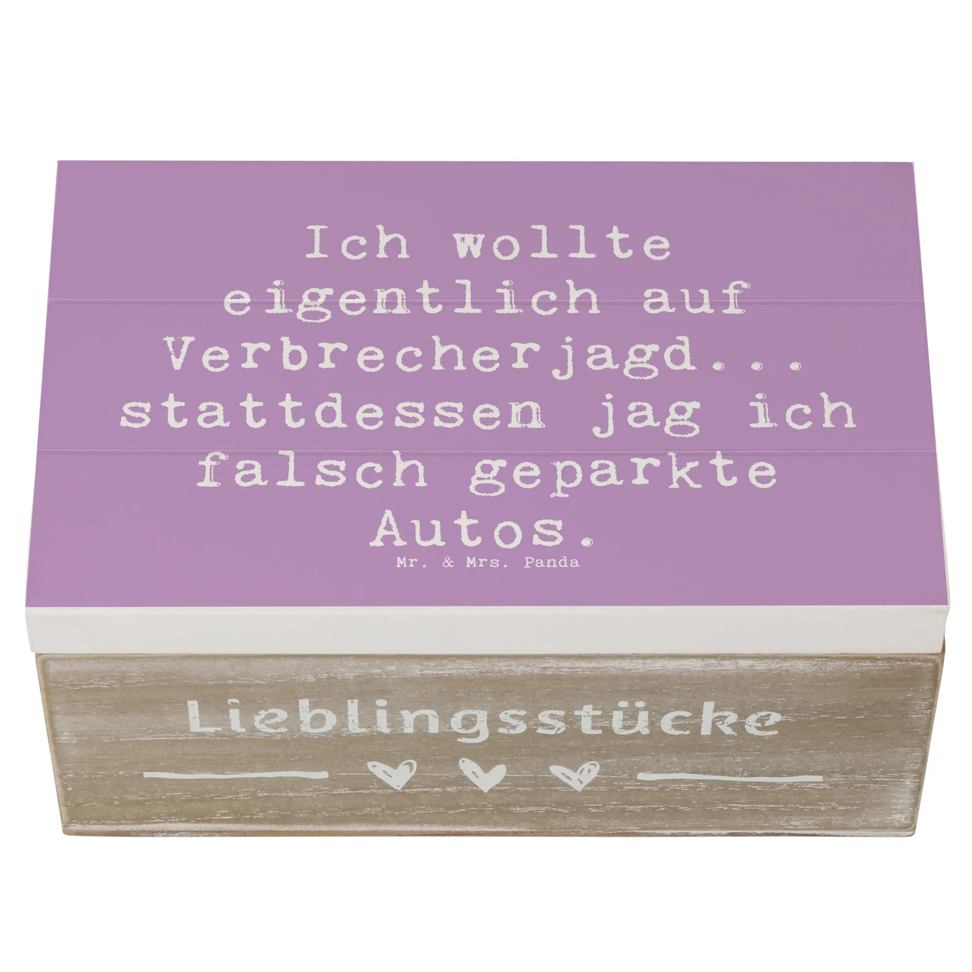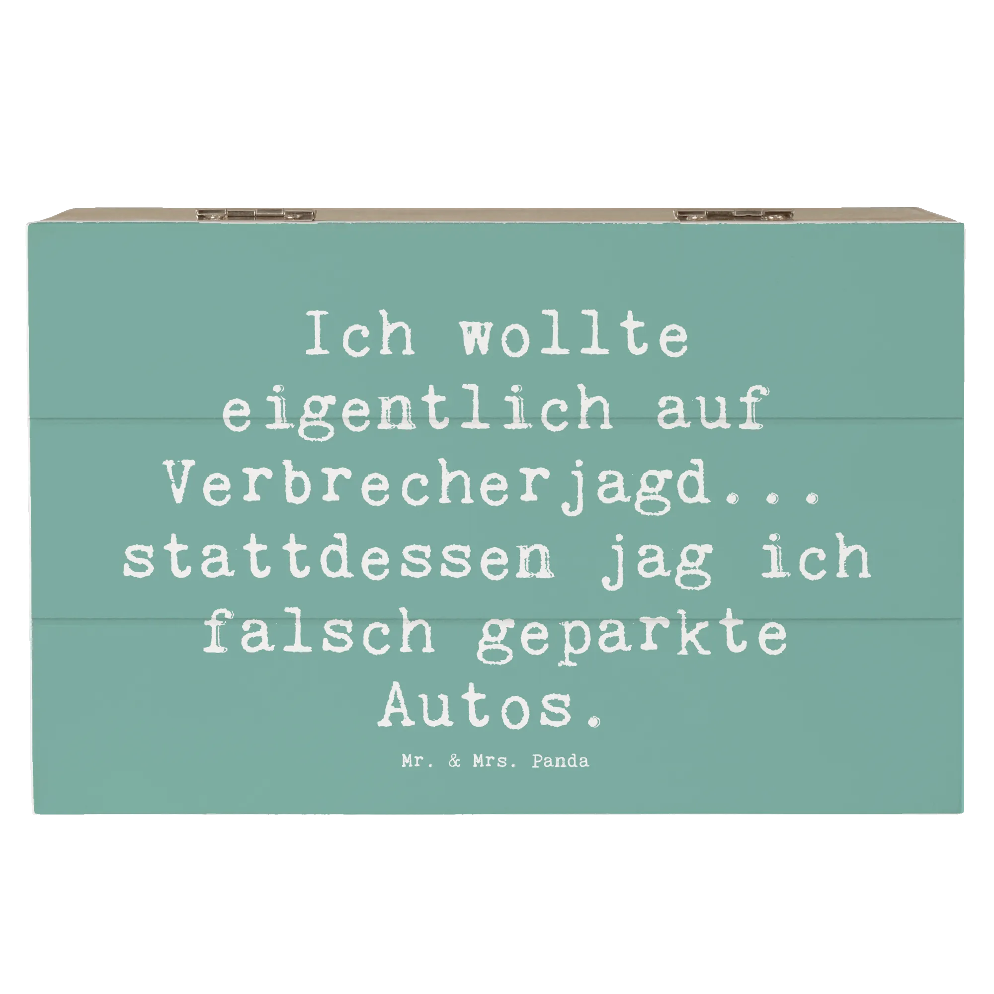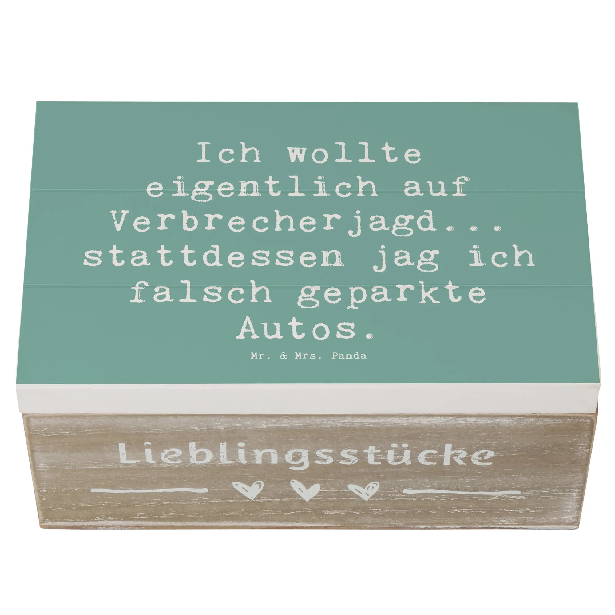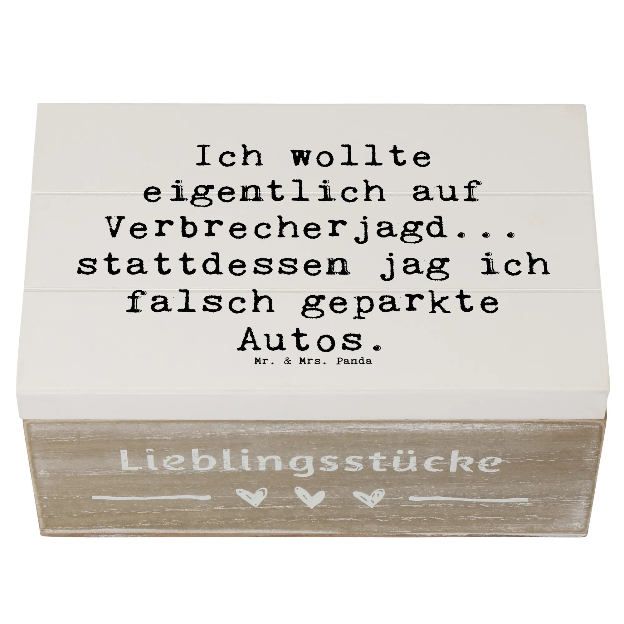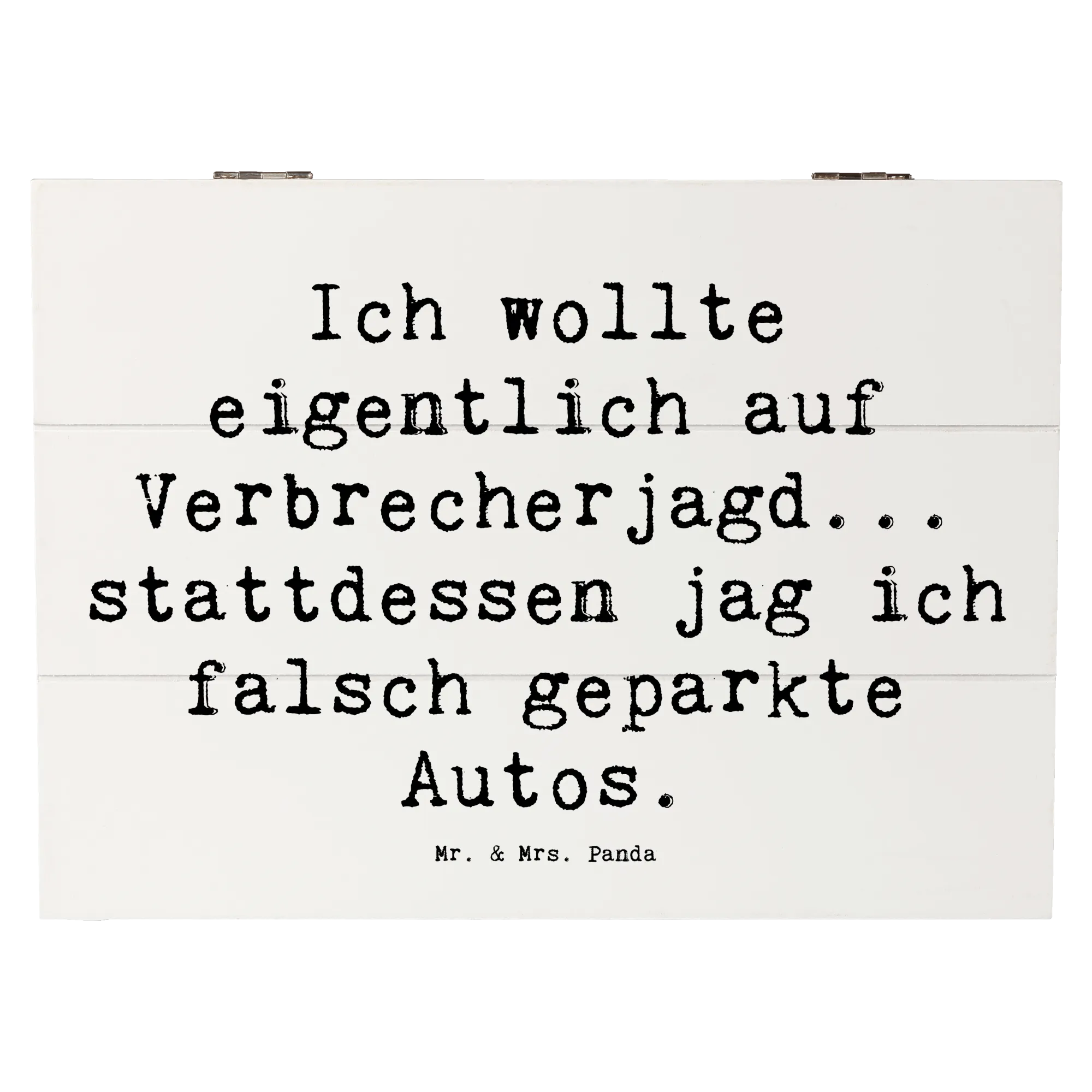 Wooden chest Saying Ich wollte eigentlich auf Verbrecherjagd... stattdessen jag ich falsch geparkte Autos. - 22 x 15 cm - White