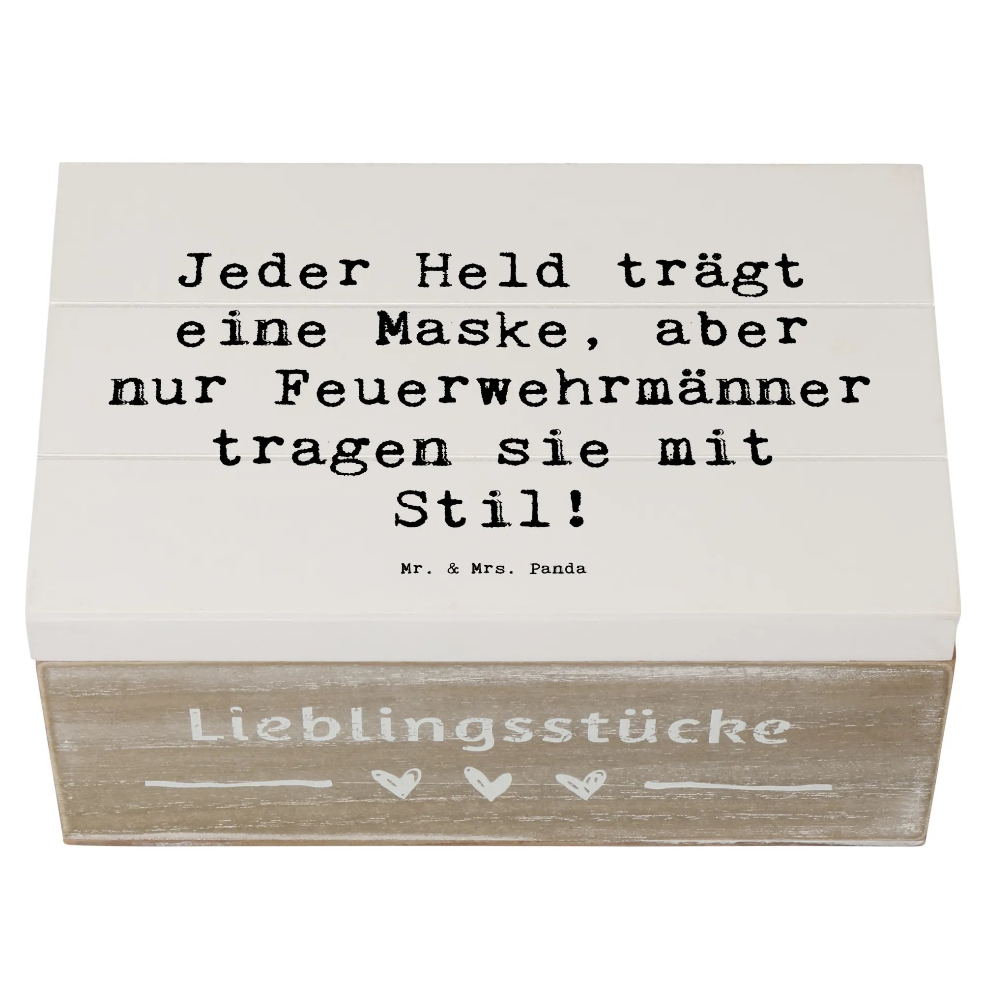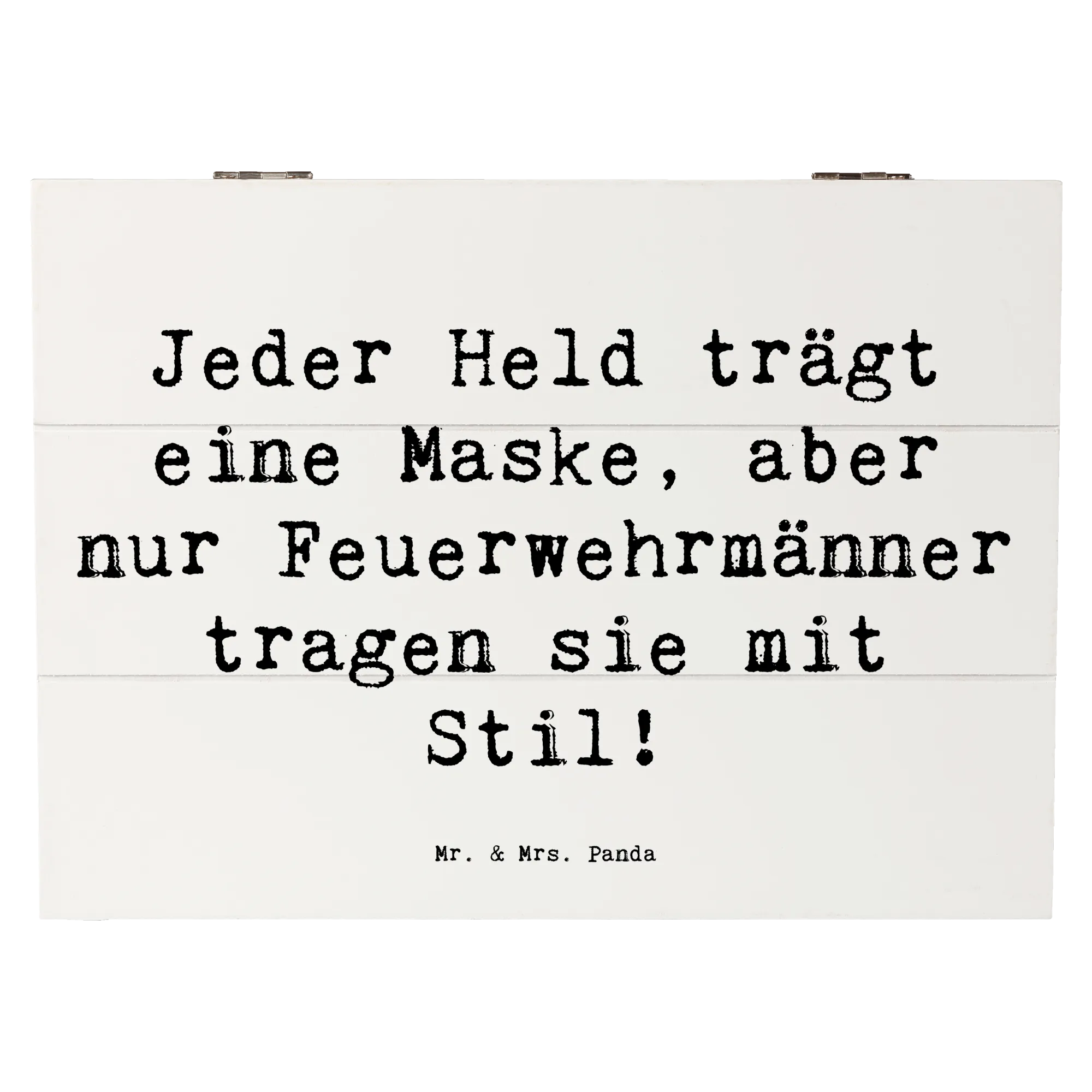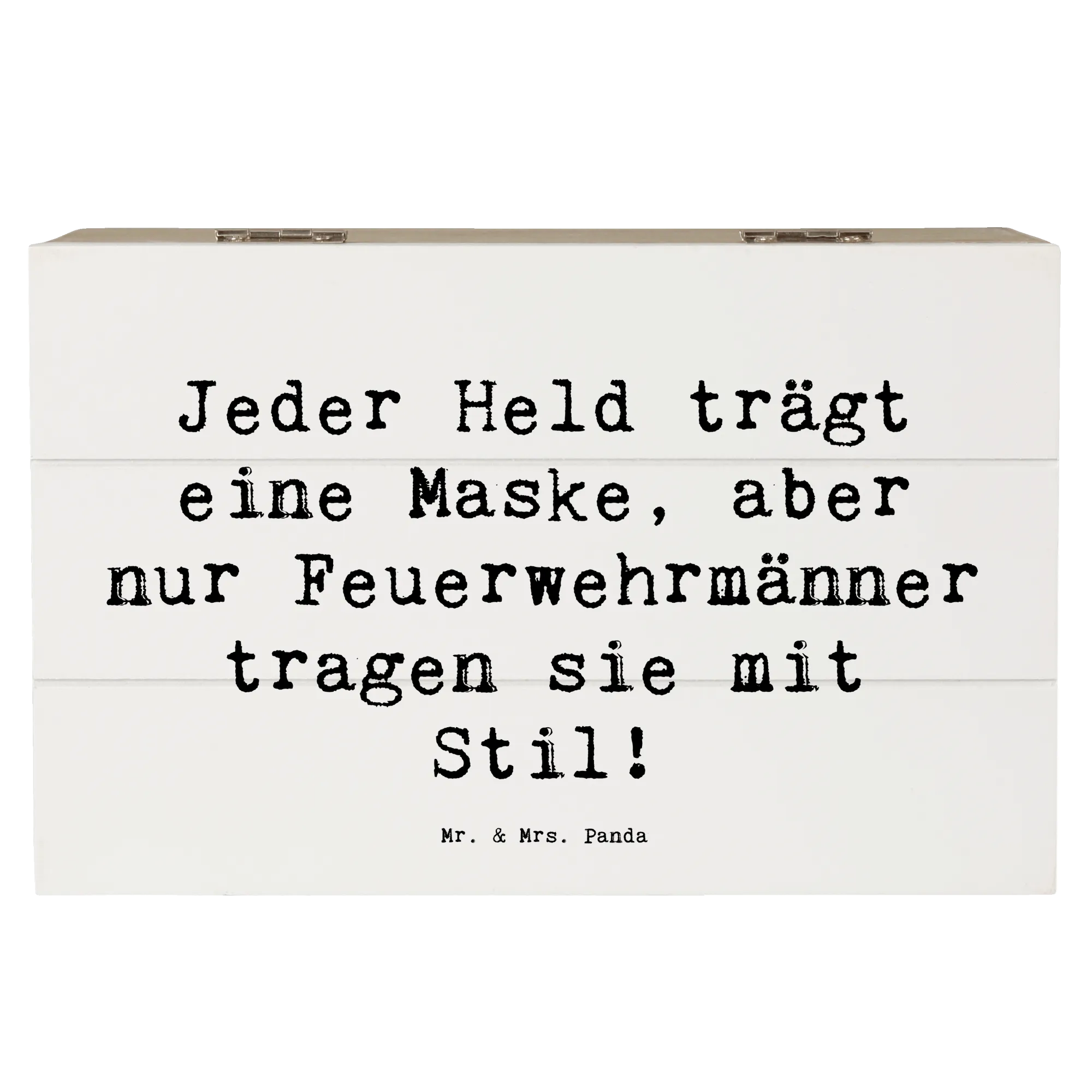 Wooden chest Saying Jeder Held trägt eine Maske, aber nur Feuerwehrmänner tragen sie mit Stil! - 22 x 15 cm - White