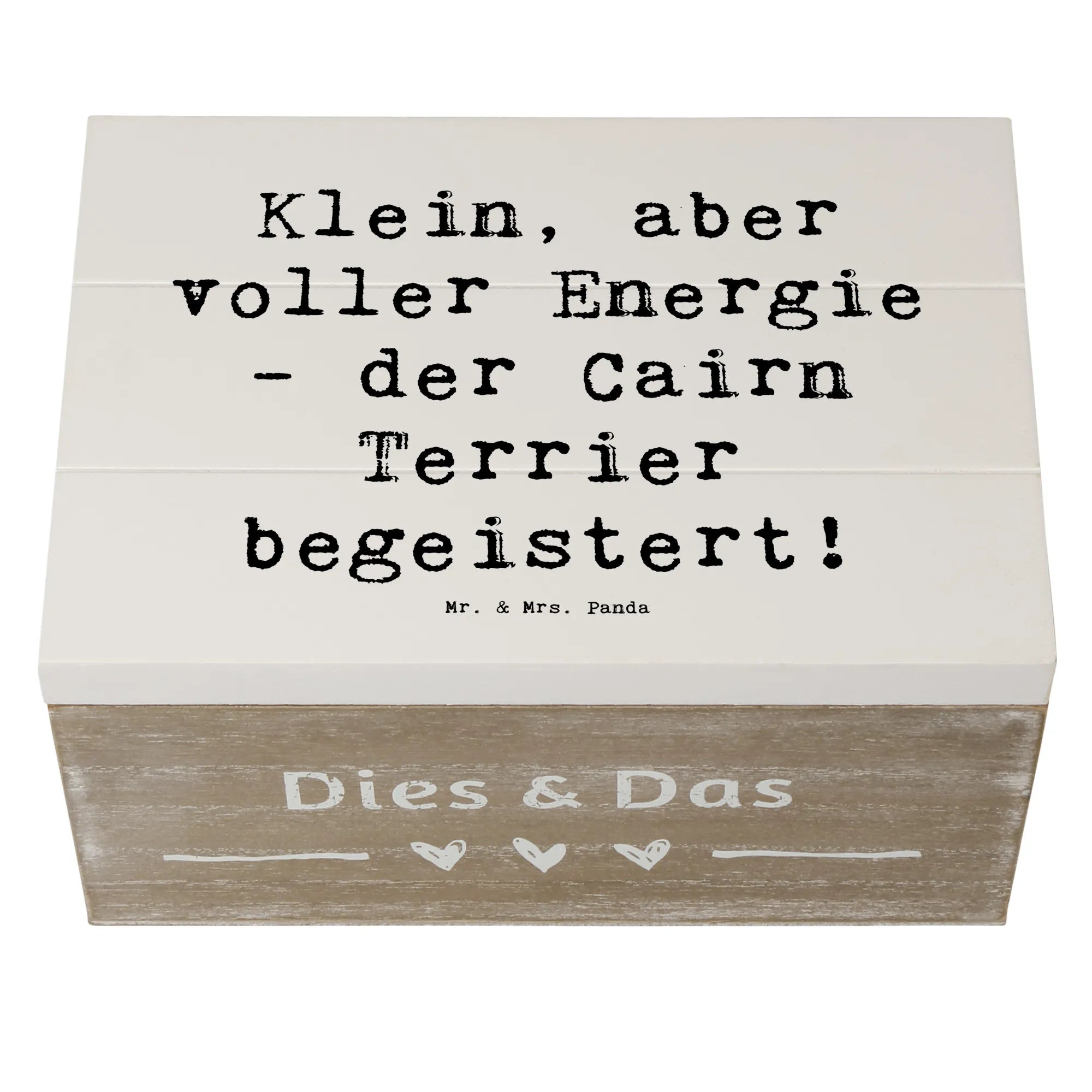 Wooden chest Saying Klein, aber voller Energie - der Cairn Terrier begeistert! - 22 x 15 cm - White