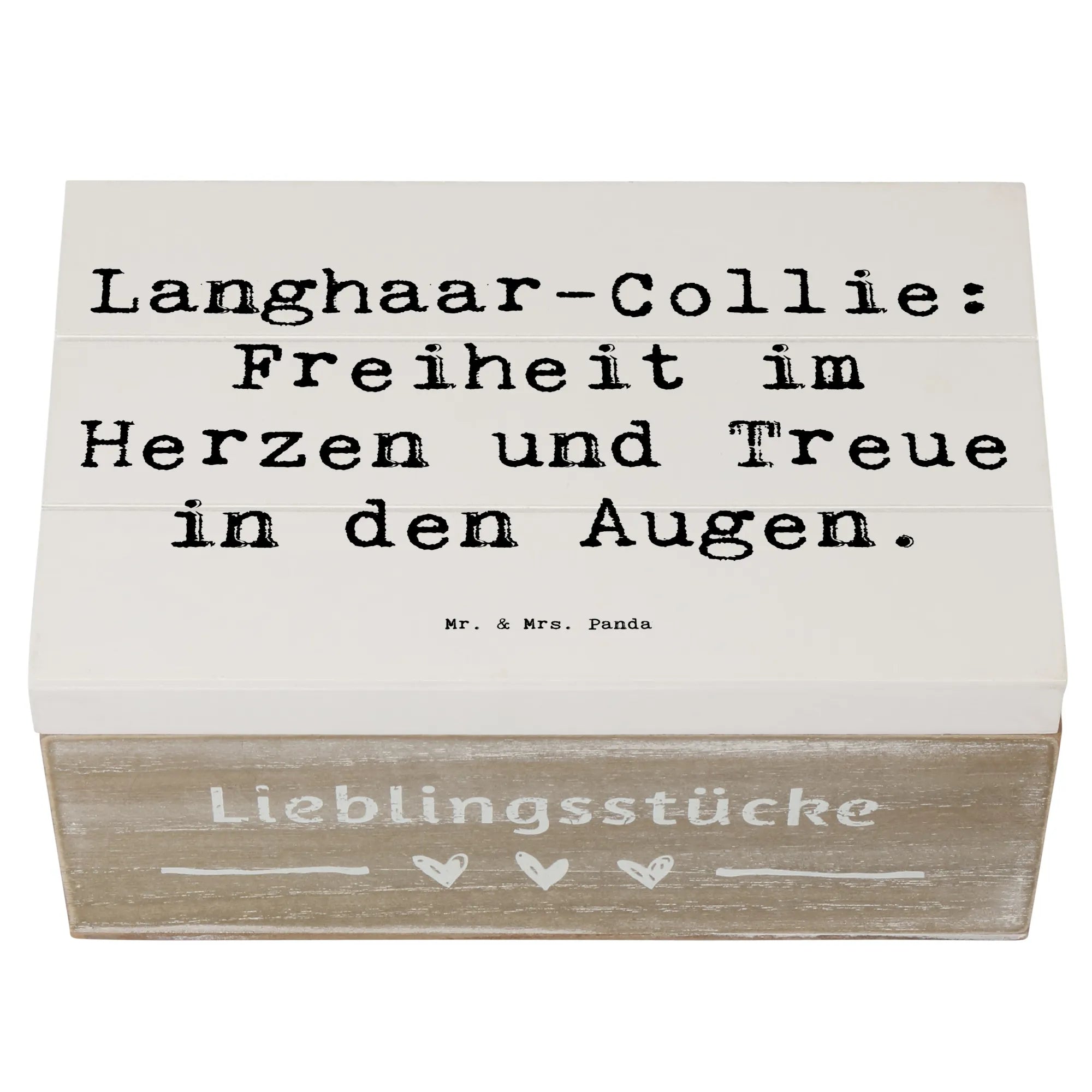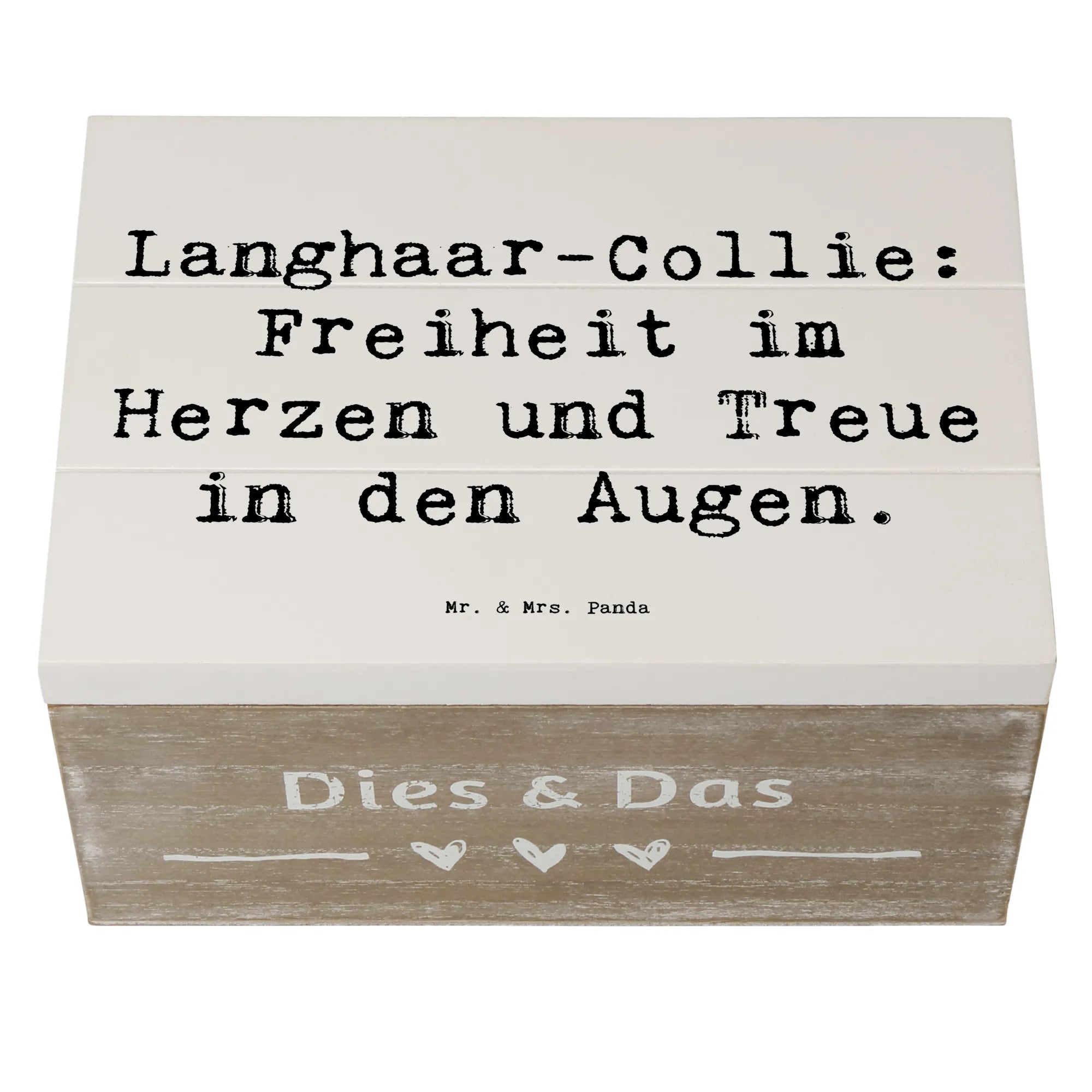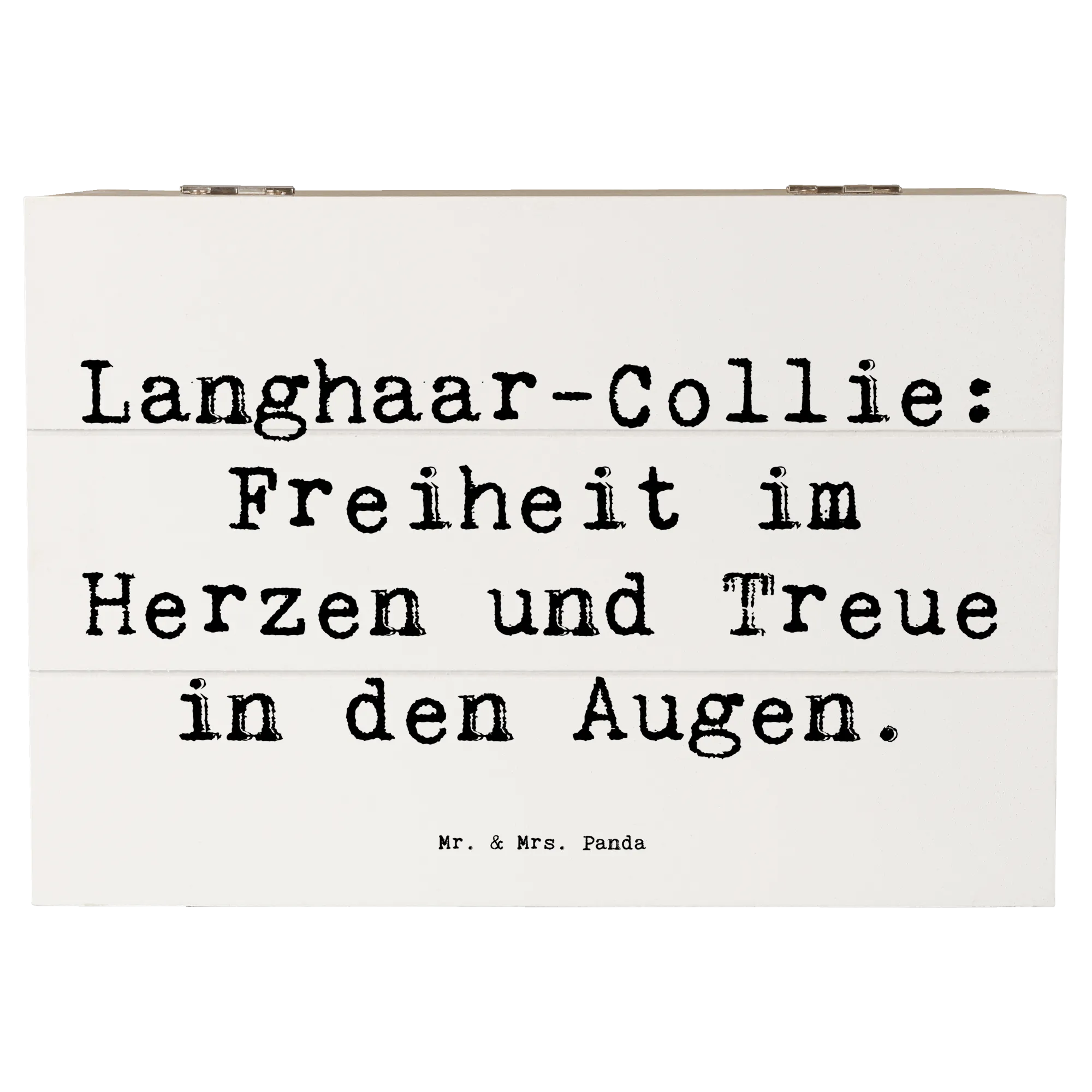 Wooden chest Saying Langhaar-Collie: Freiheit im Herzen und Treue in den Augen. - 22 x 15 cm - White