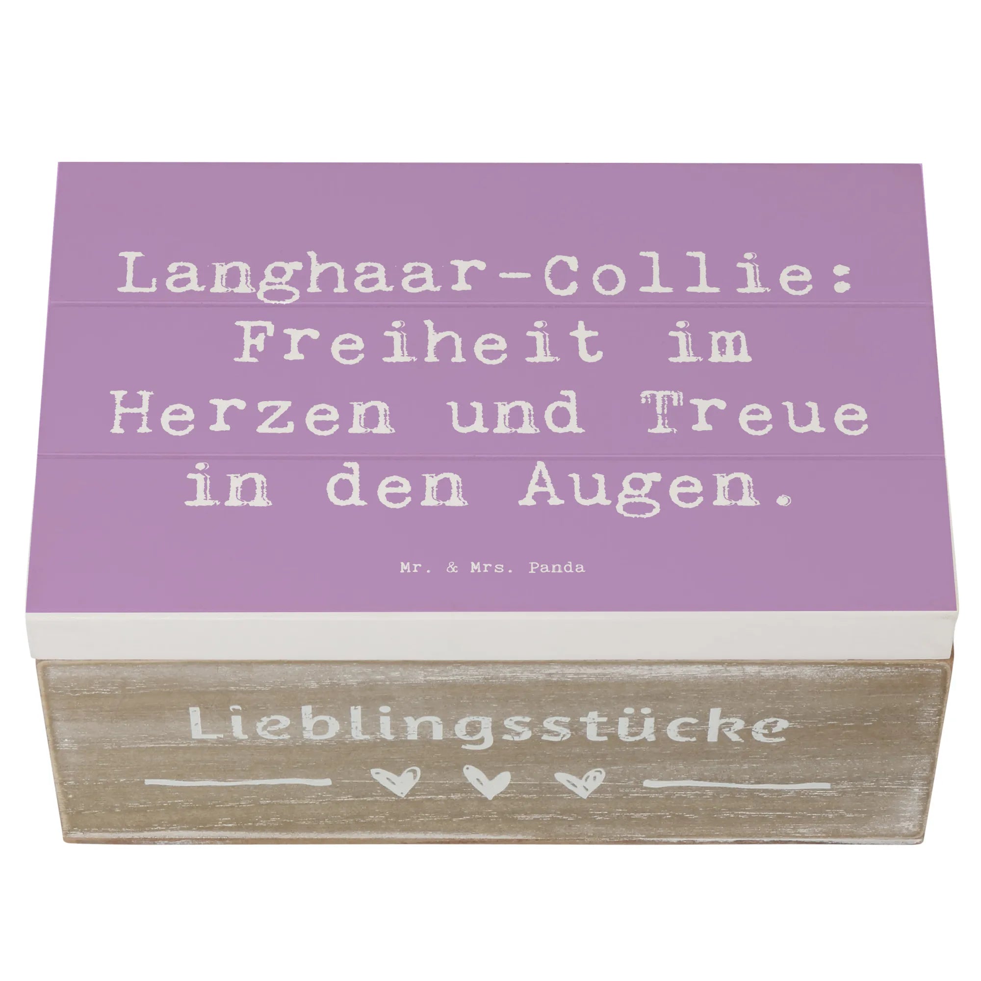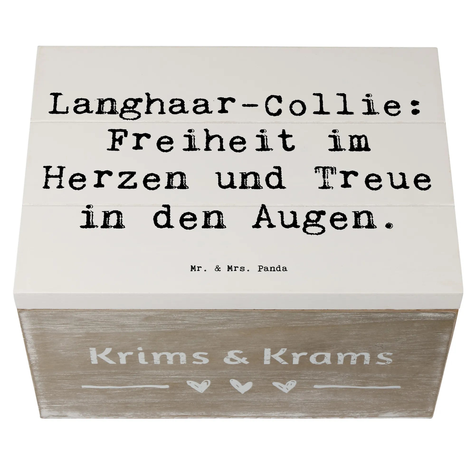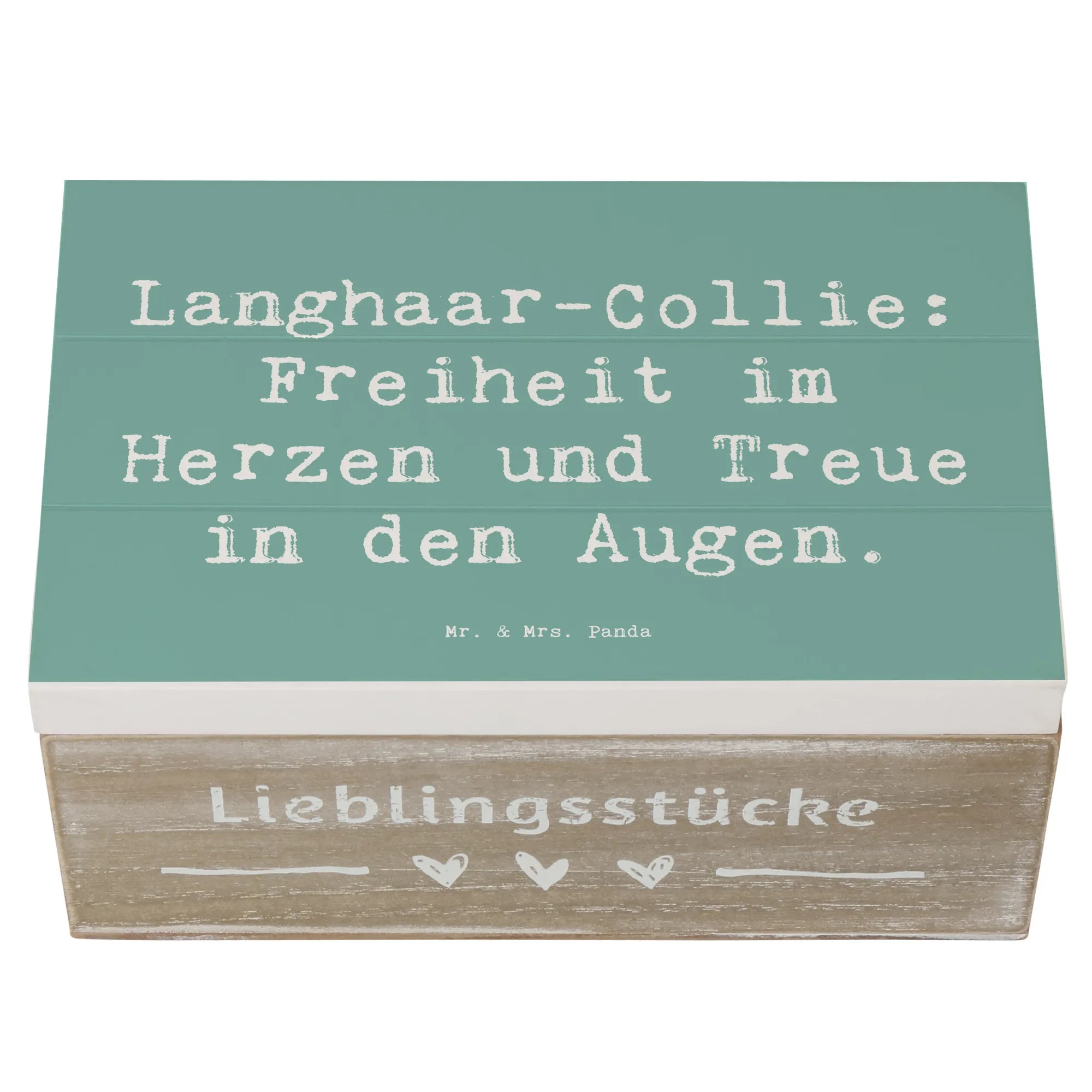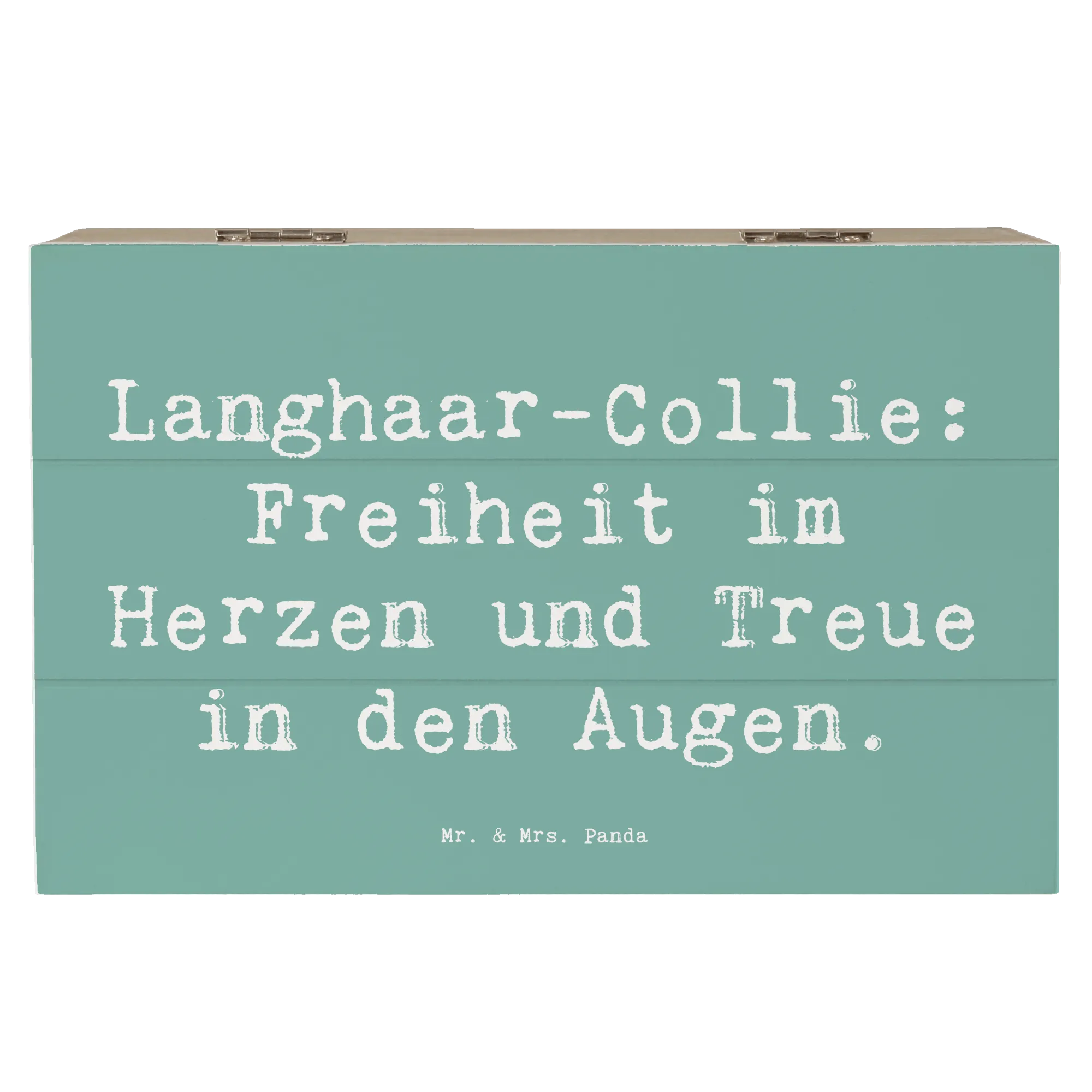 Wooden chest Saying Langhaar-Collie: Freiheit im Herzen und Treue in den Augen. - 22 x 15 cm - White