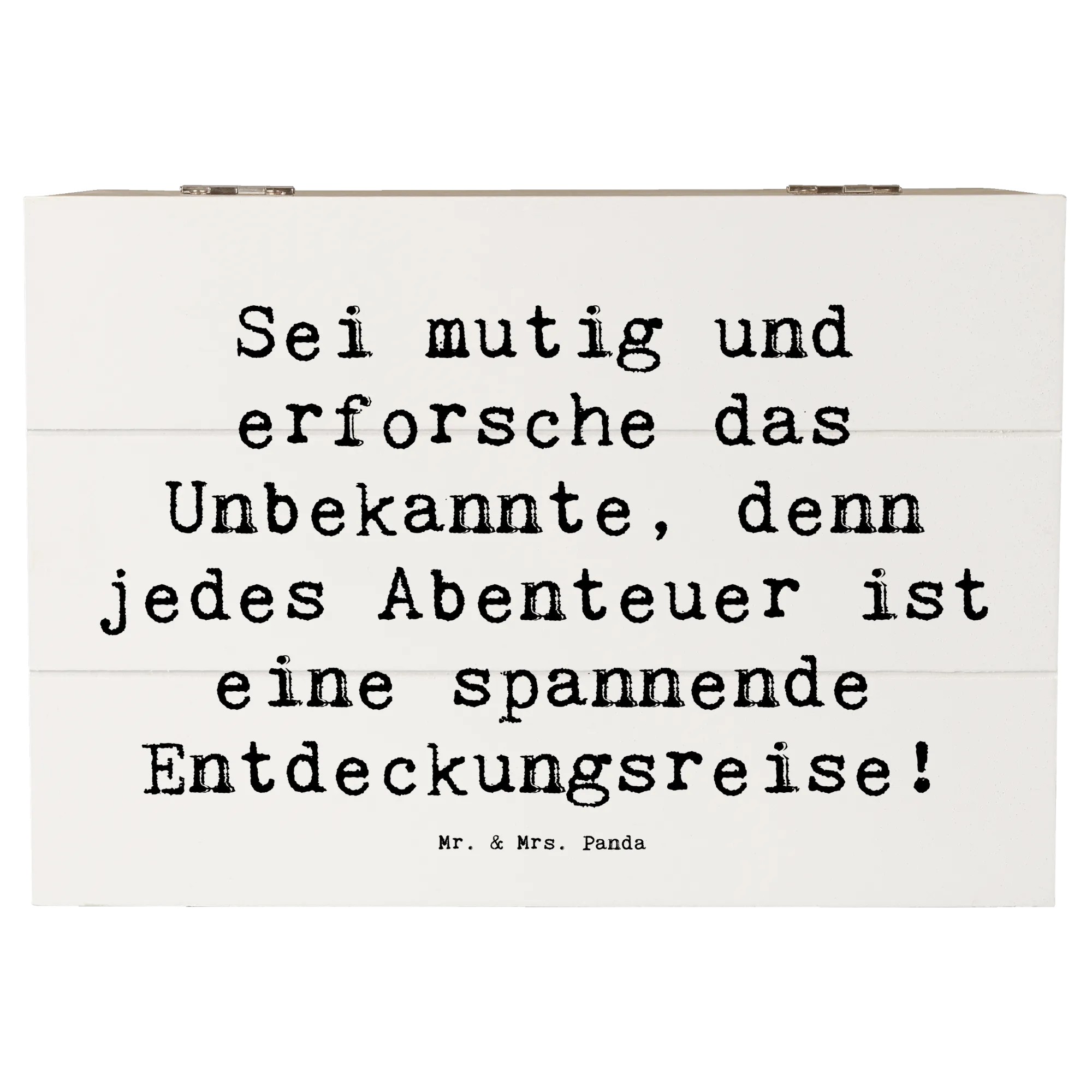 Wooden chest Saying Sei mutig und erforsche das Unbekannte, denn jedes Abenteuer ist eine spannende Entdeckungsreise! - 22 x 15 cm - White
