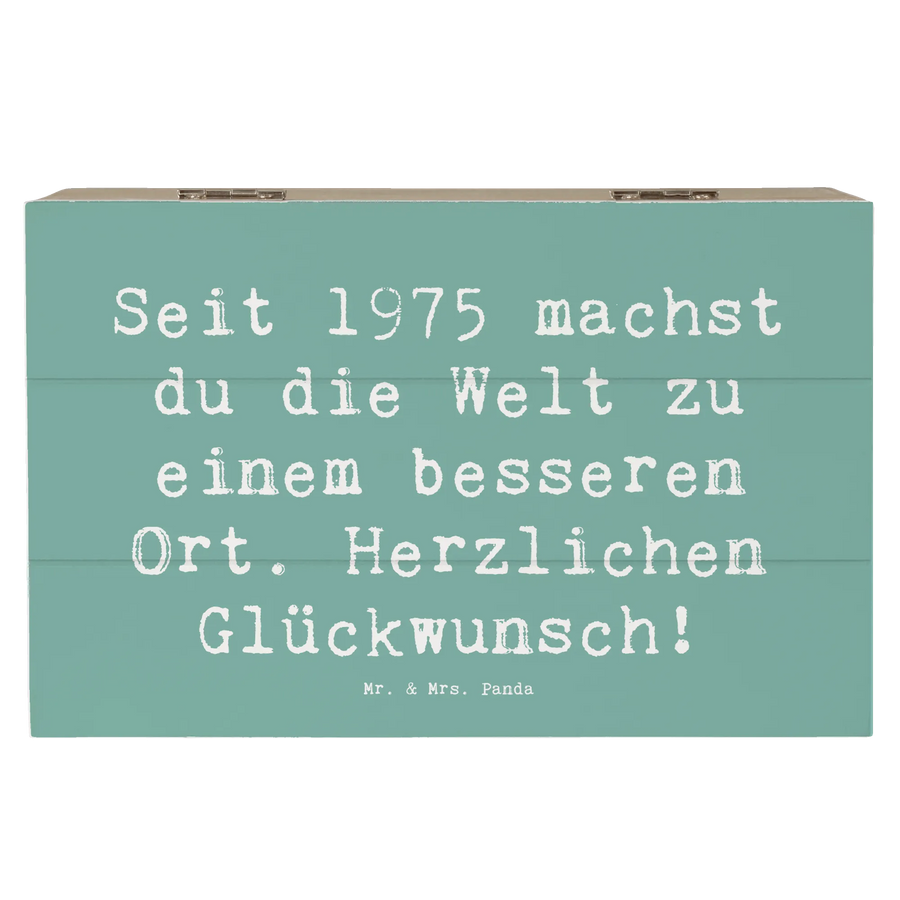 Wooden chest Saying Seit 1975 machst du die Welt zu einem besseren Ort. Herzlichen Glückwunsch! - 19 x 12 cm - Sea Breeze