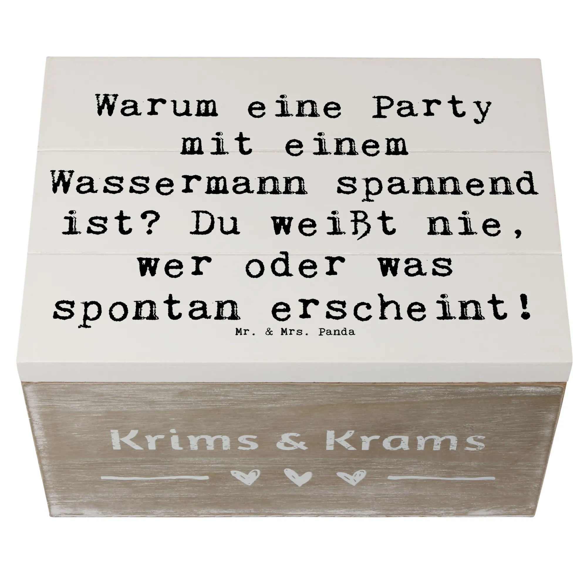 Wooden chest Saying Warum eine Party mit einem Wassermann spannend ist? Du weißt nie, wer oder was spontan erscheint! - 22 x 15 cm - White