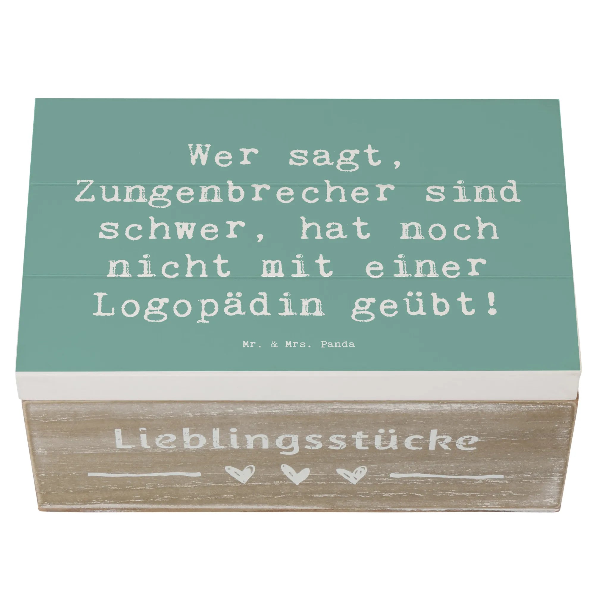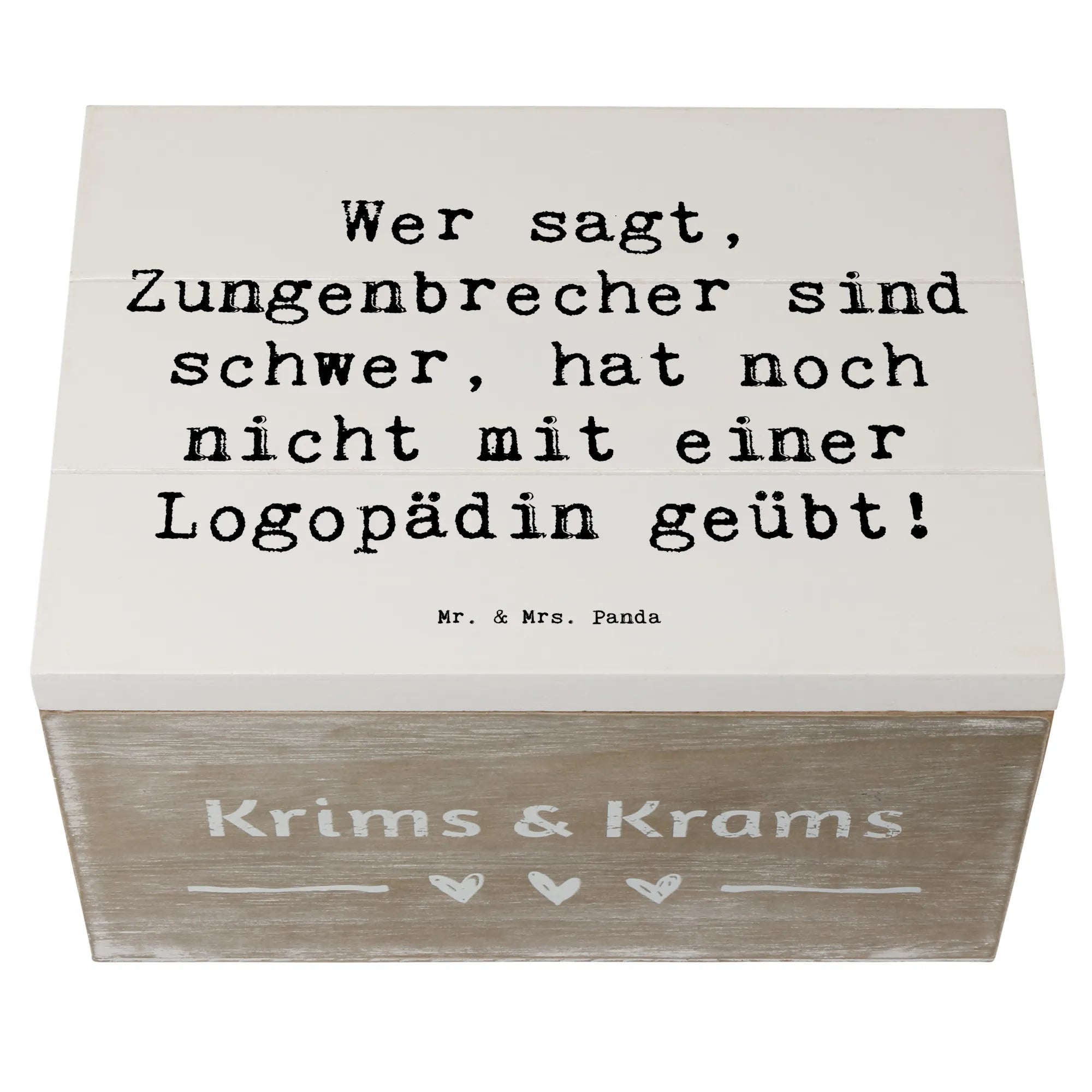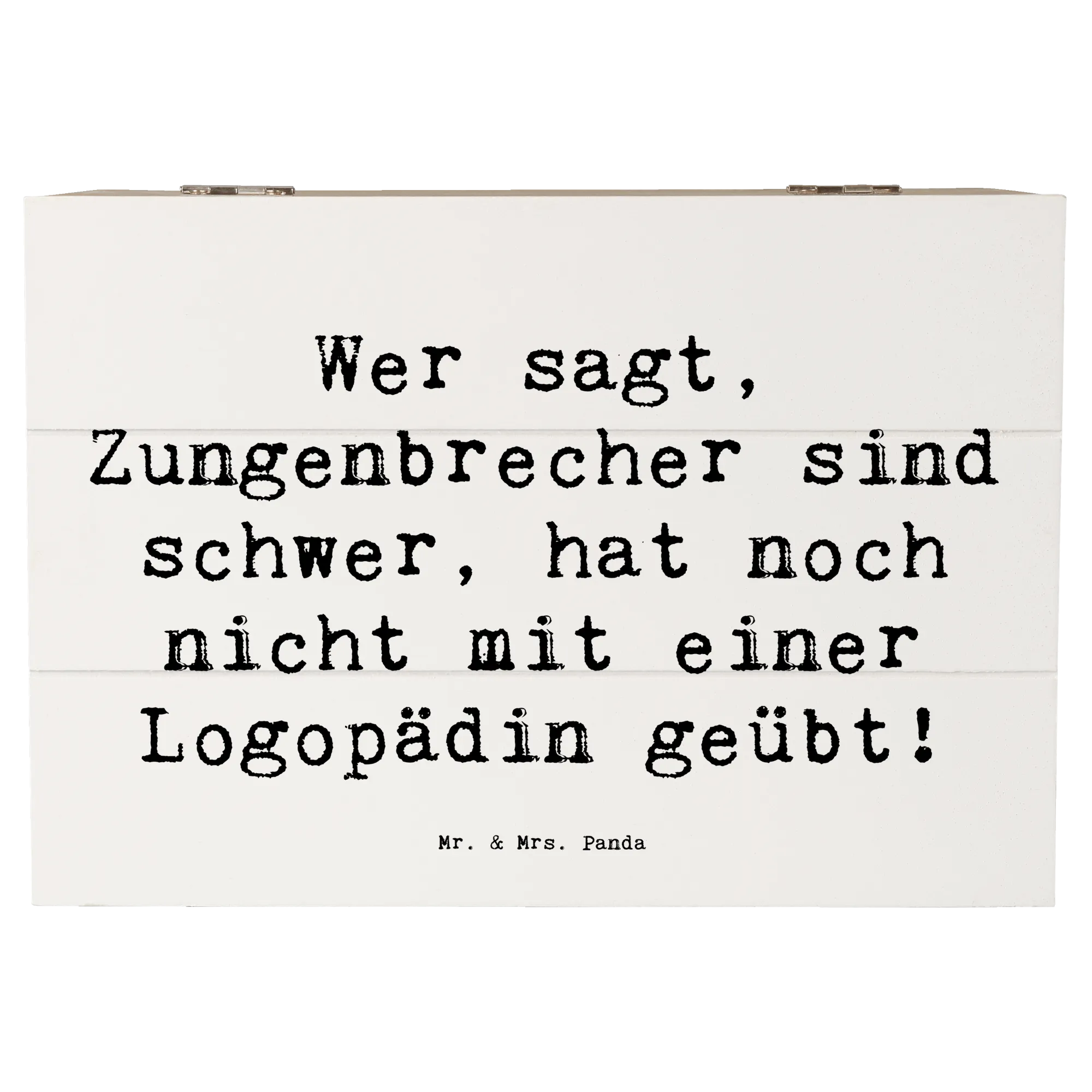 Wooden chest Saying Wer sagt, Zungenbrecher sind schwer, hat noch nicht mit einer Logopädin geübt! - 22 x 15 cm - White