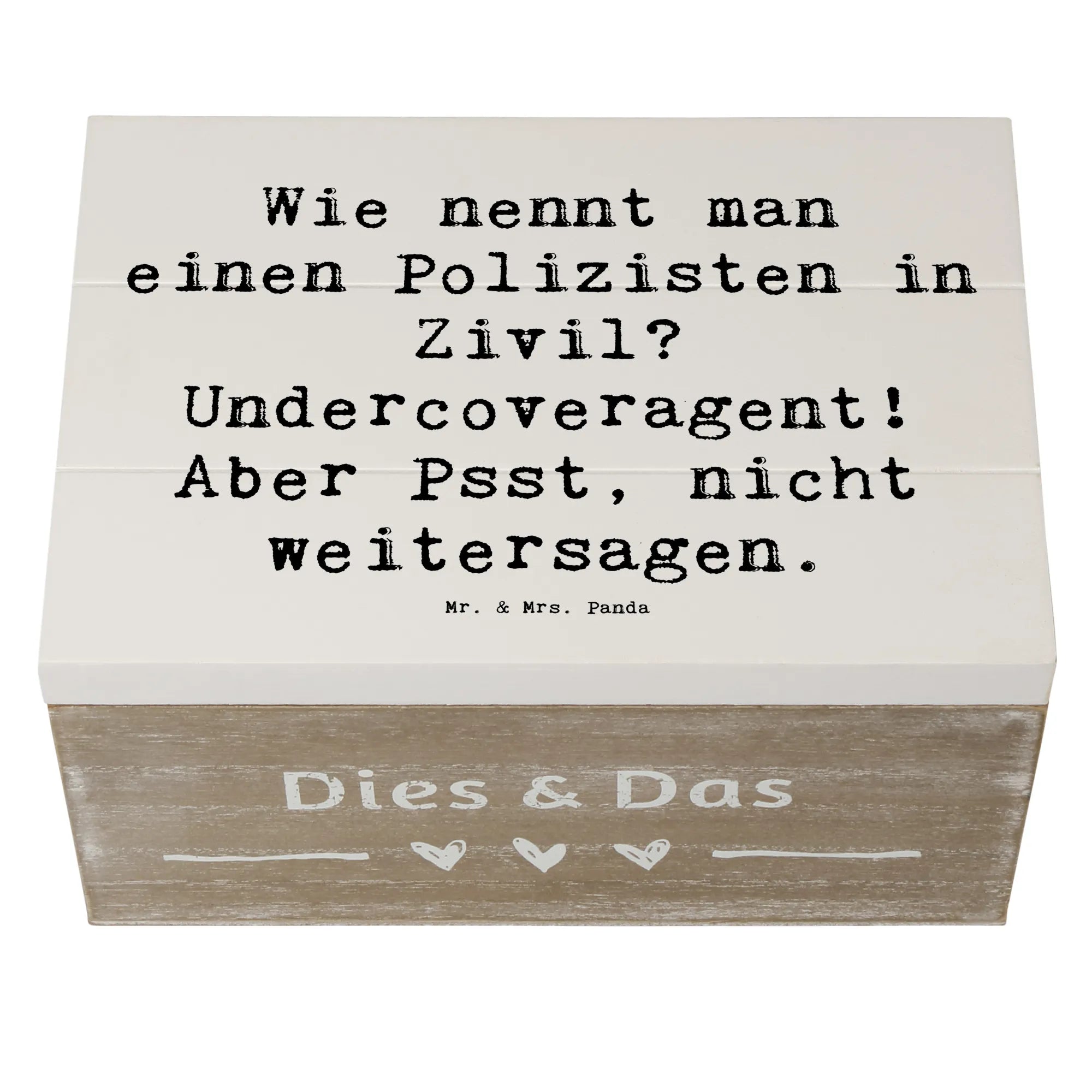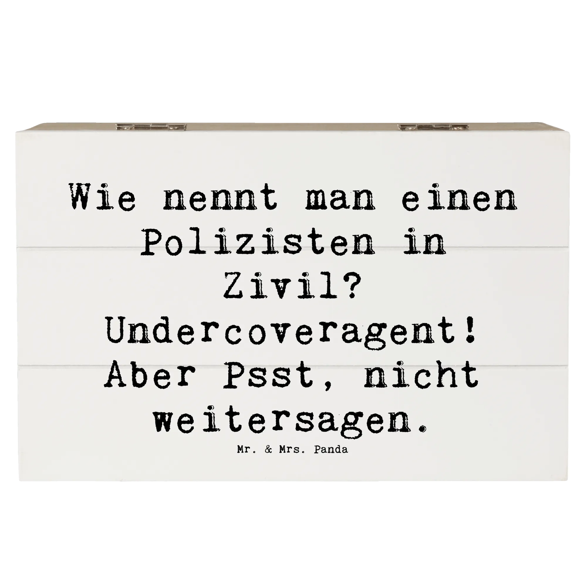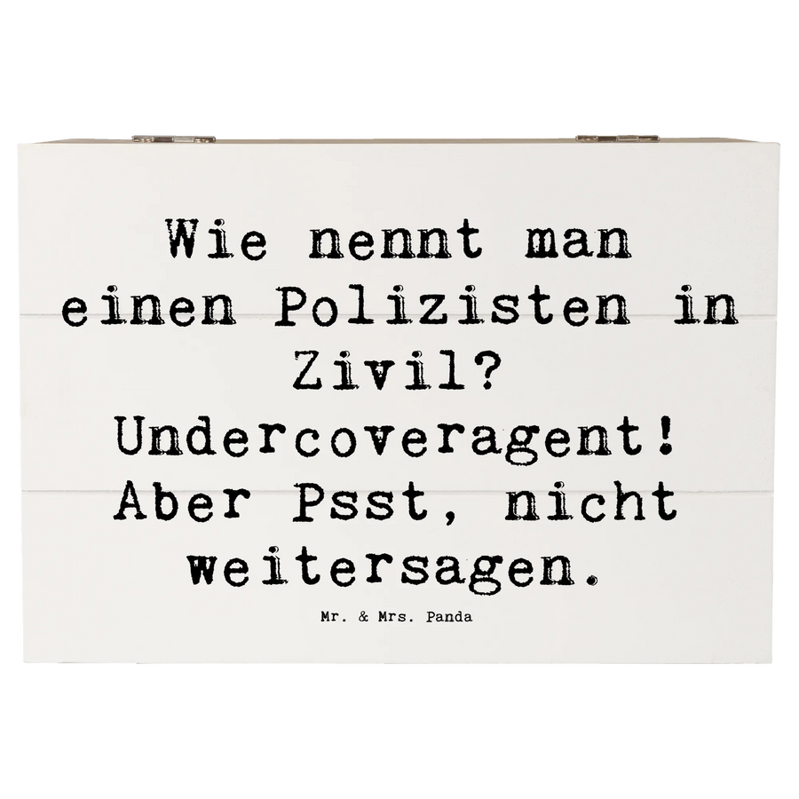 Wooden chest Saying Wie nennt man einen Polizisten in Zivil? Undercoveragent! Aber Psst, nicht weitersagen. - 22 x 15 cm - White