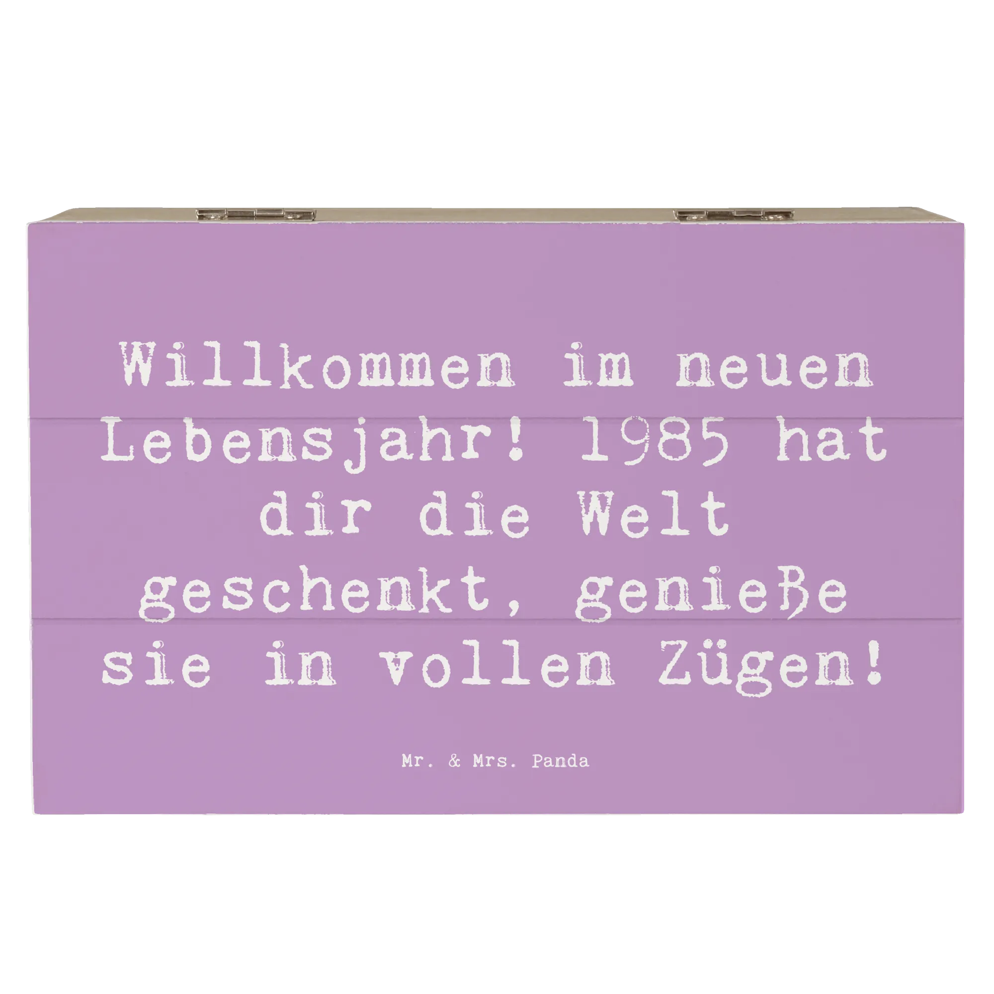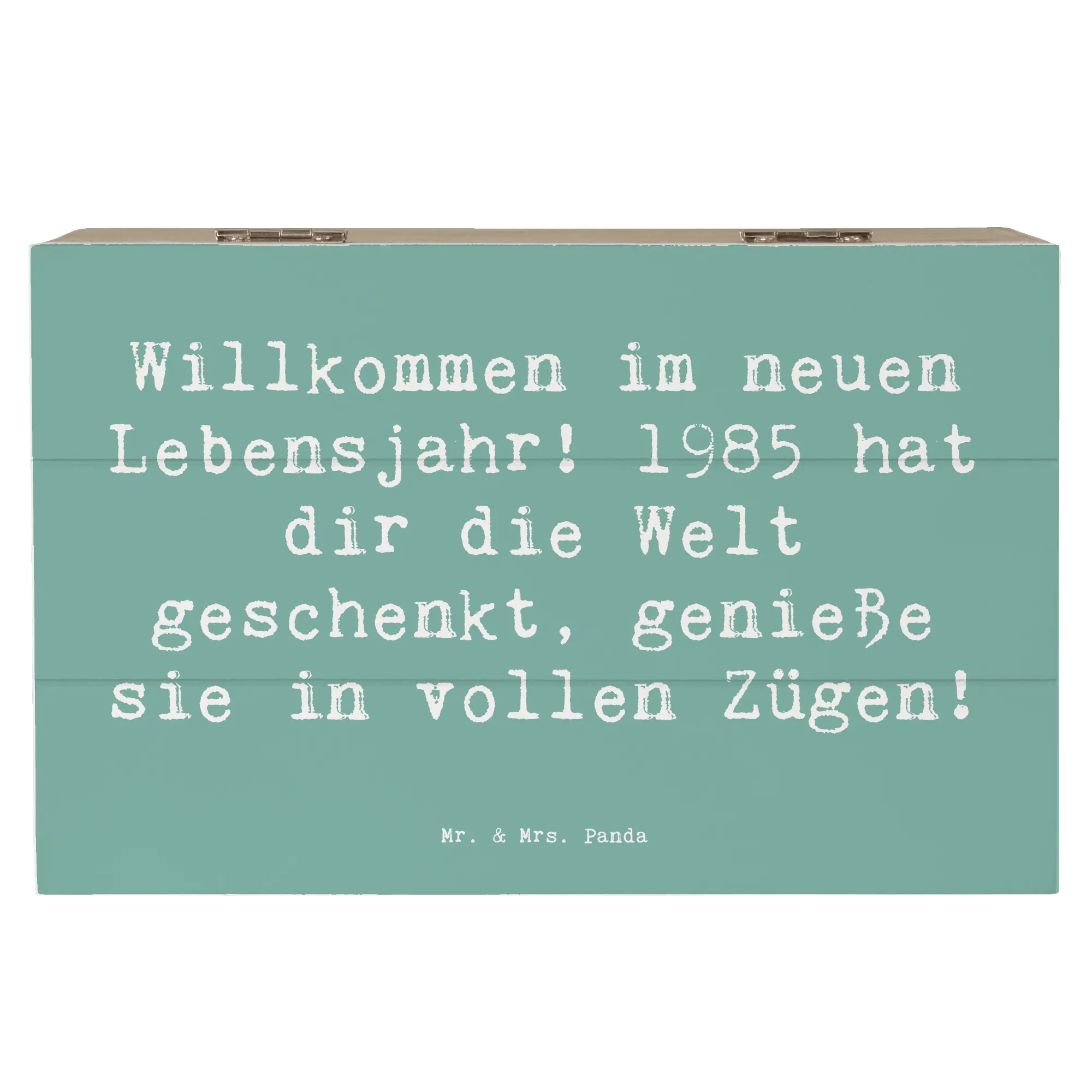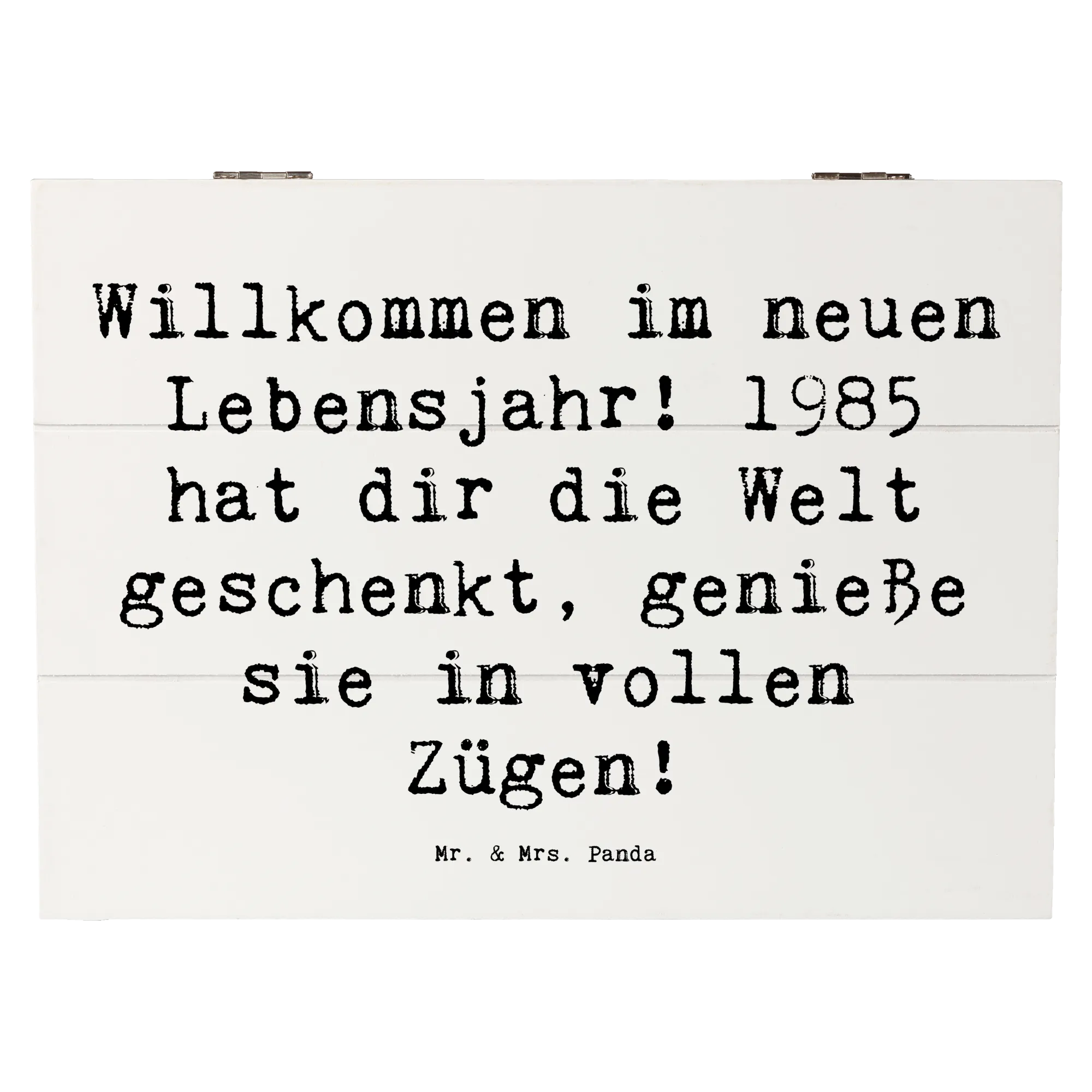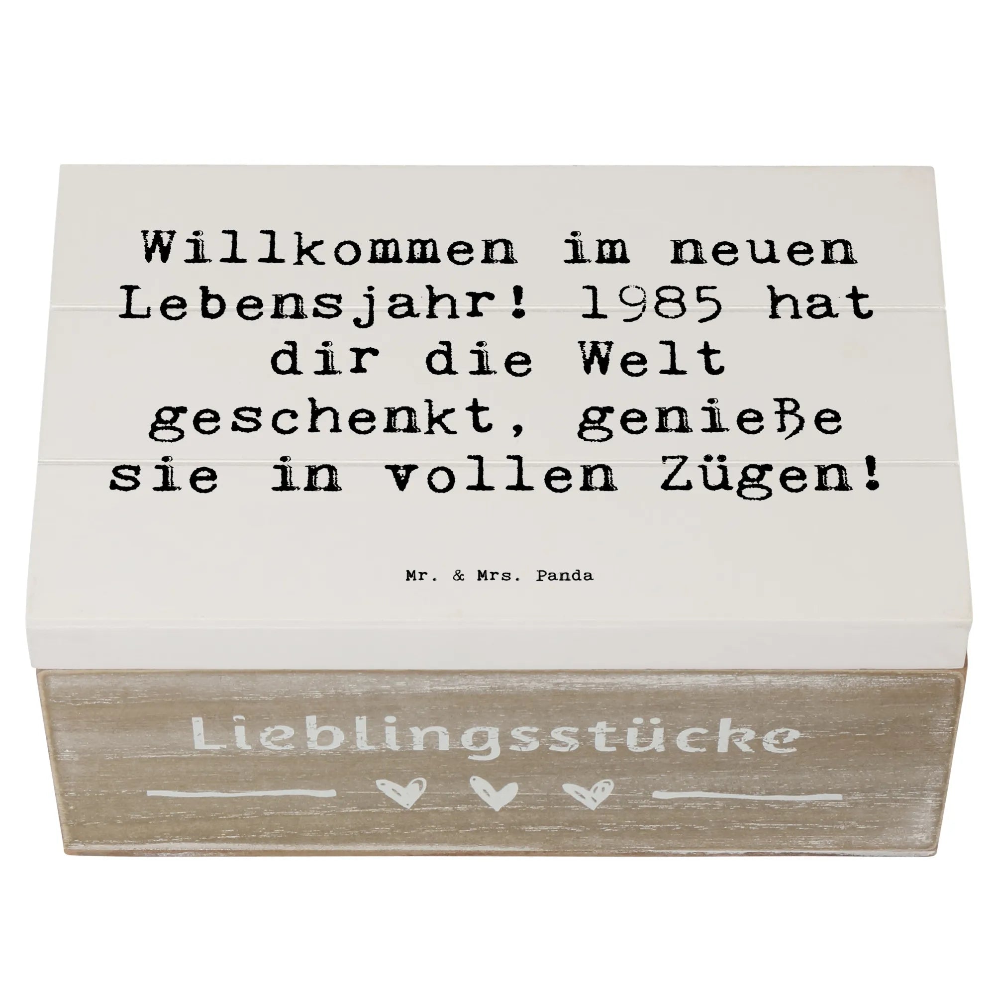 Wooden chest Saying Willkommen im neuen Lebensjahr! 1985 hat dir die Welt geschenkt, genieße sie in vollen Zügen! - 22 x 15 cm - White