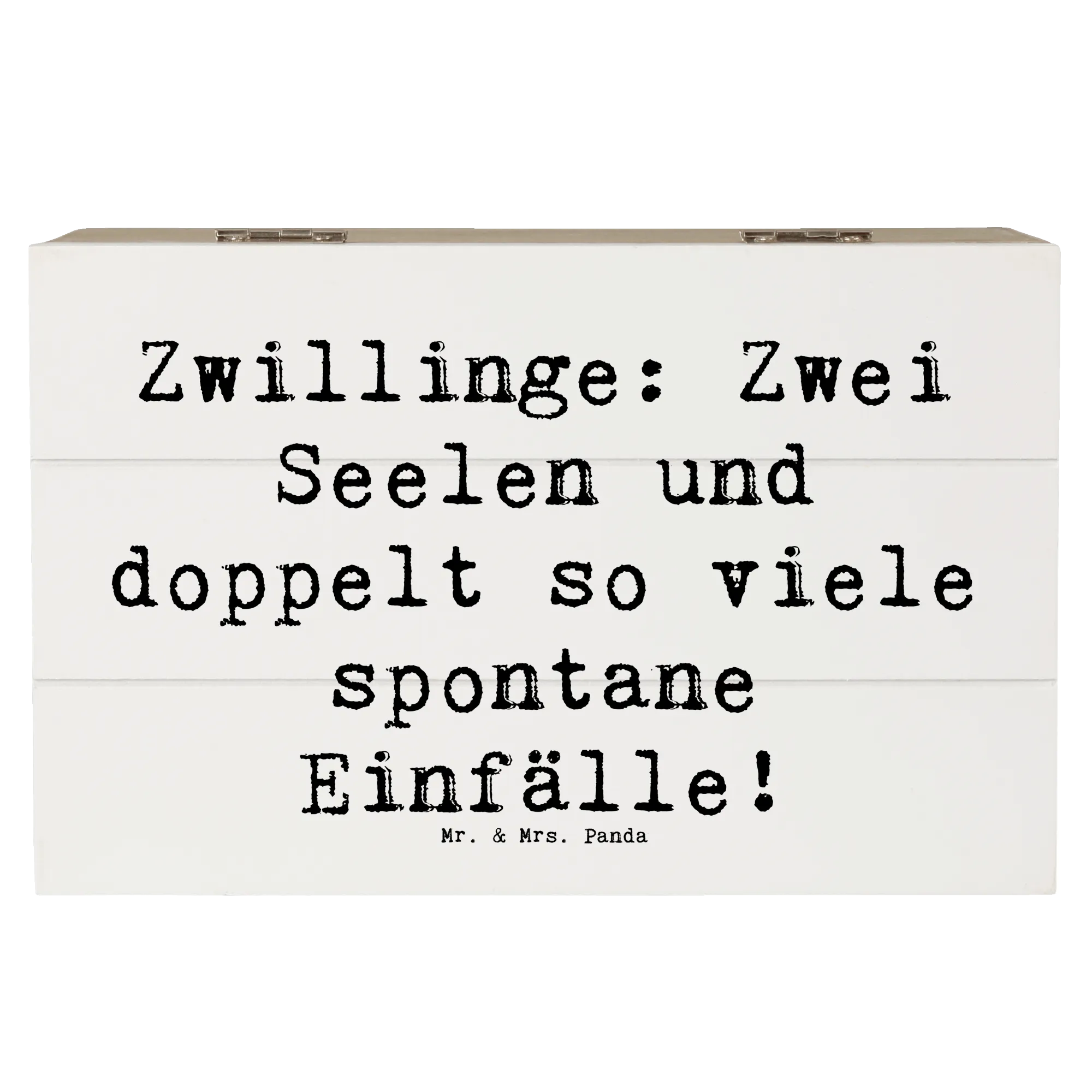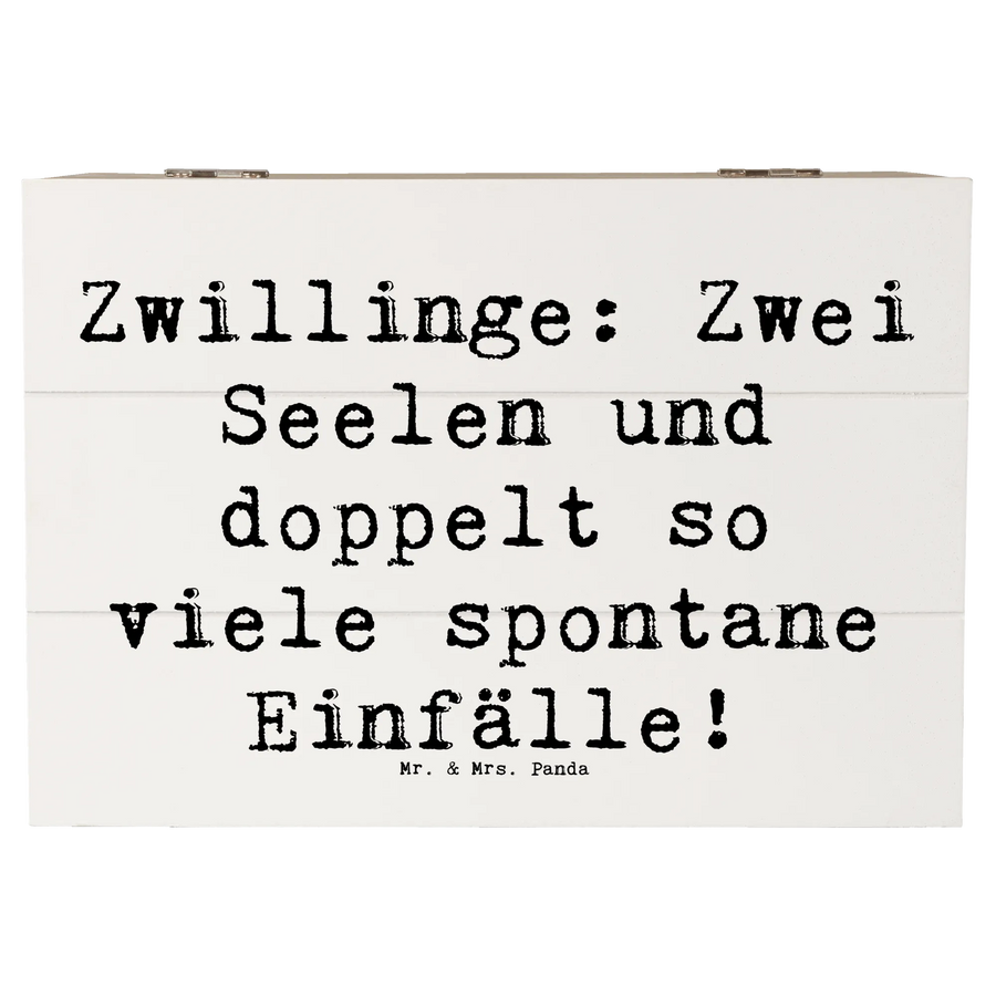 Wooden chest Saying Zwillinge: Zwei Seelen und doppelt so viele spontane Einfälle! - 22 x 15 cm - White