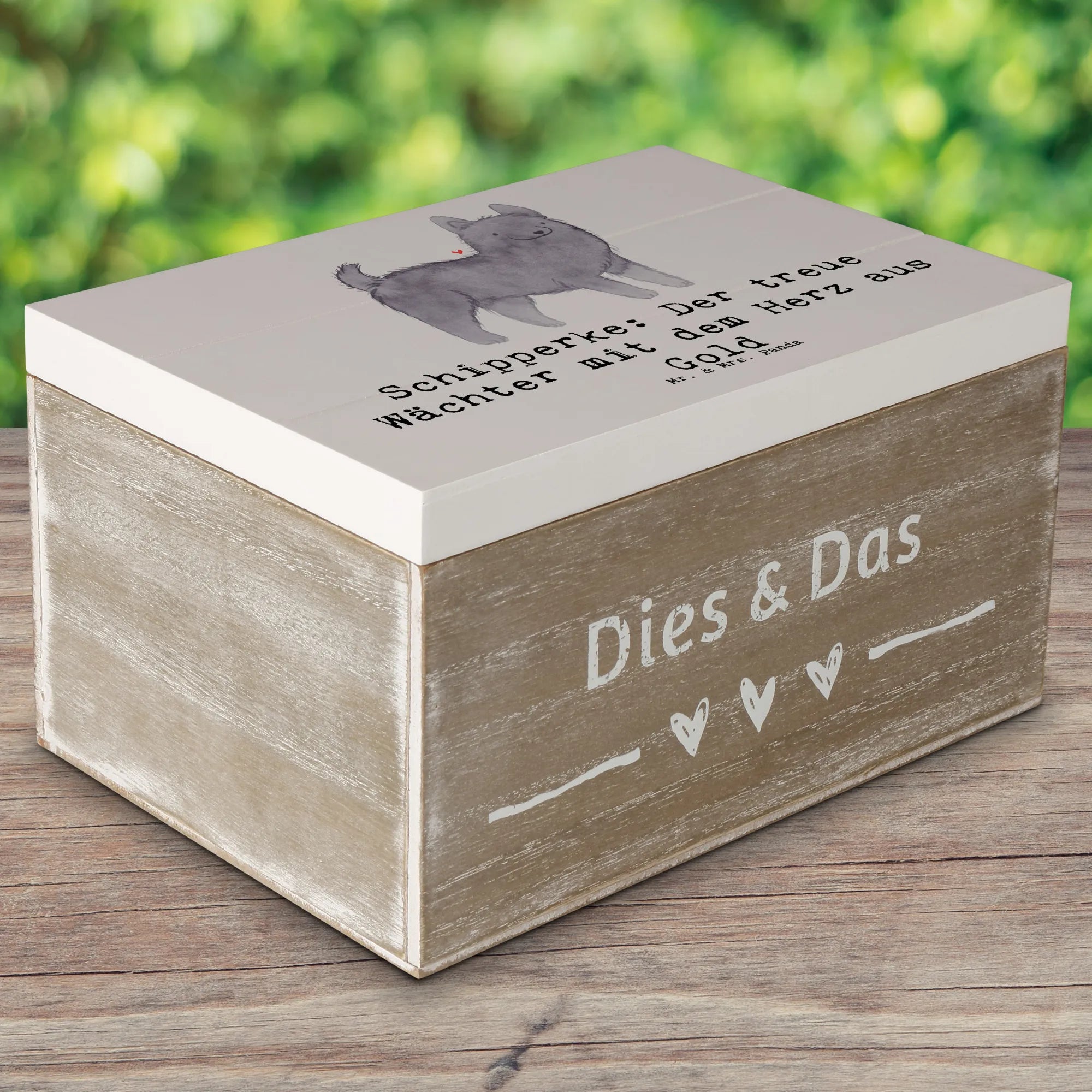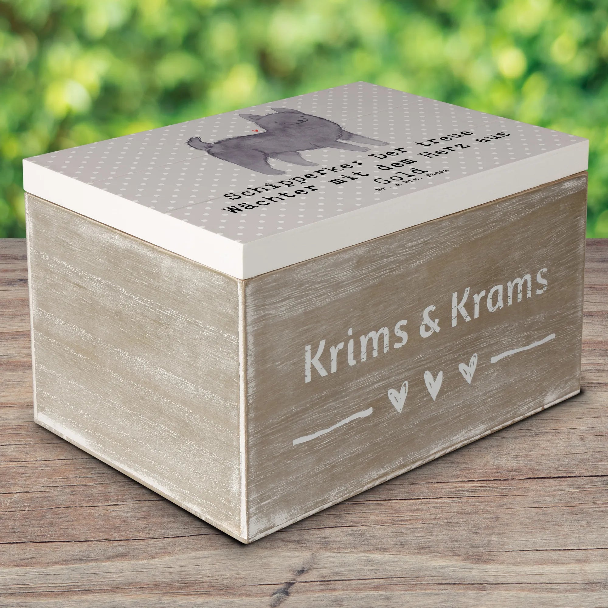 Wooden chest Schipperke: Der treue Wächter mit dem Herz aus Gold - 22 x 15 cm - Pastel Gray