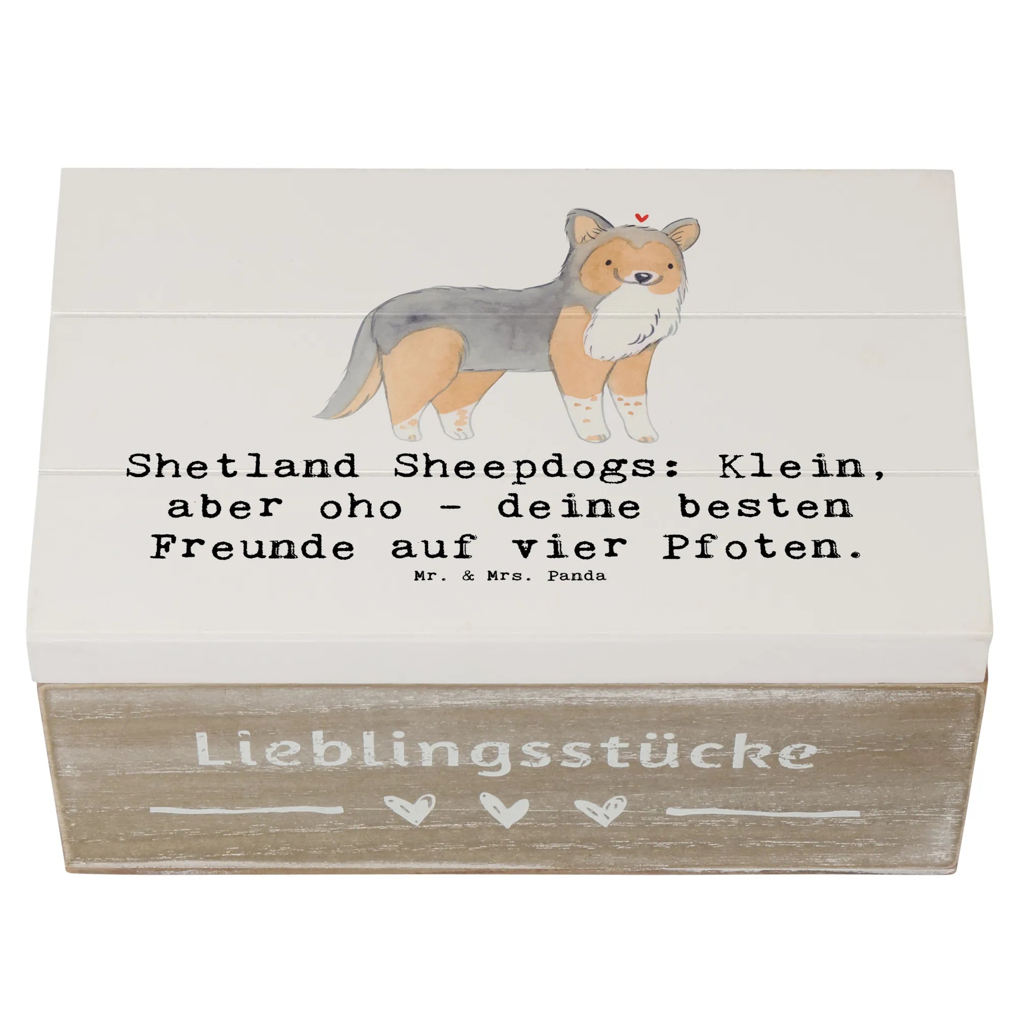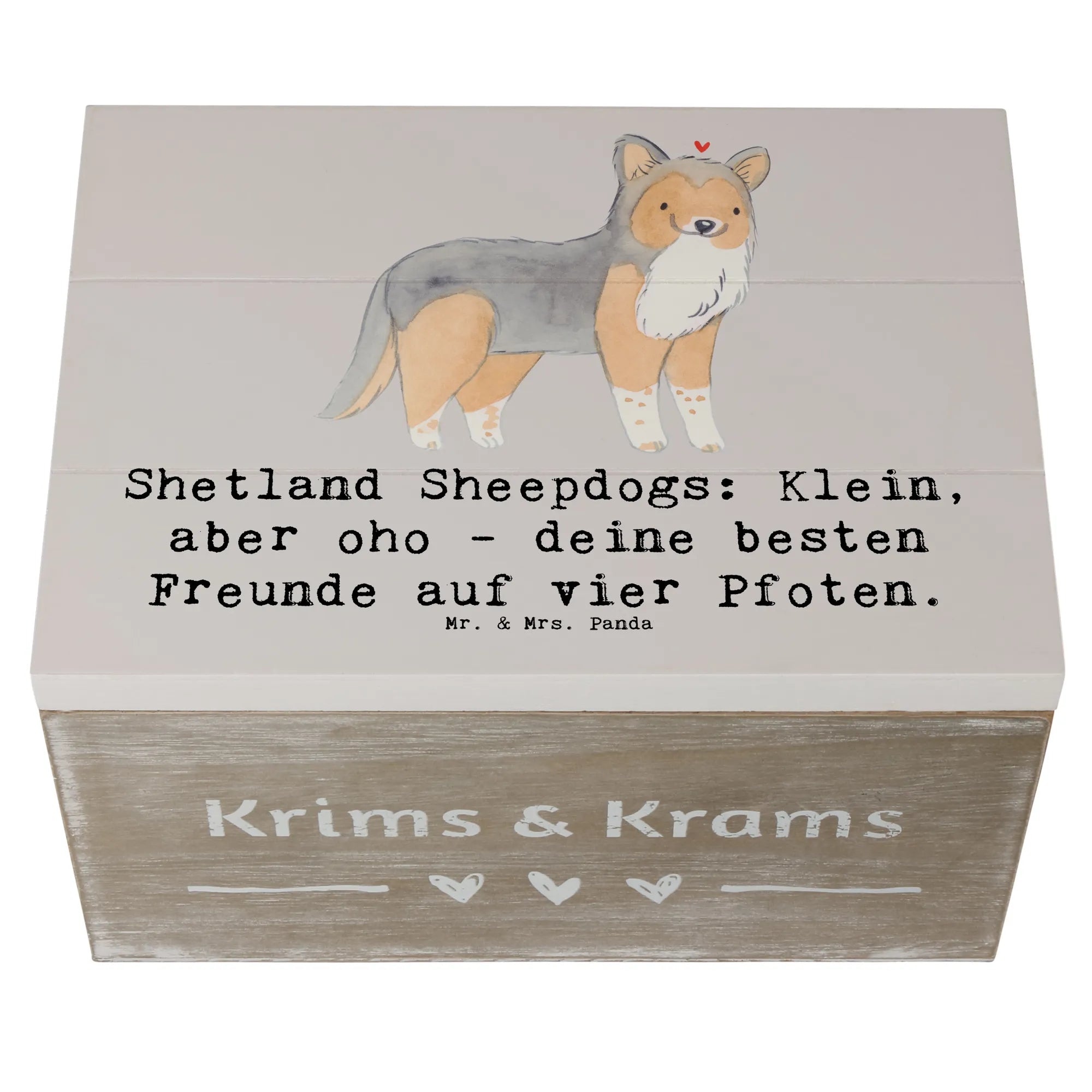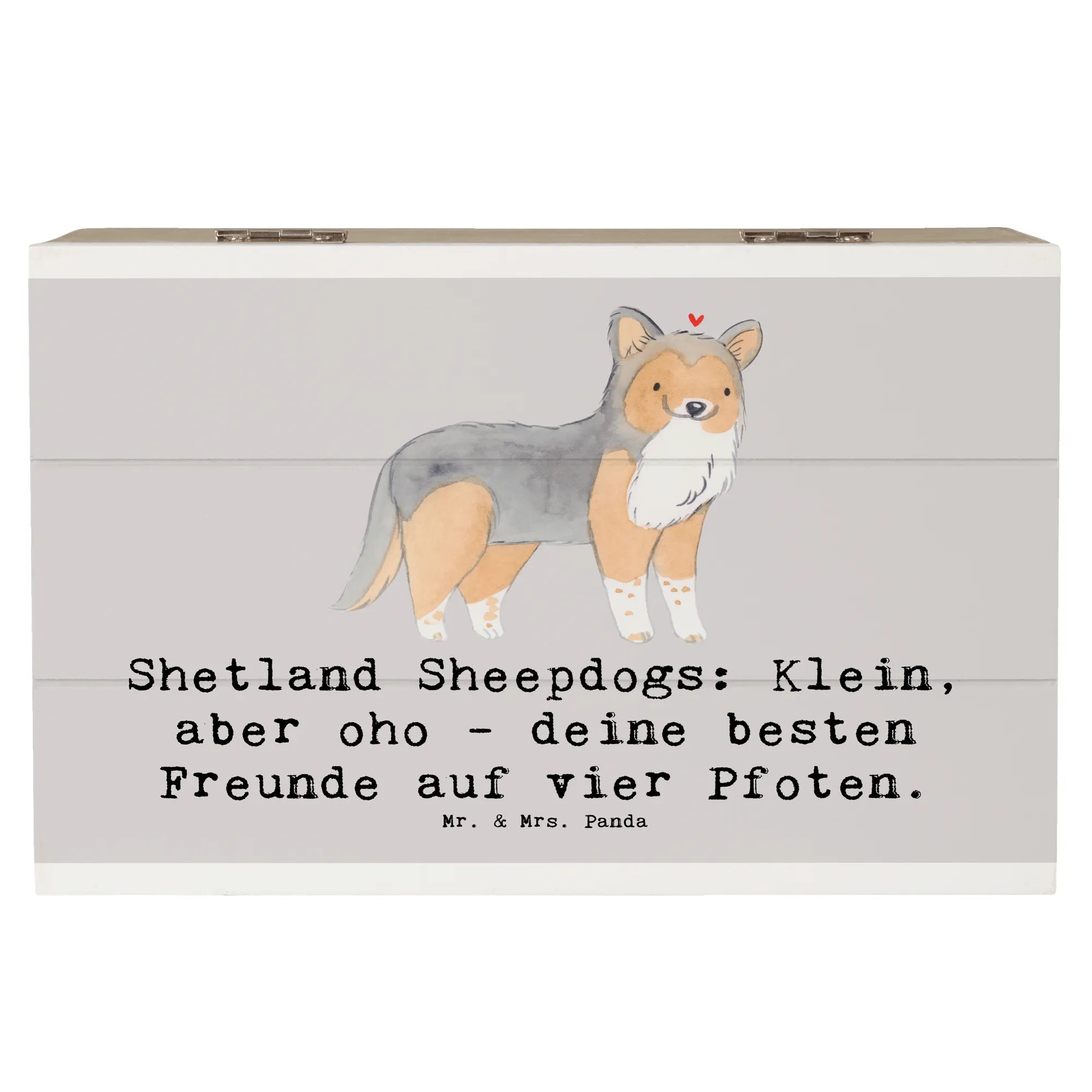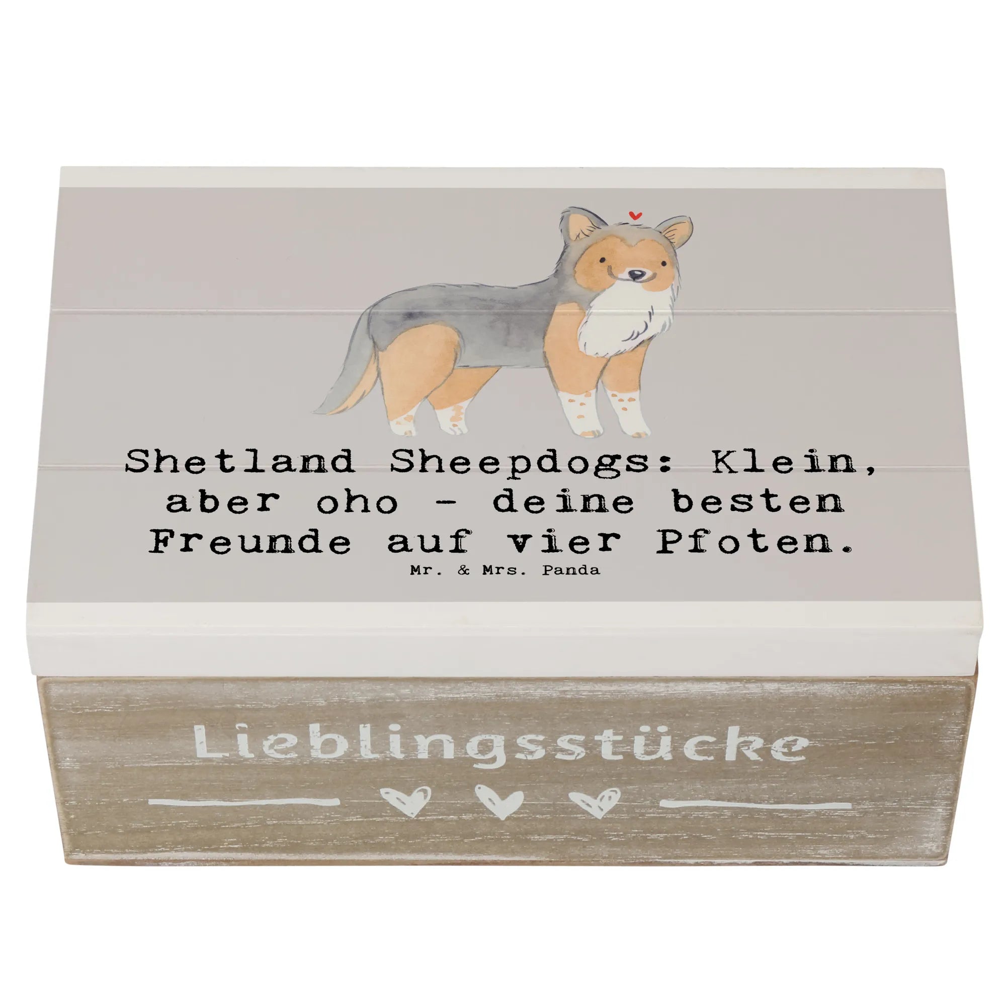 Wooden chest Shetland Sheepdogs: Klein, aber oho - deine besten Freunde auf vier Pfoten. - 19 x 12 cm - Pastel Gray