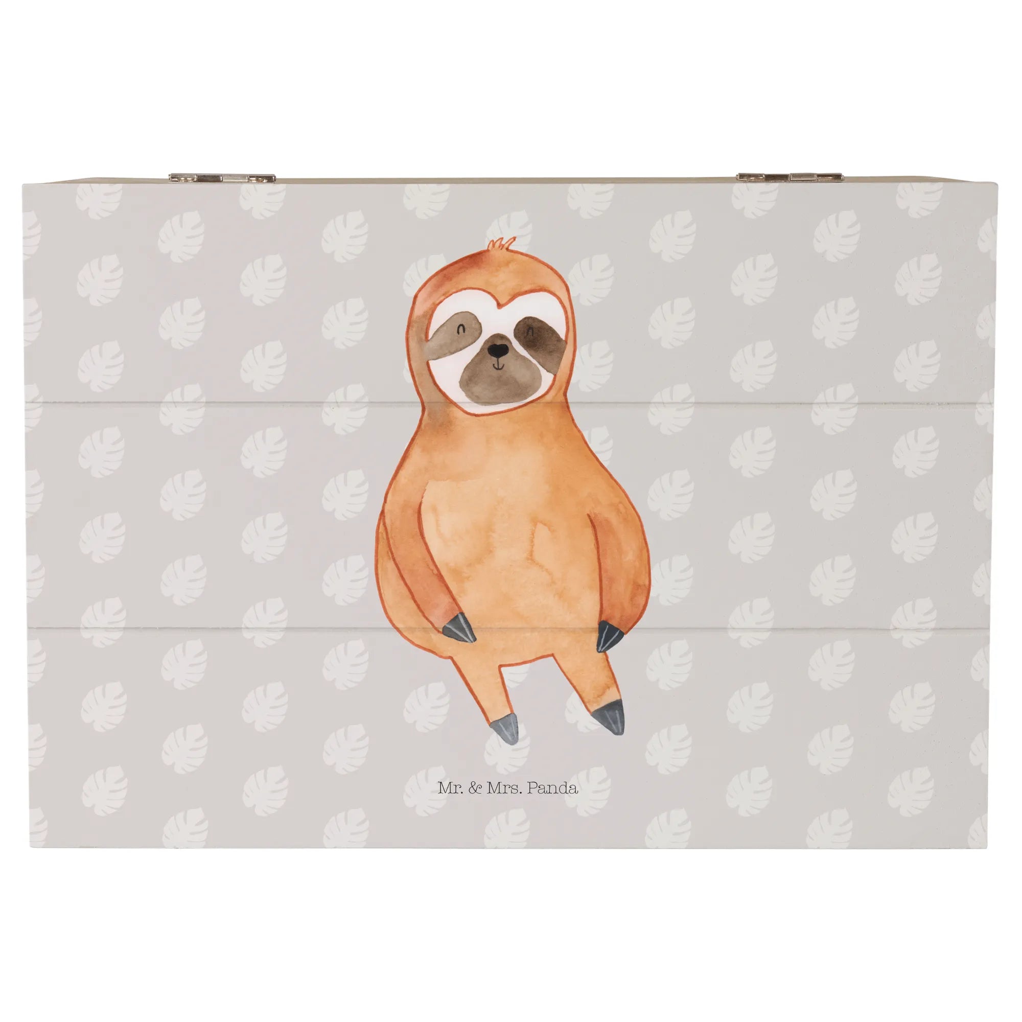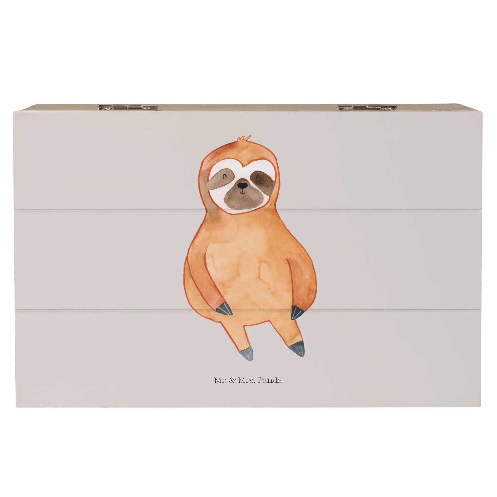 Introducing the Sloth Satisfied Wooden Chest from the charming Sloth Collection by Mr. & Mrs. Panda! If you're looking for the perfect gift for any sloth lover, this beautiful wooden box is just what you need. Made from premium hardboard, this casket is not only durable but also a delightful storage solution for all those precious memories and treasures. With its subtle grey pastel color and adorable sloth motif, it will surely brighten up any room.