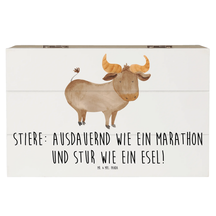 Wooden chest Stiere: Ausdauernd wie ein Marathon und stur wie ein Esel! - 19 x 12 cm - White