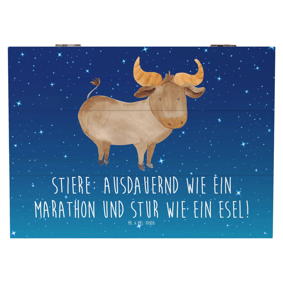 Wooden chest Stiere: Ausdauernd wie ein Marathon und stur wie ein Esel! - 25 x 18 cm - Starry sky blue