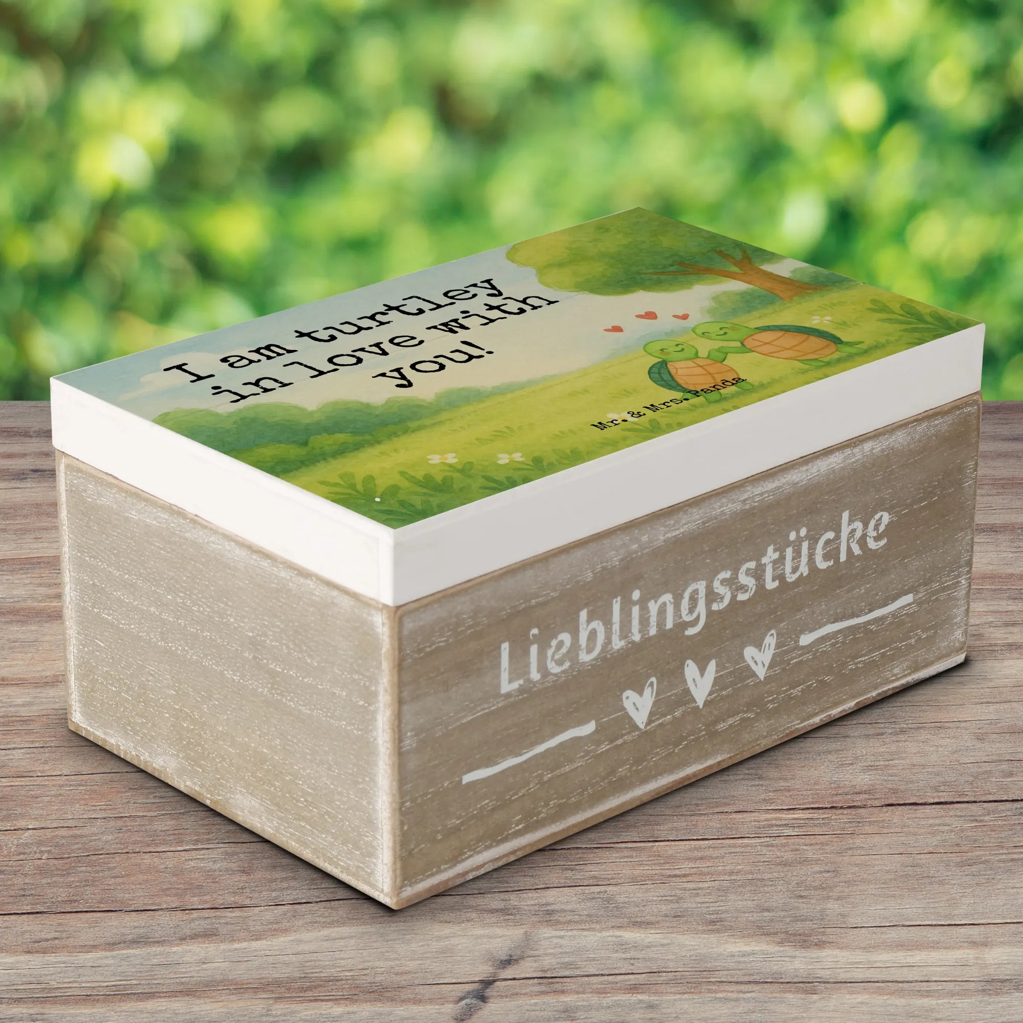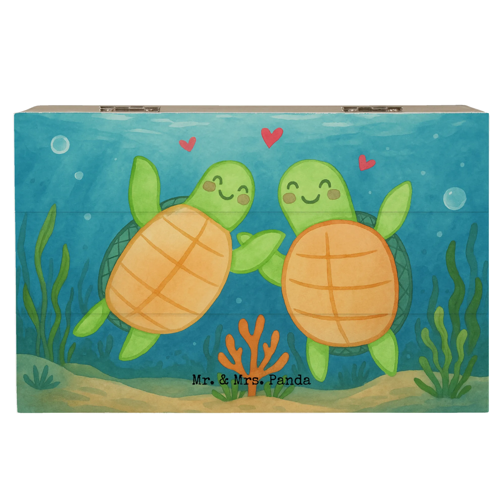 Wooden chest turtles Pair Design - 22 x 15 cm - with a saying