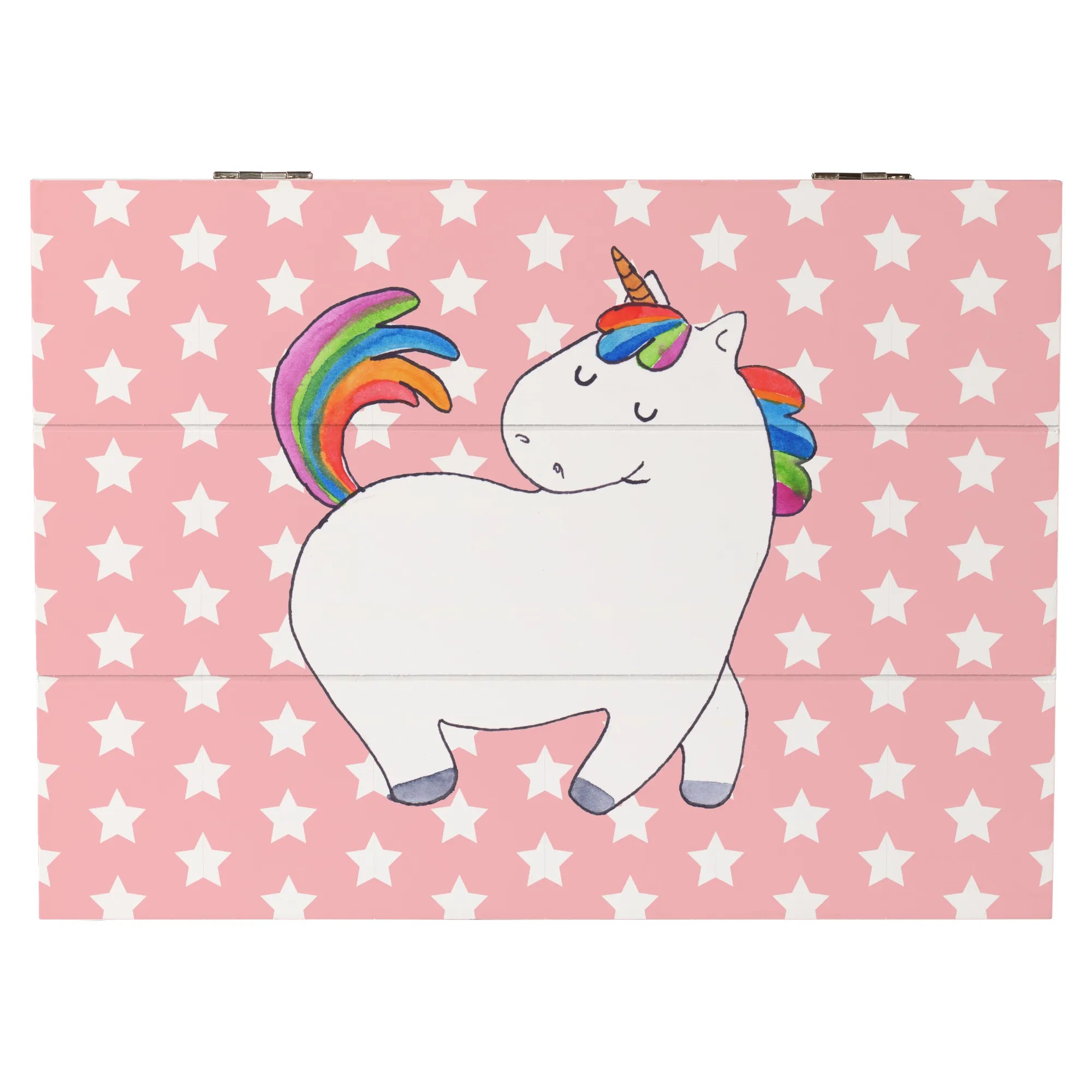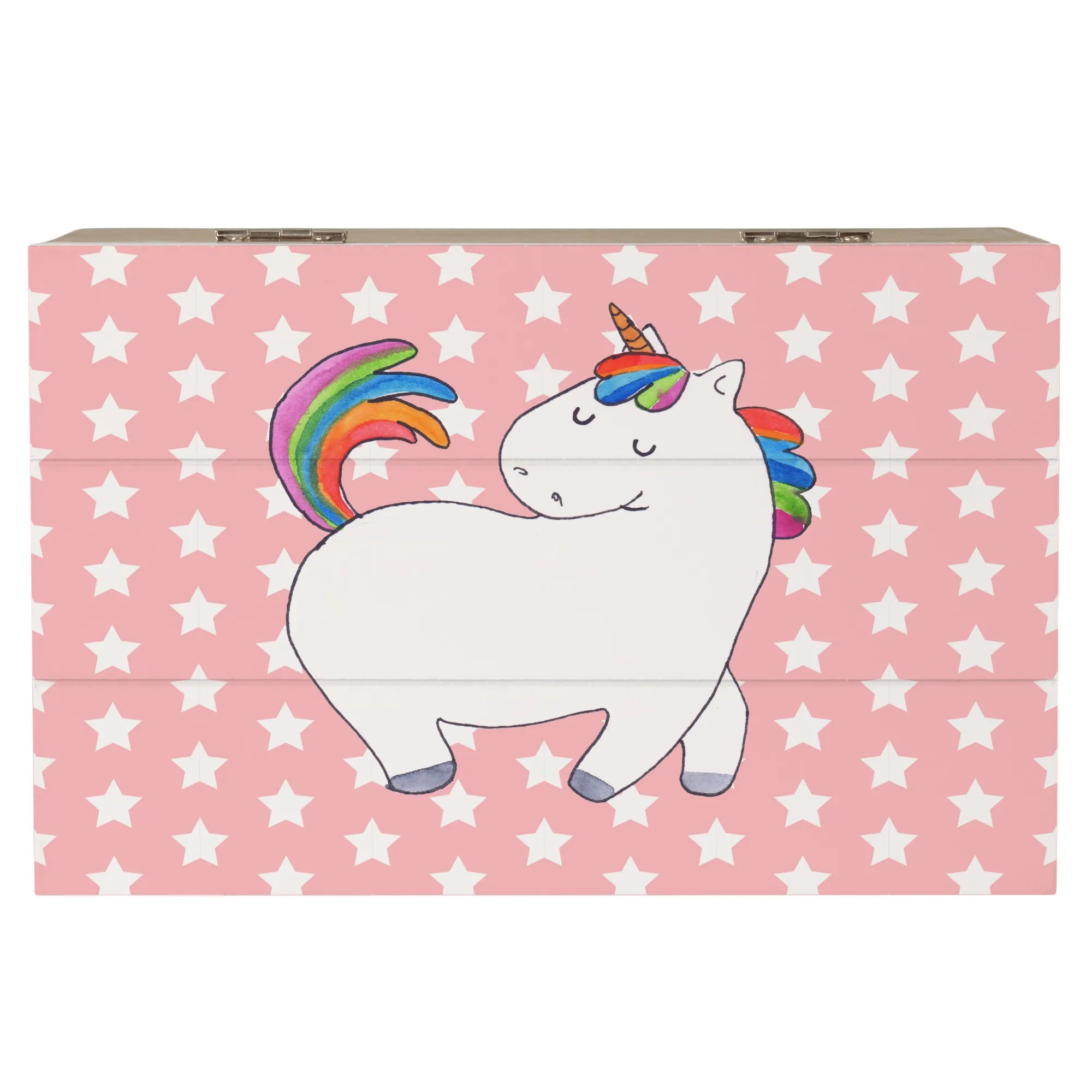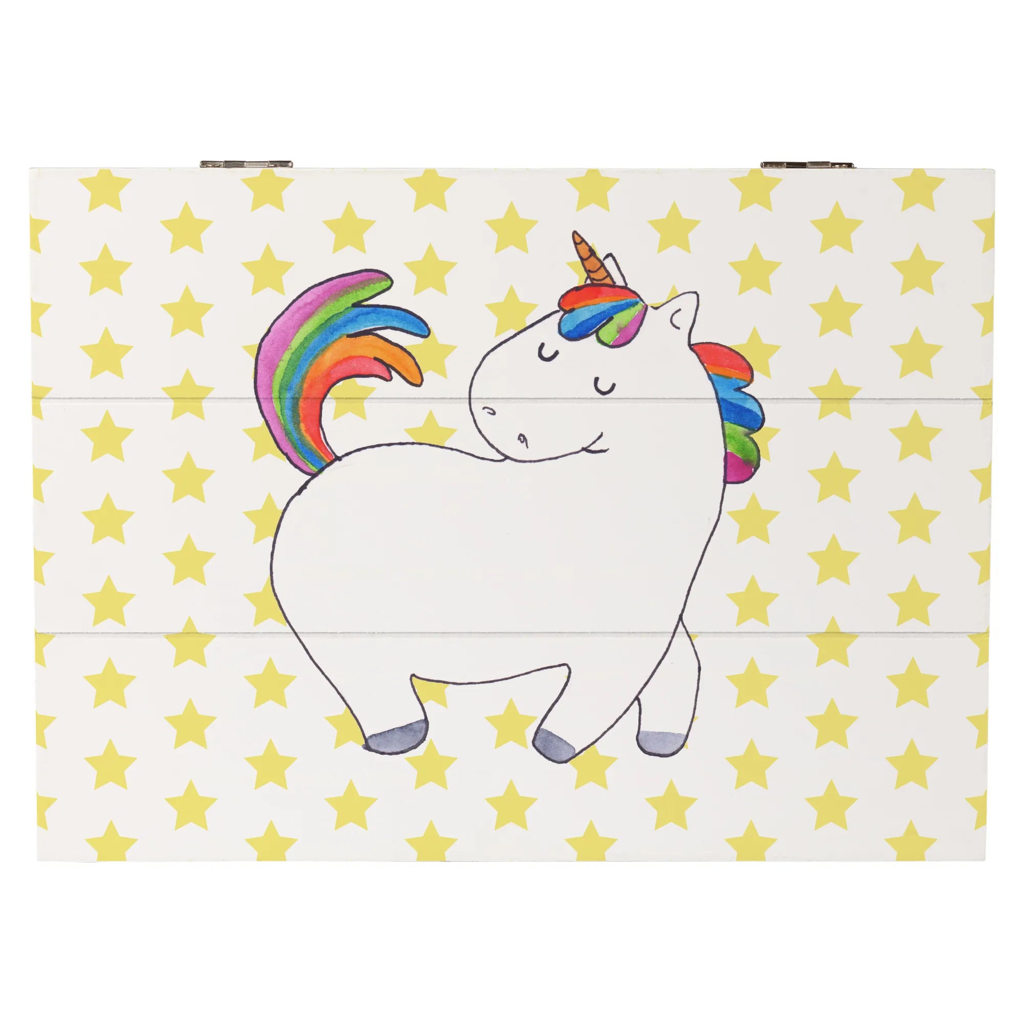 Introducing the perfect gift for unicorn lovers and equestrian enthusiasts alike! The Wooden Chest with the enchanting Unicorn Strutting design from the delightful Unicorn Collection by Mr. & Mrs. Panda is no ordinary storage solution. This beautiful, robust wooden box is designed to not only store your precious treasures but also to add a touch of whimsical charm to any room. With its playful and colorful motif, this chest is guaranteed to spark joy and smiles wherever it's placed.