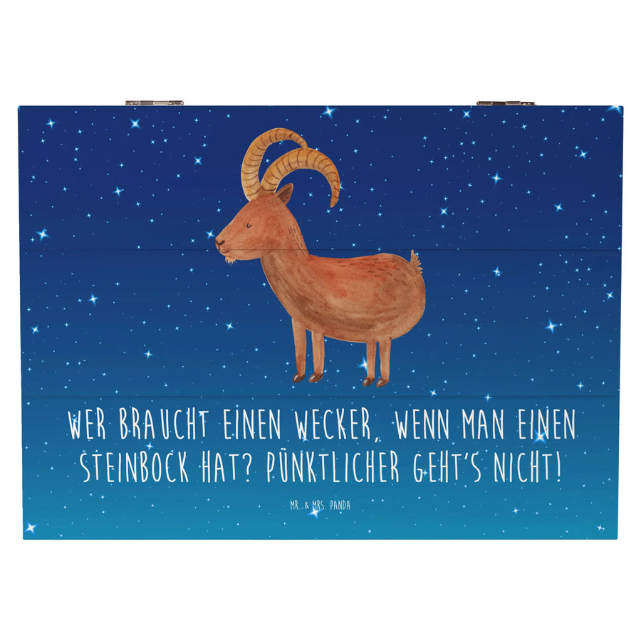 Wooden chest Wer braucht einen Wecker, wenn man einen Steinbock hat? Pünktlicher geht's nicht! - 25 x 18 cm - Starry sky blue