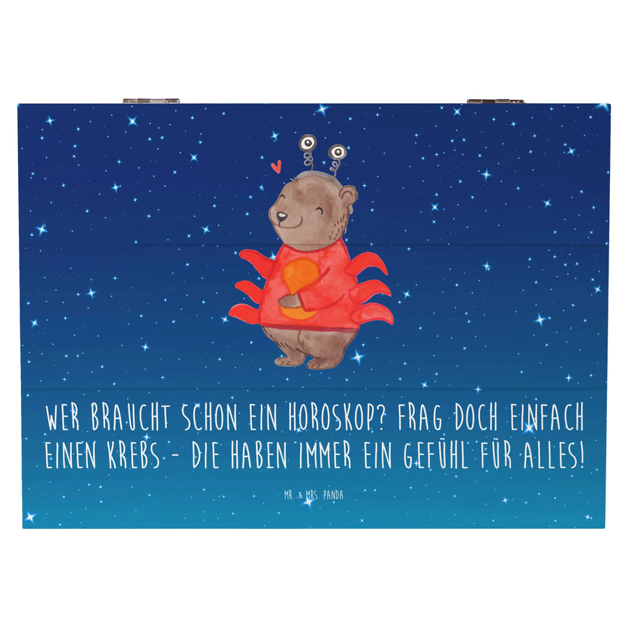 Wooden chest Wer braucht schon ein Horoskop? Frag doch einfach einen Krebs - die haben immer ein Gefühl für alles! - 25 x 18 cm - Starry sky blue