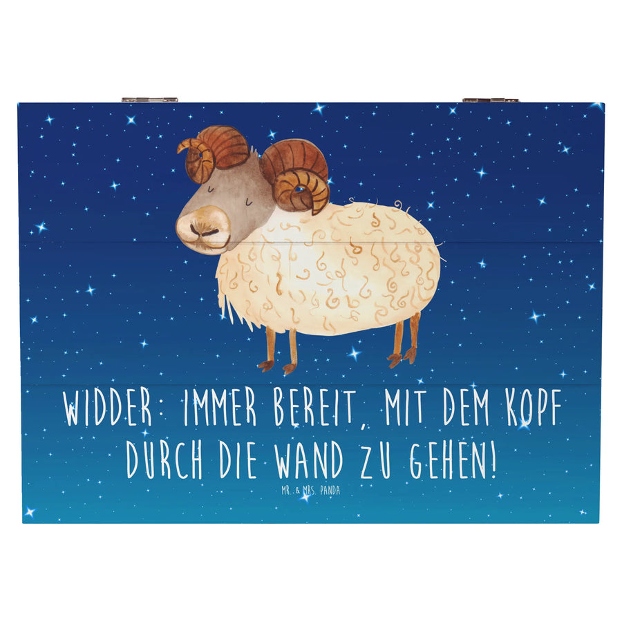 Wooden chest Widder: Immer bereit, mit dem Kopf durch die Wand zu gehen! - 25 x 18 cm - Starry sky blue