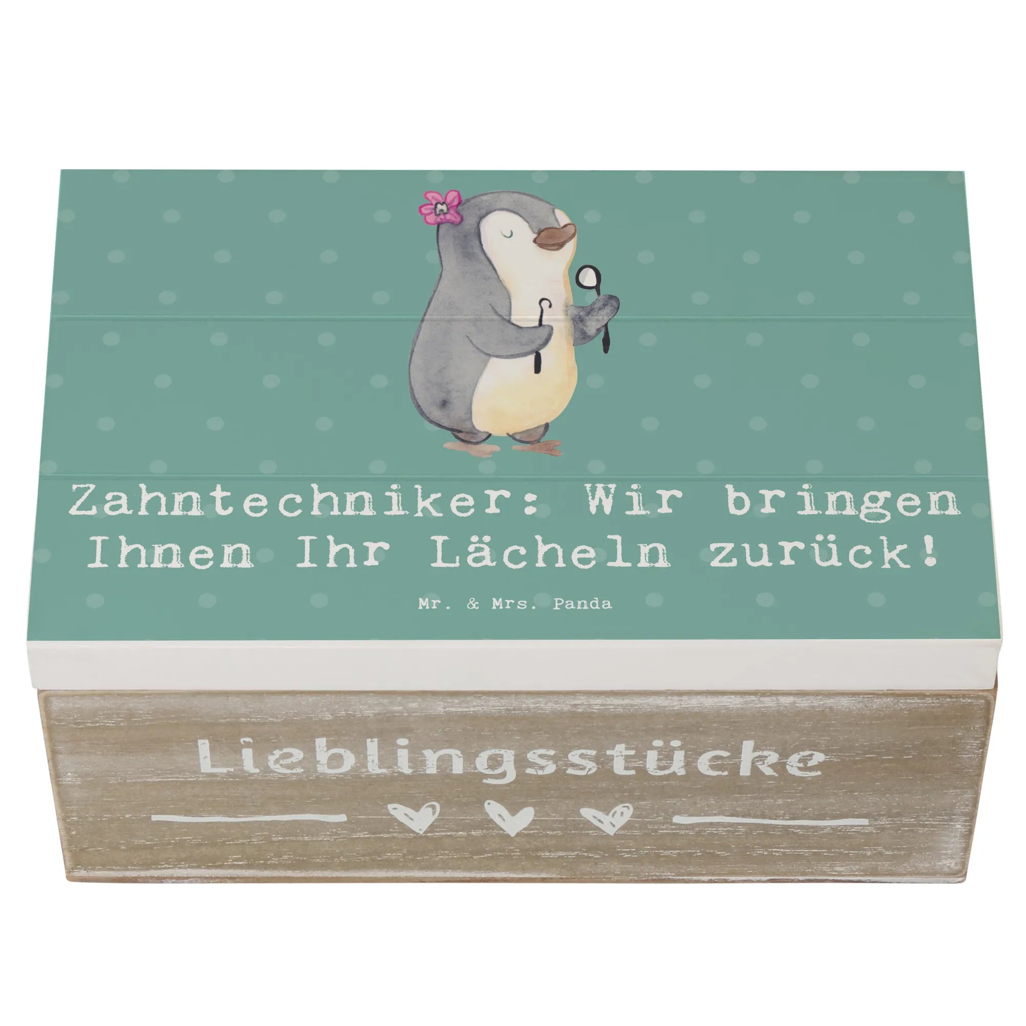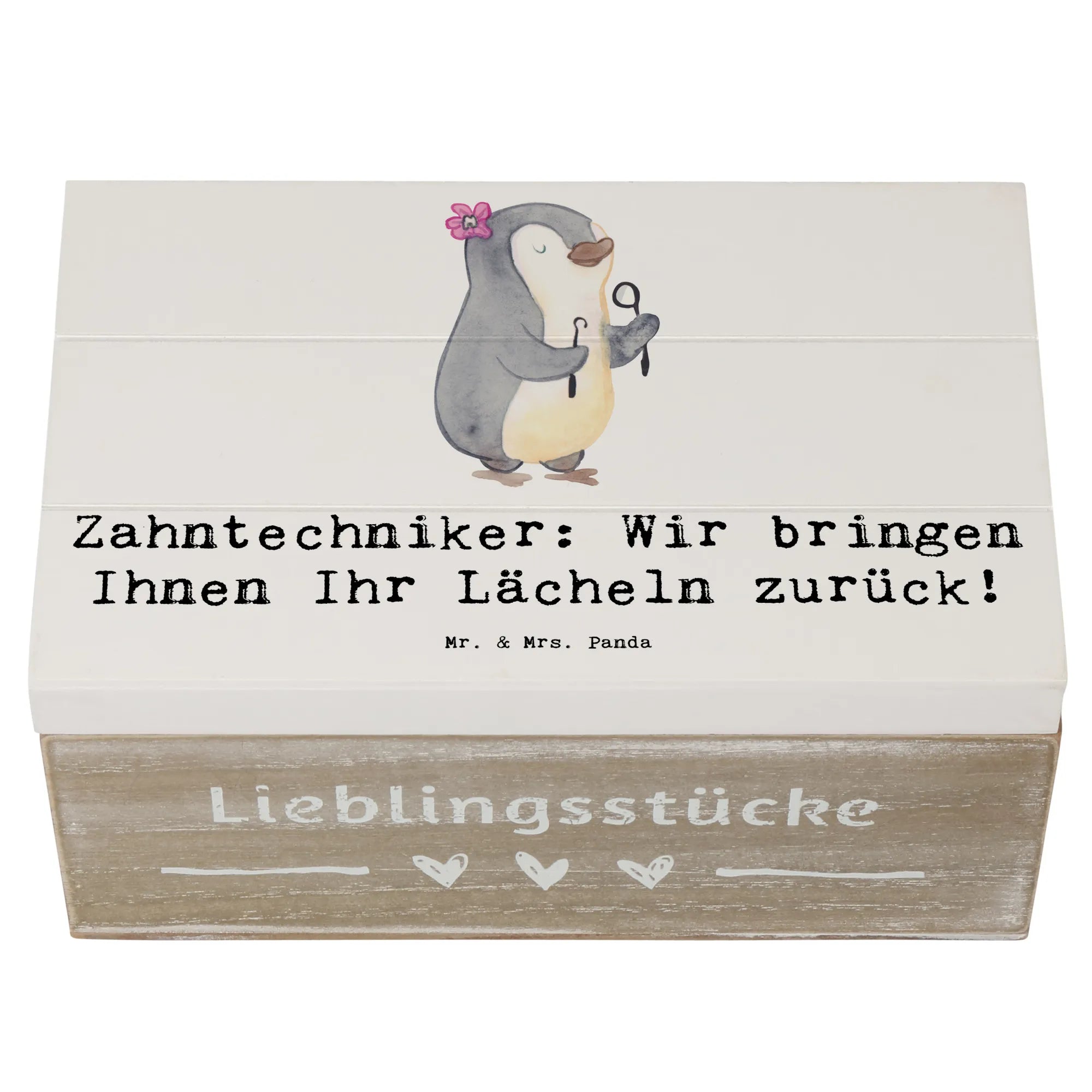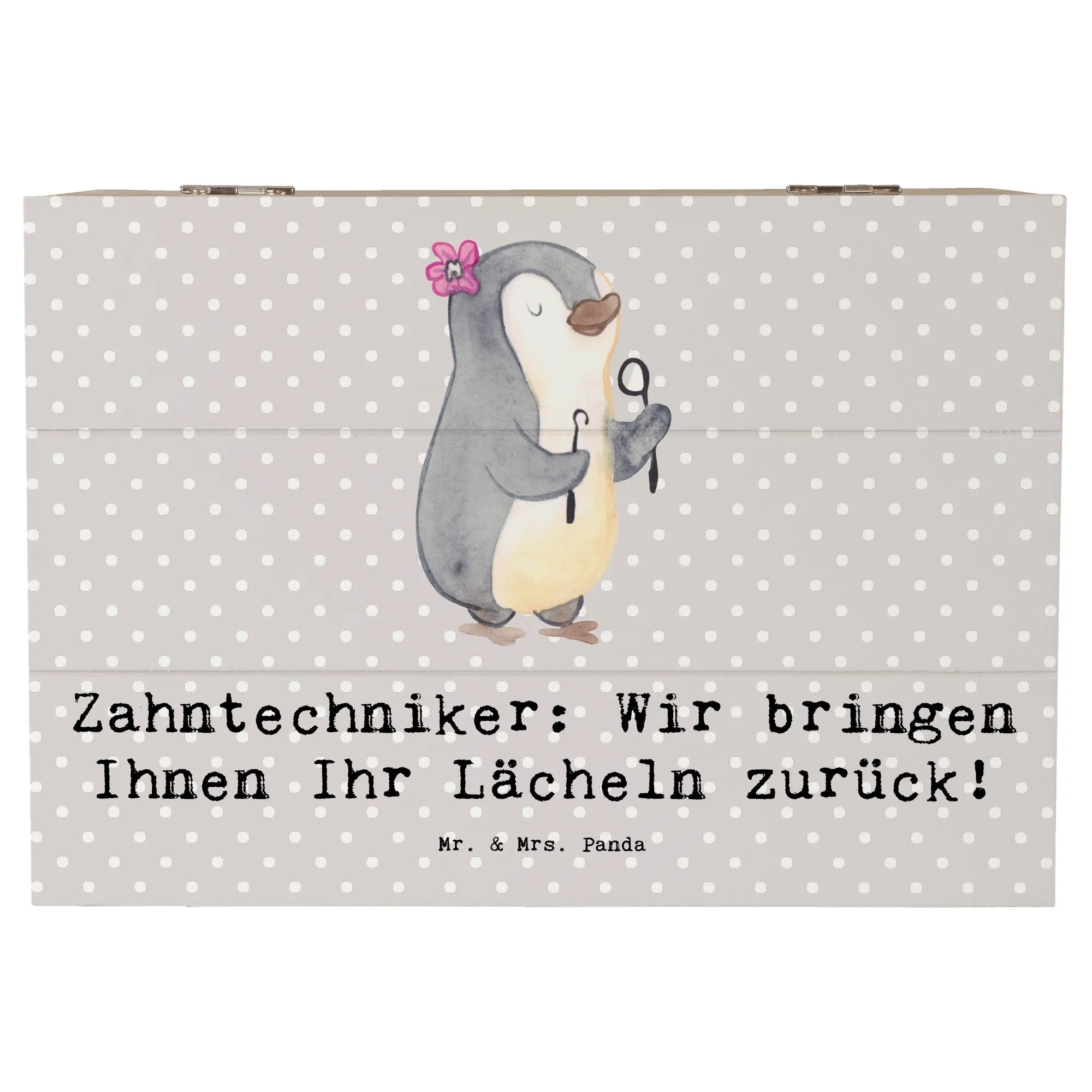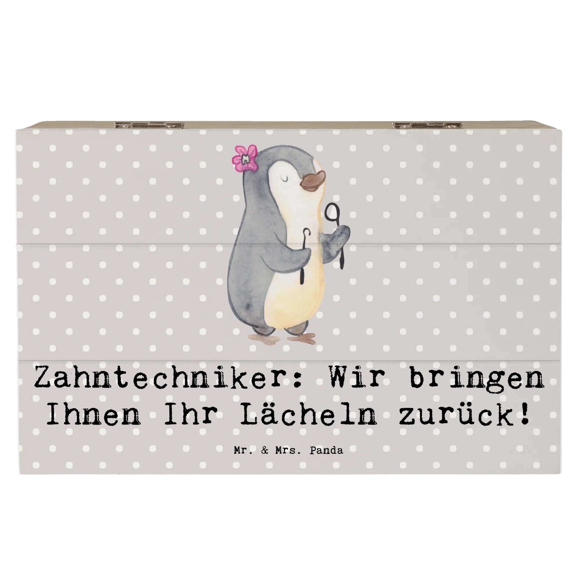 Wooden chest Zahntechniker: Wir bringen Ihnen Ihr Lächeln zurück! - 19 x 12 cm - Pastel Gray