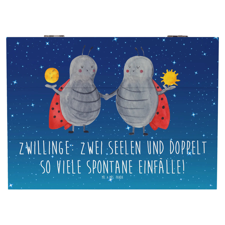 Wooden chest Zwillinge: Zwei Seelen und doppelt so viele spontane Einfälle! - 25 x 18 cm - Starry sky blue