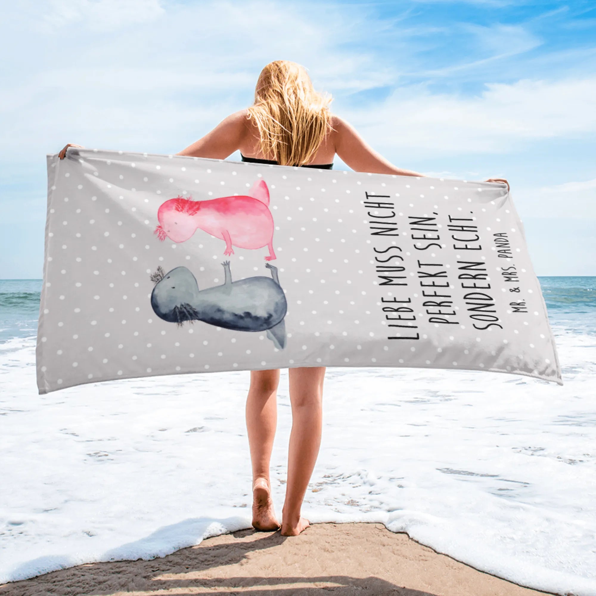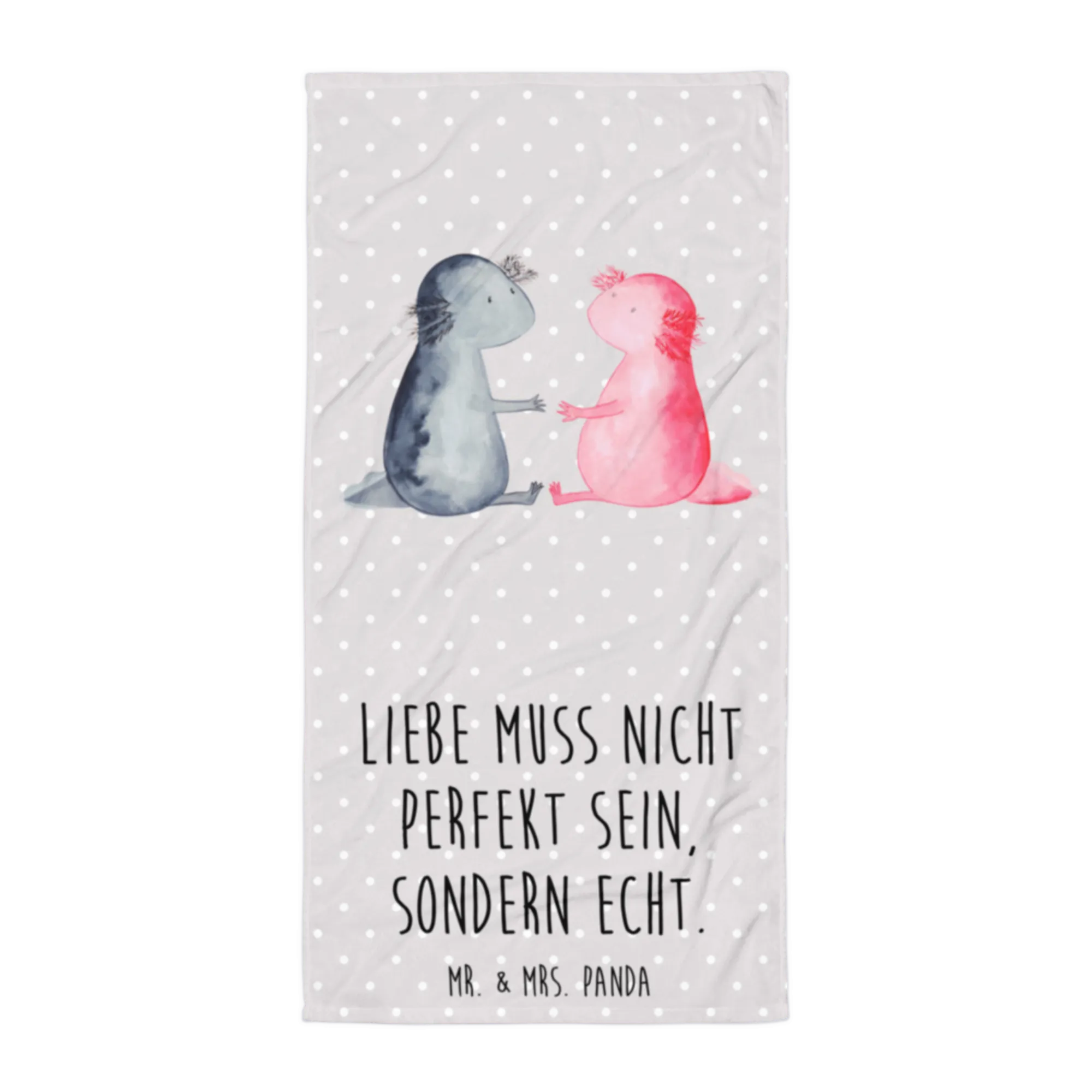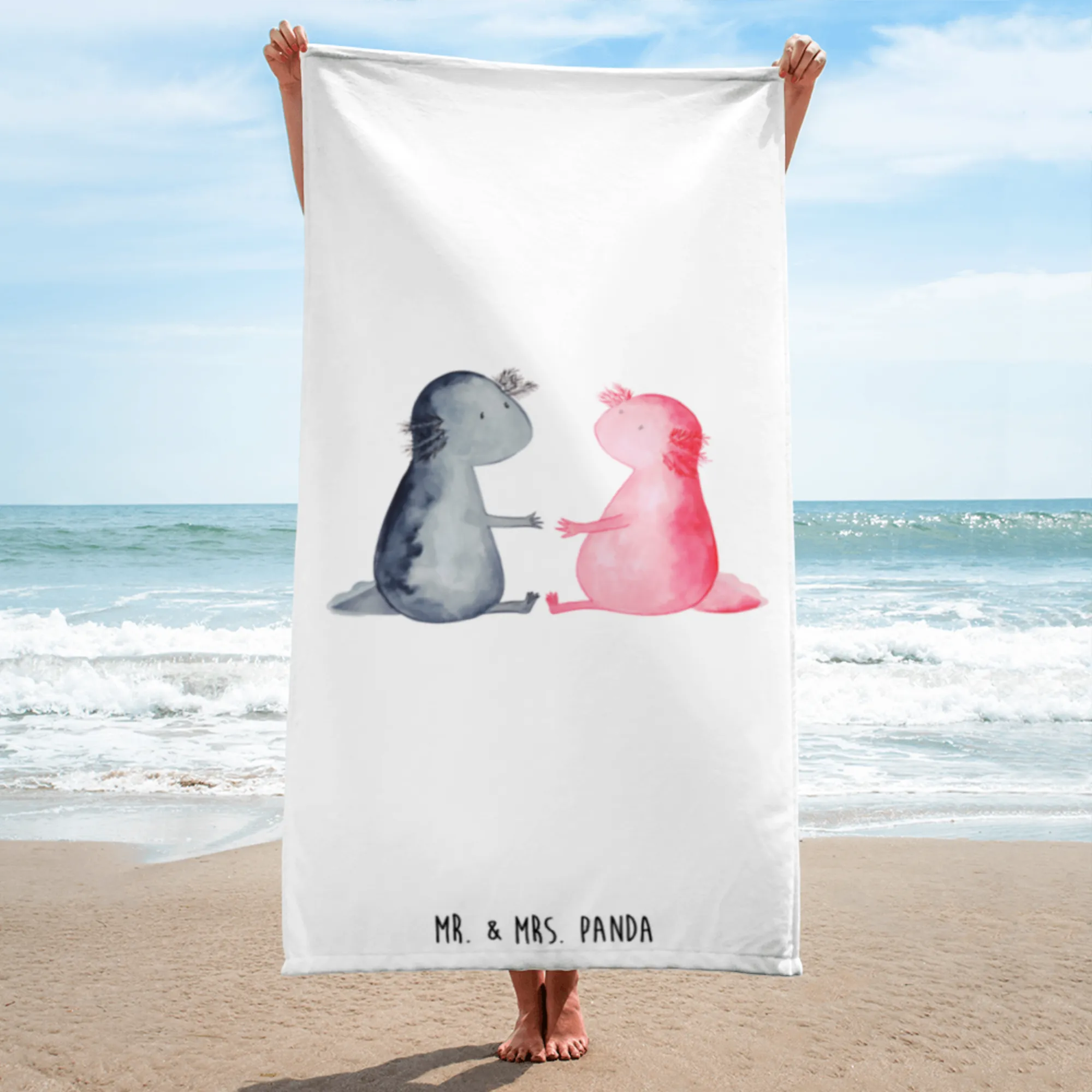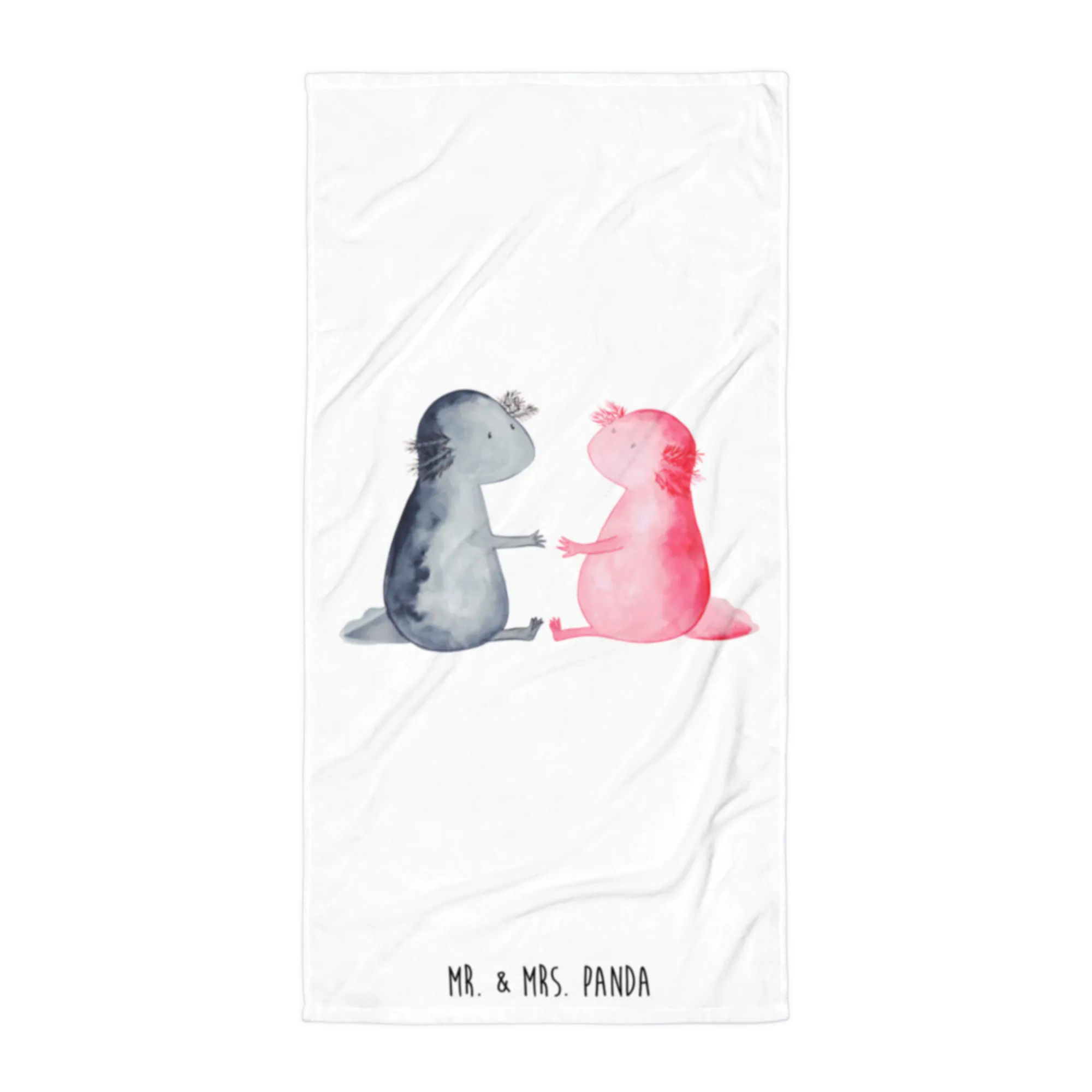 Introducing the perfect gift for lovers of quirky designs and soft, luxurious touches: the XL bath towel featuring our charming "Axolotl in Love" motif from the delightful Mr. & Mrs. Panda collection!
