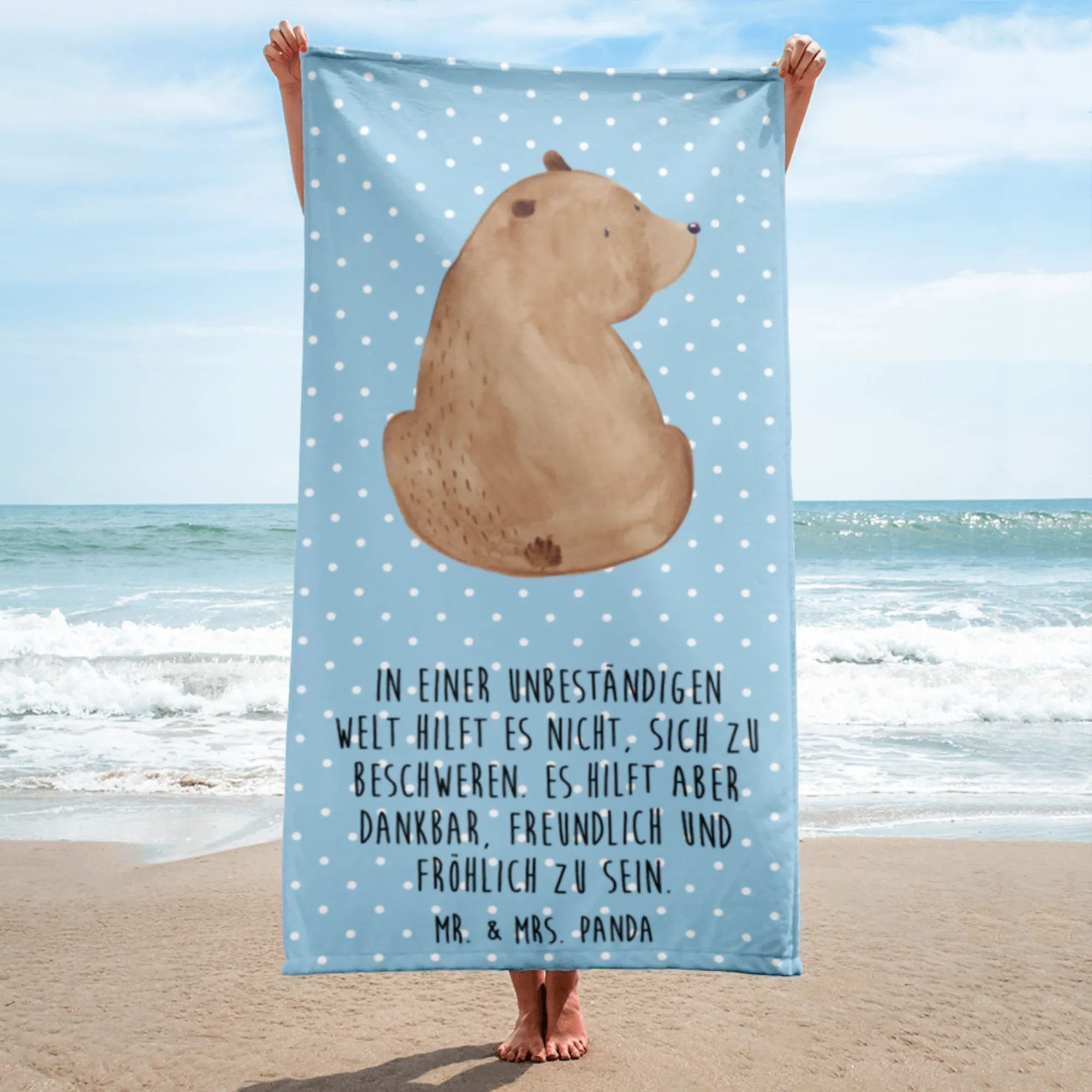 It’s designed to withstand everyday use, making it the ideal companion for all your adventures, whether that’s a family trip to the seaside or a relaxing day at the sauna. Perfect as a gift for your loved ones, this XL bath towel is a sweet token for bear lovers and anyone who appreciates a little daily motivation.
